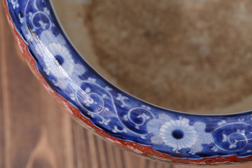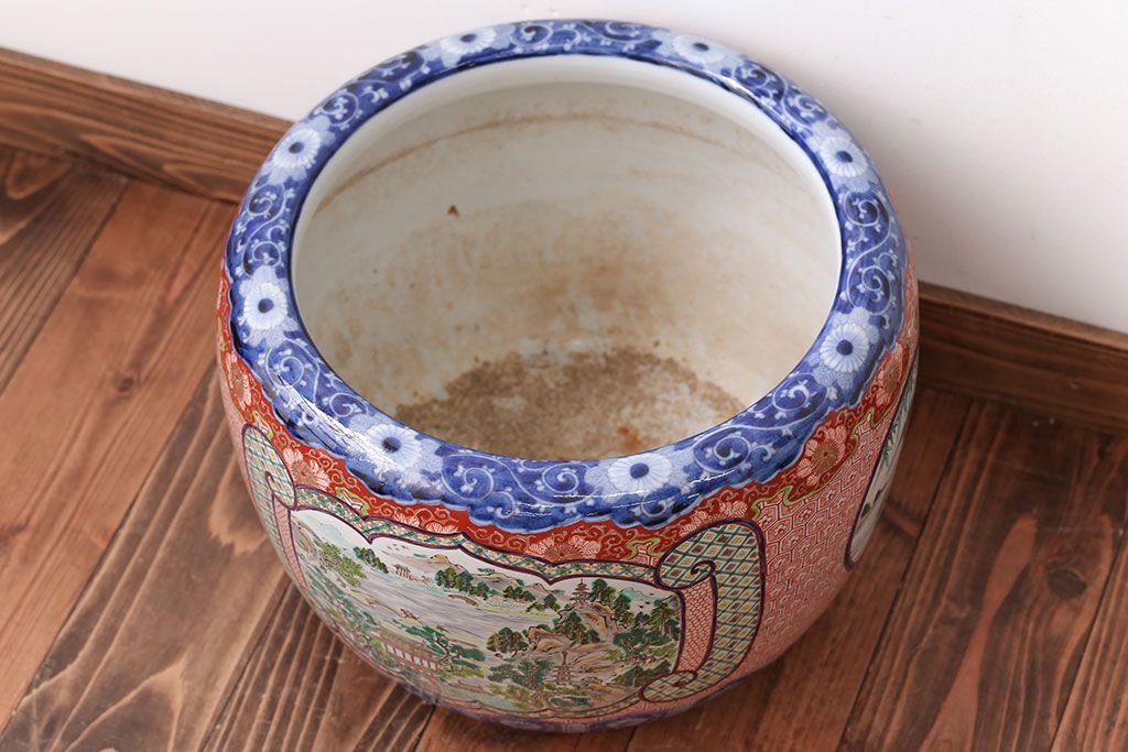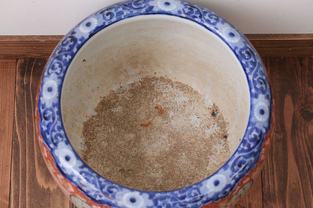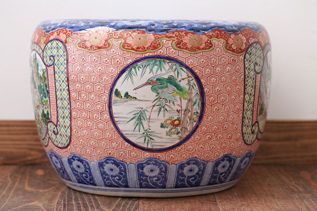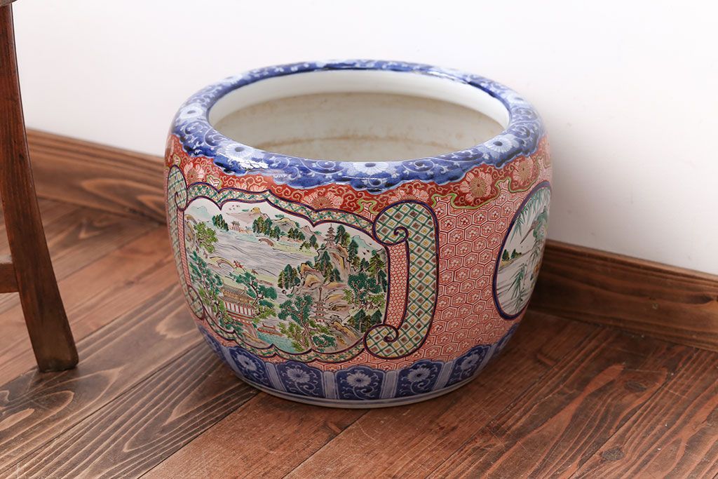 明治〜大正時代に作られた、アンティークの色絵火鉢です。