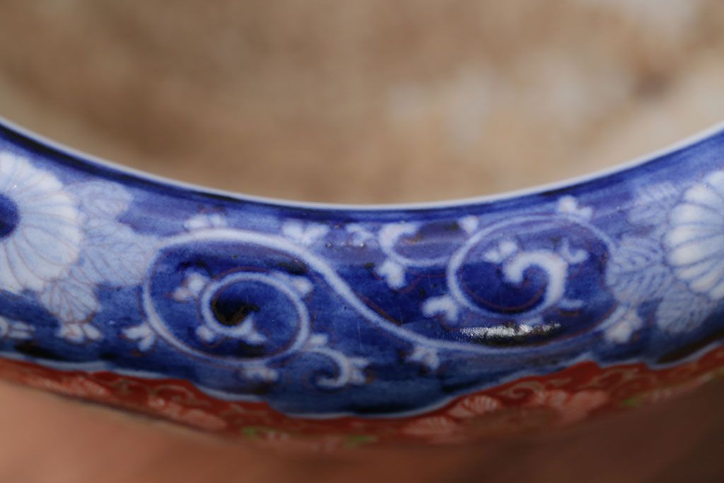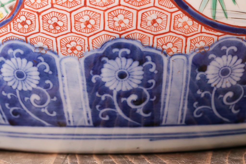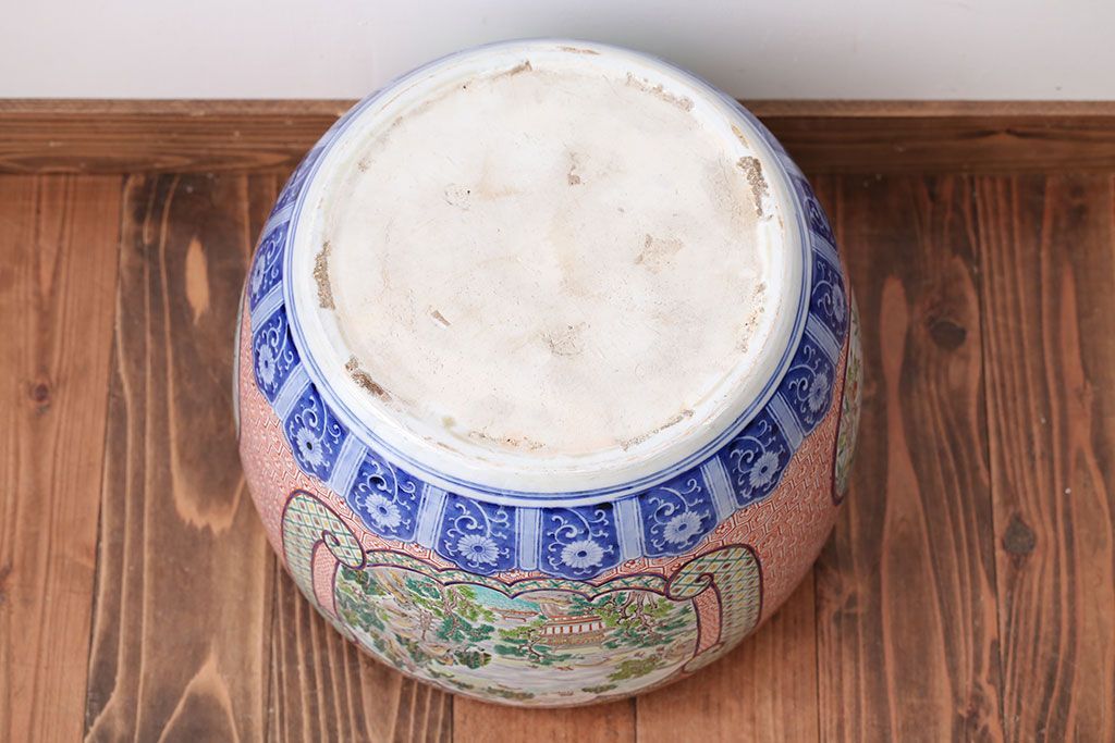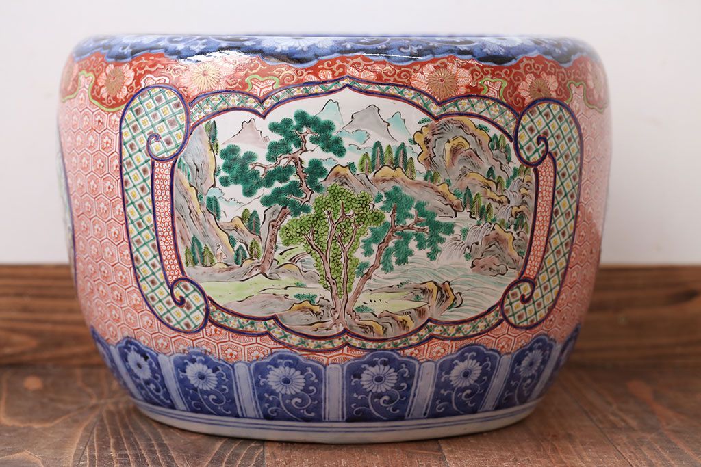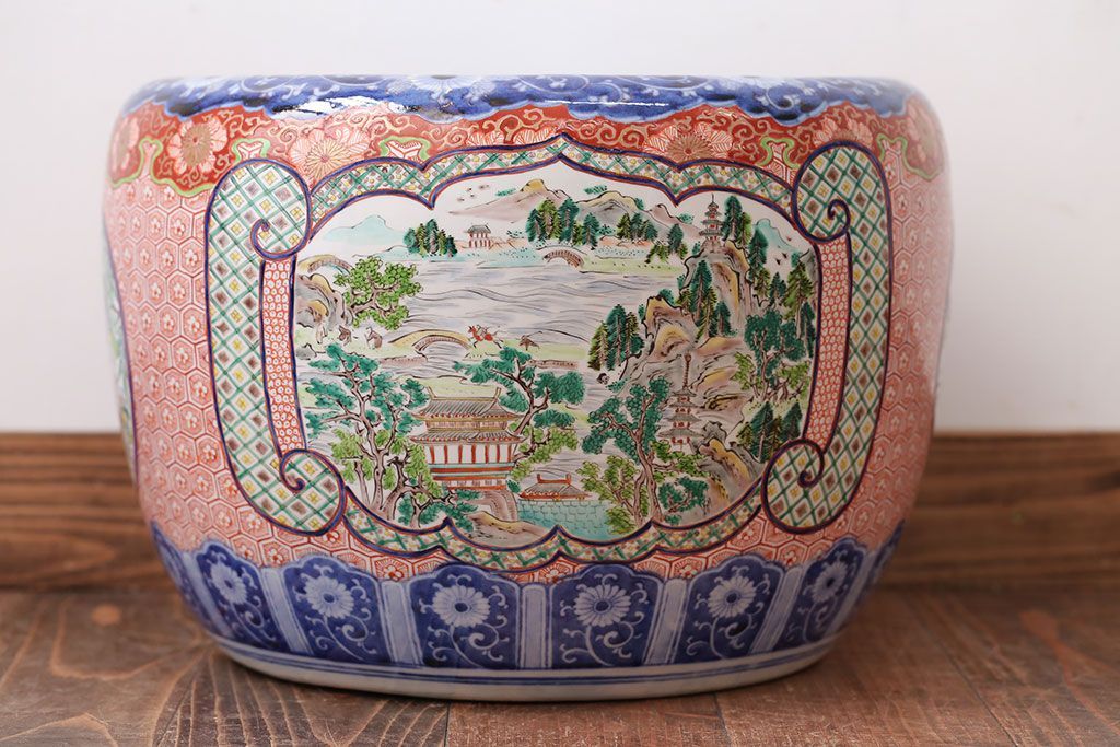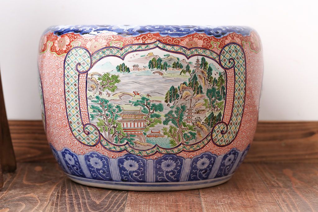 明治〜大正時代に作られた、アンティークの色絵火鉢です。