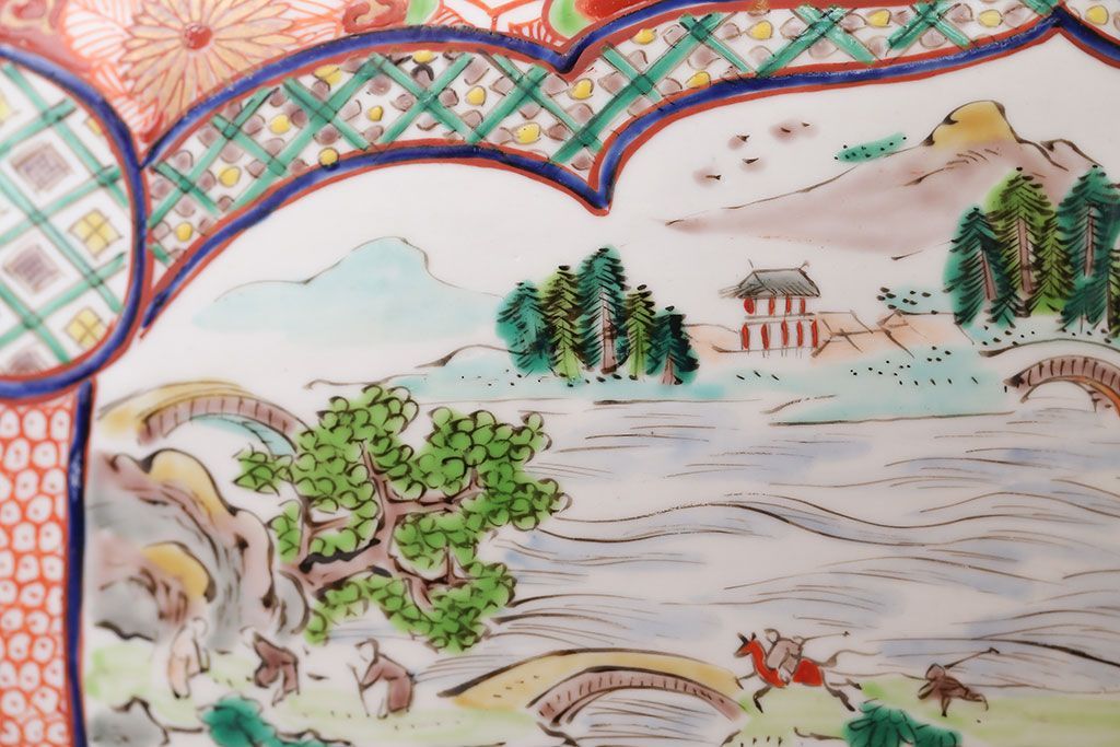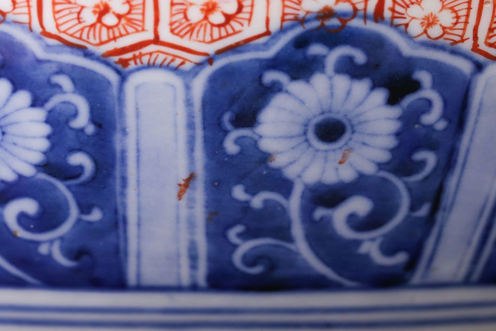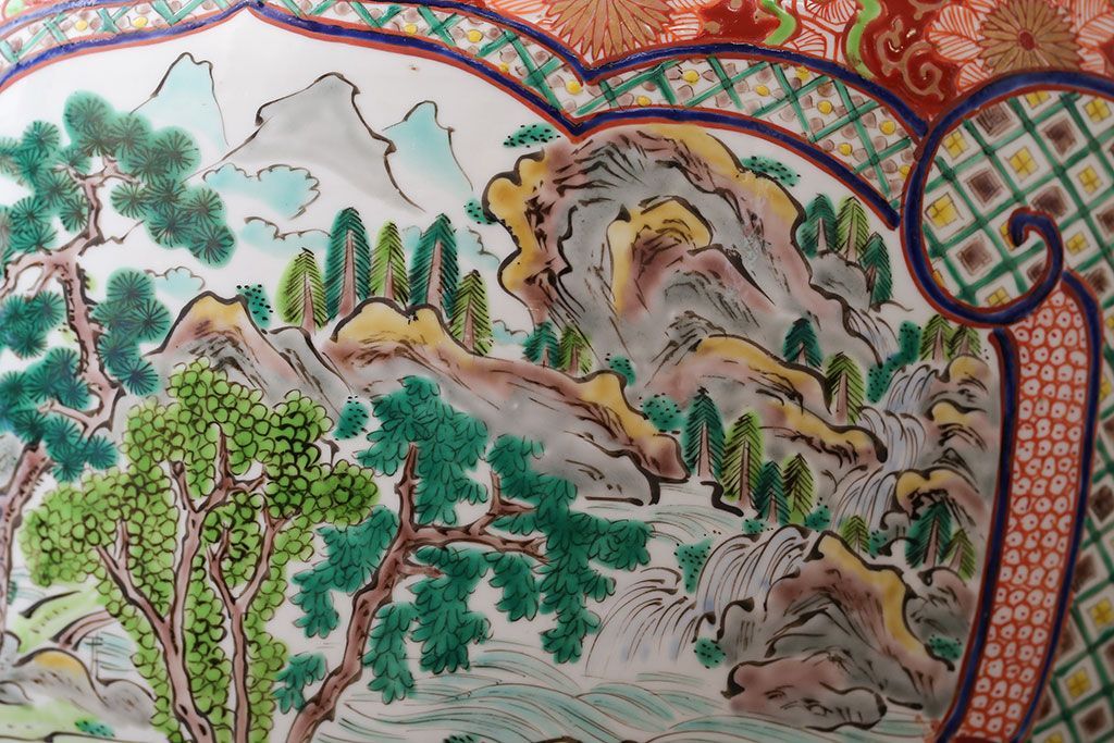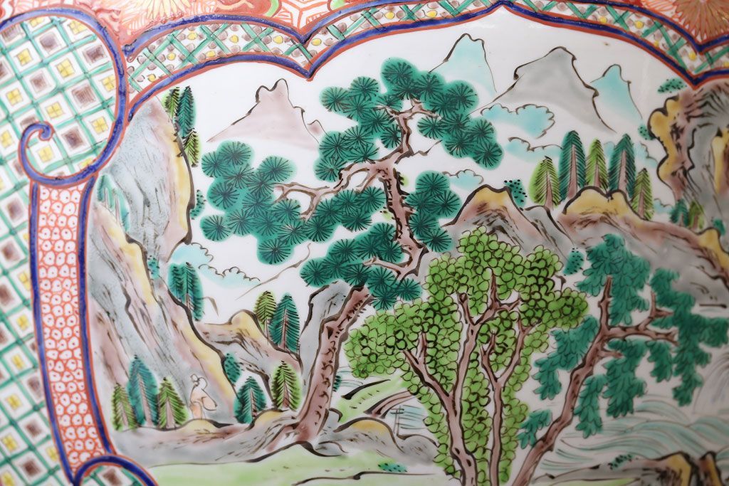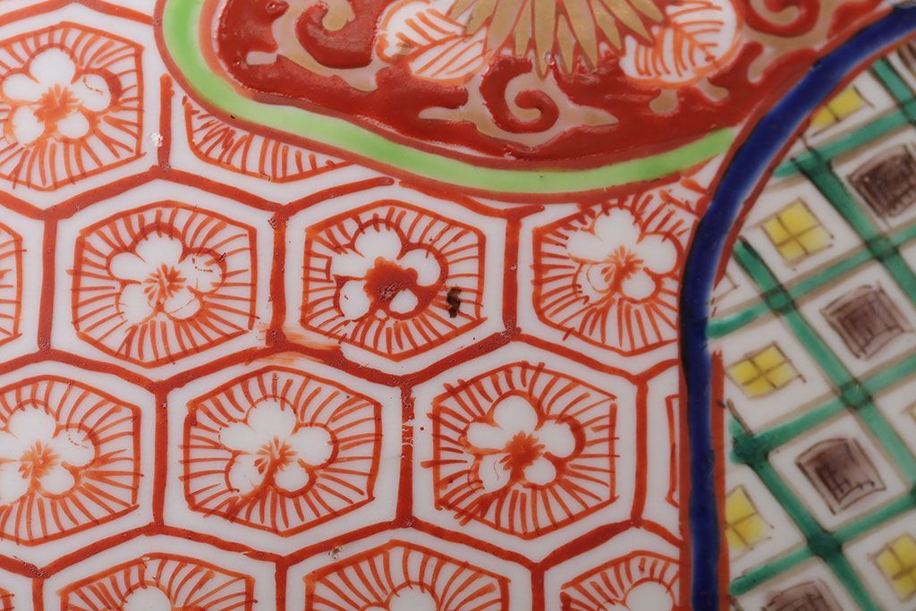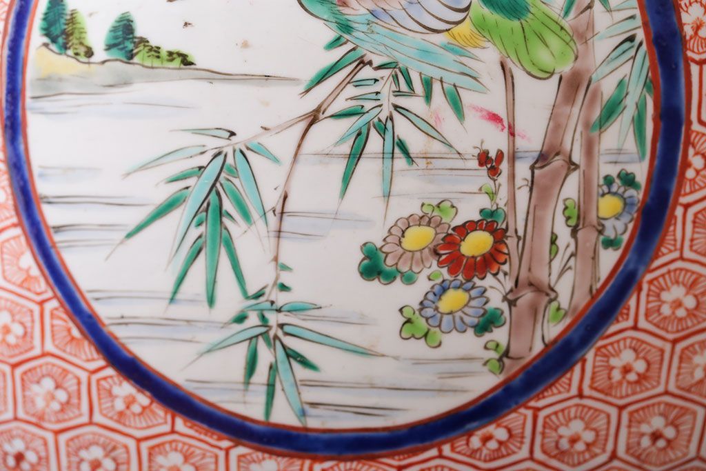 アンティーク雑貨 古民具・骨董 明治〜大正時代 古い色絵火鉢 (窓絵・十錦手)
