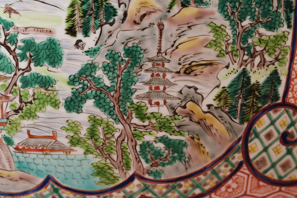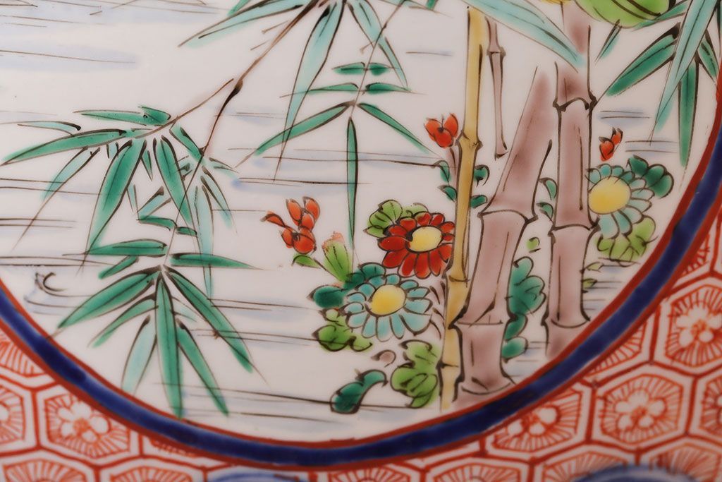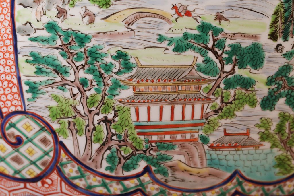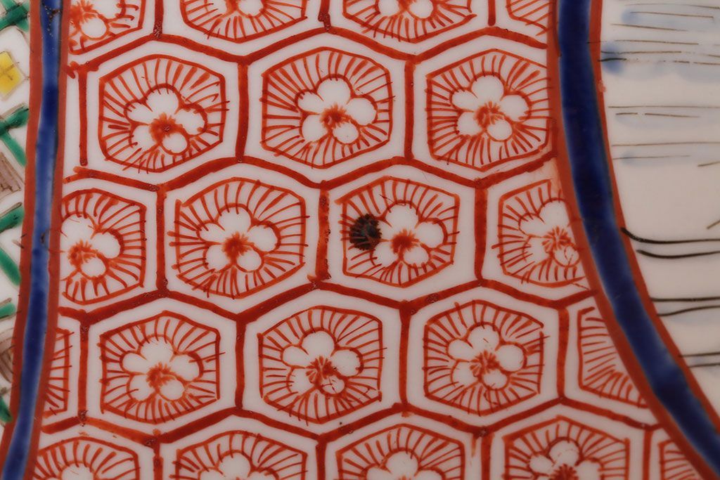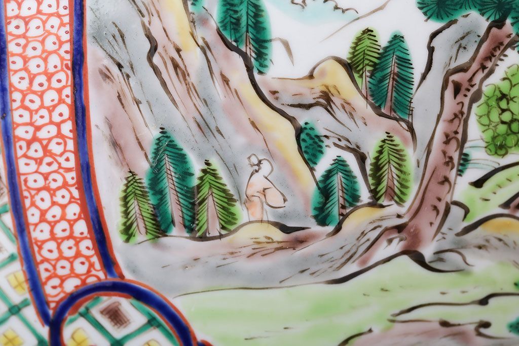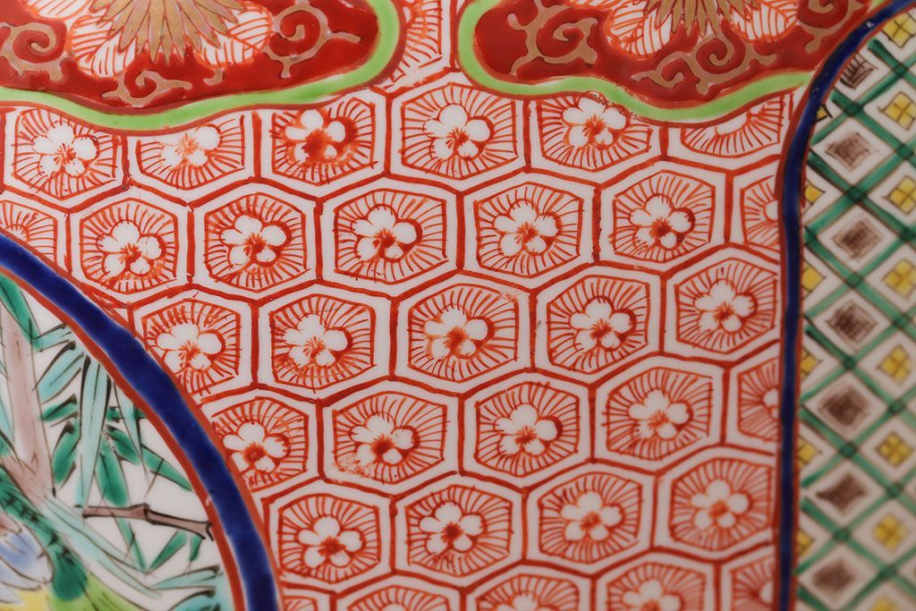 アンティーク雑貨 古民具・骨董 明治〜大正時代 古い色絵火鉢 (窓絵・十錦手)