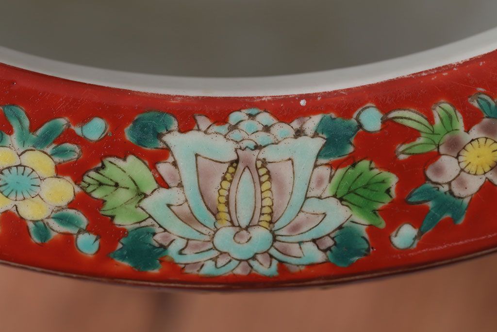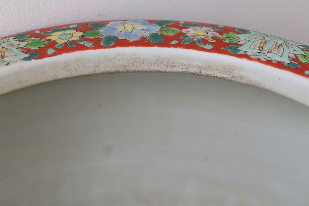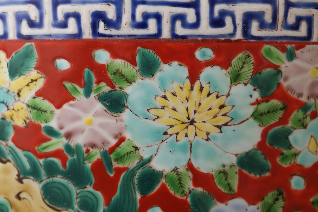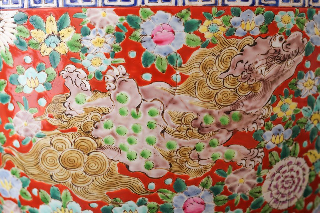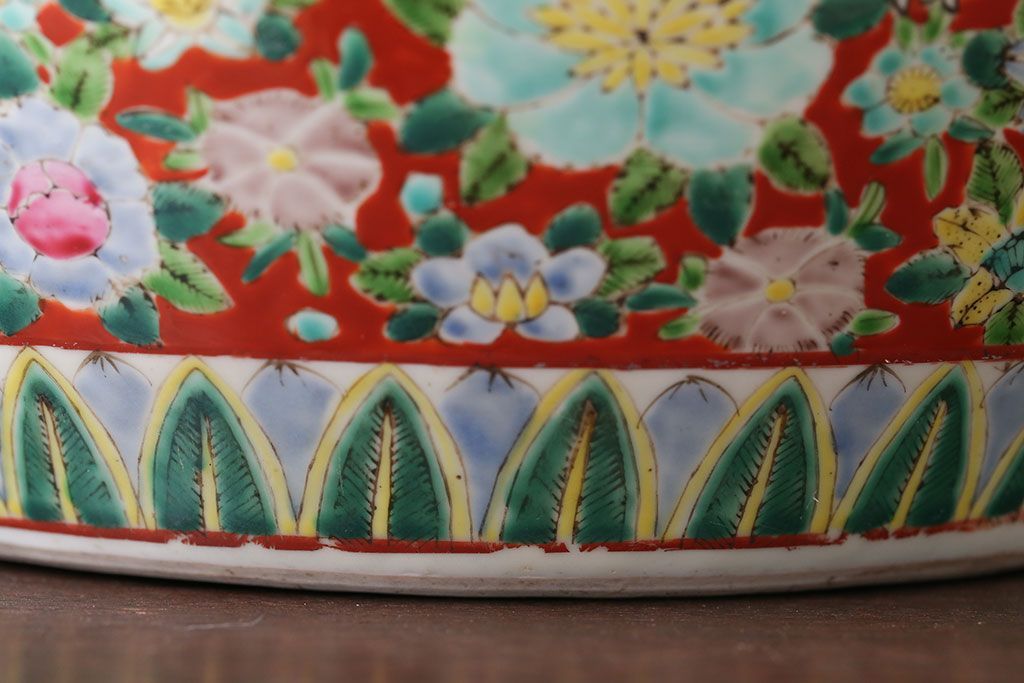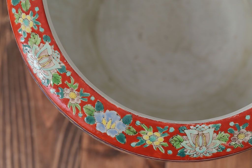 アンティーク雑貨 古民具・骨董 獅子の図 色絵火鉢 (十錦手)
