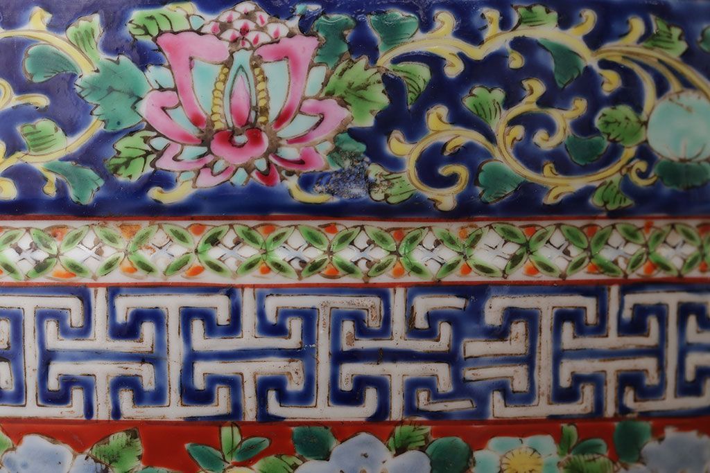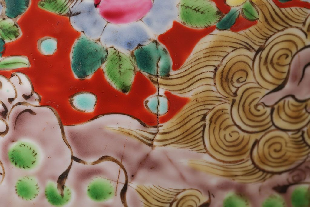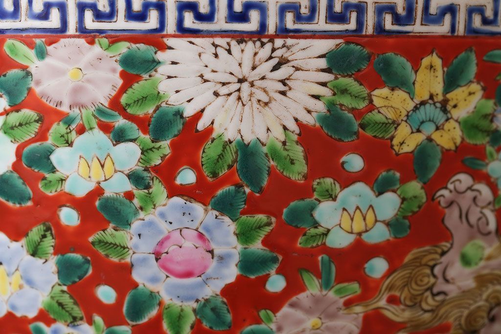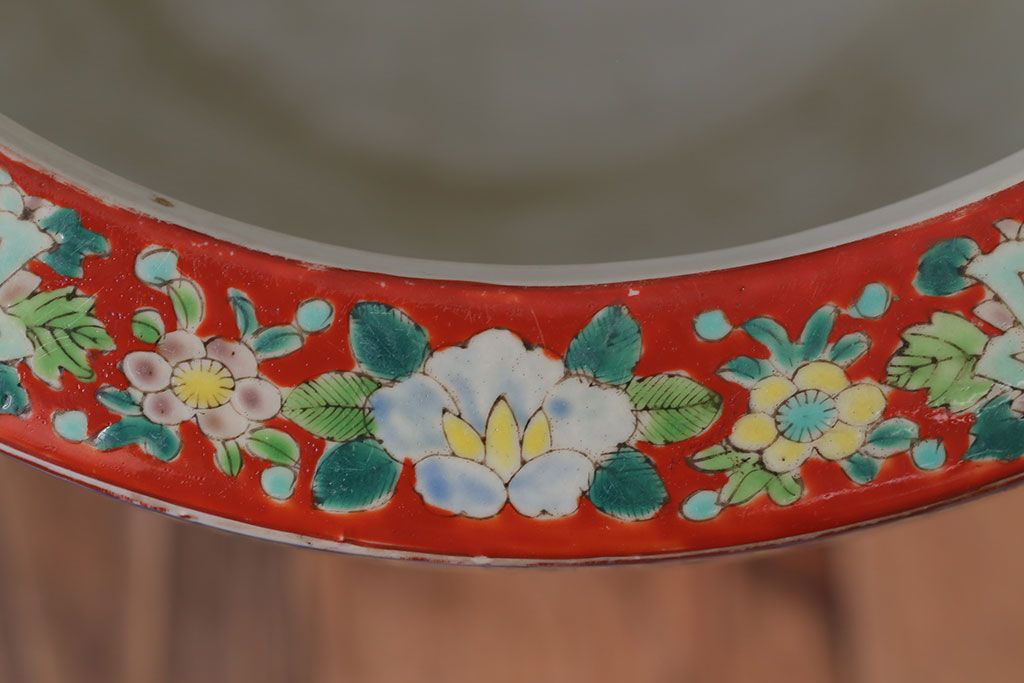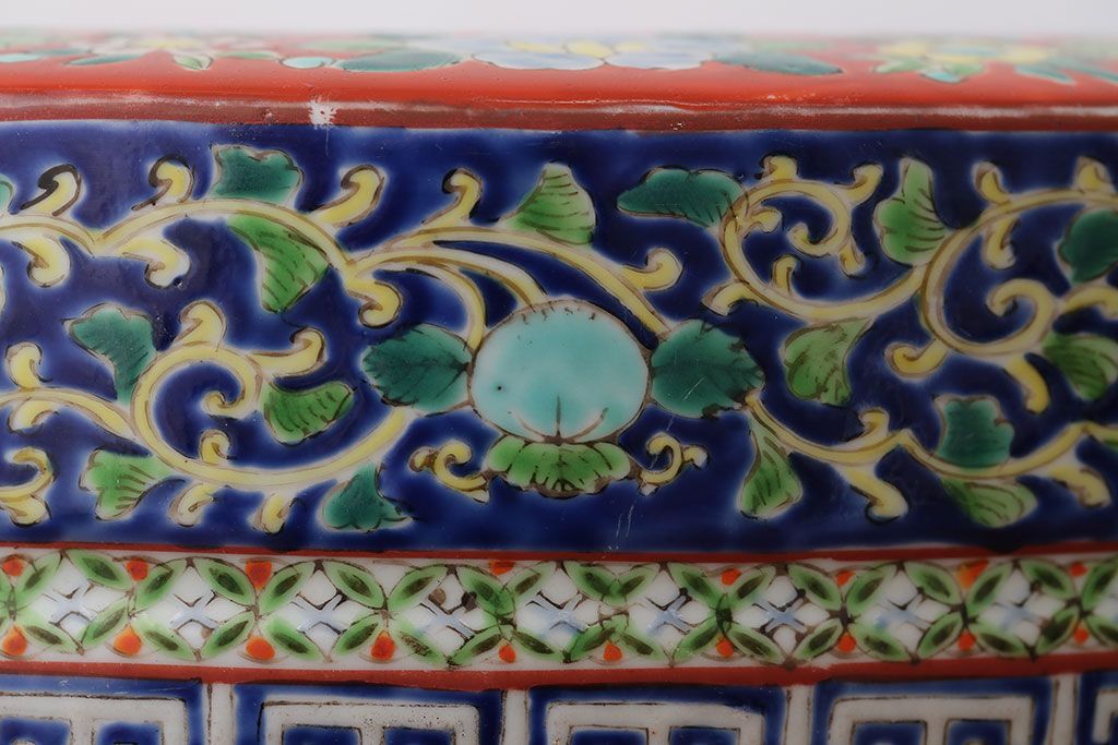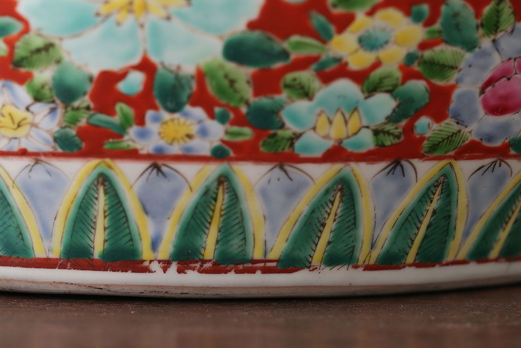 アンティーク雑貨 古民具・骨董 獅子の図 色絵火鉢 (十錦手)
