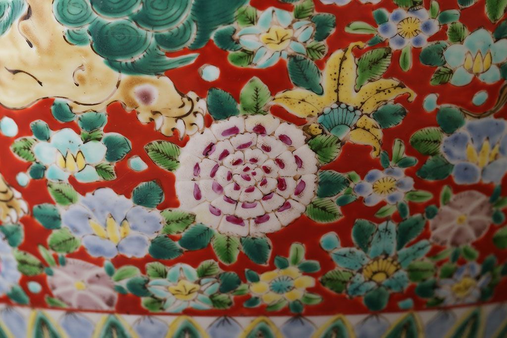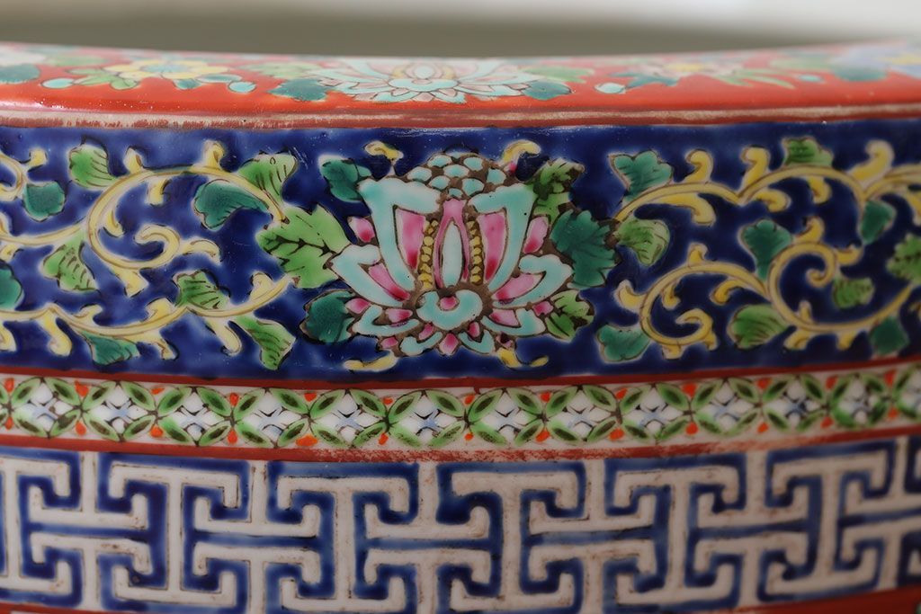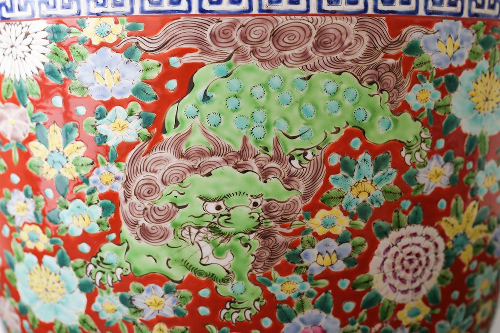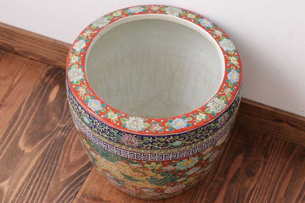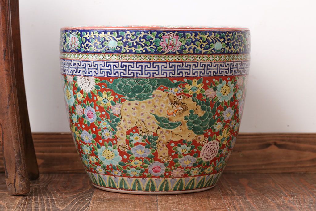 古民具・骨董 獅子の図 色絵火鉢 (十錦手)です。
