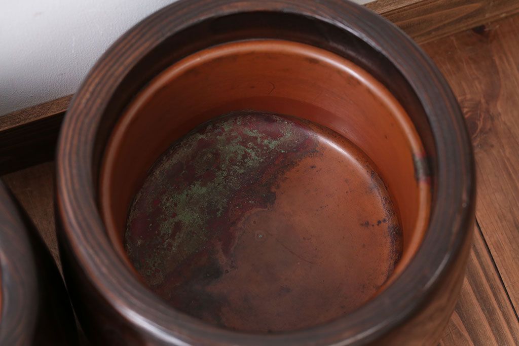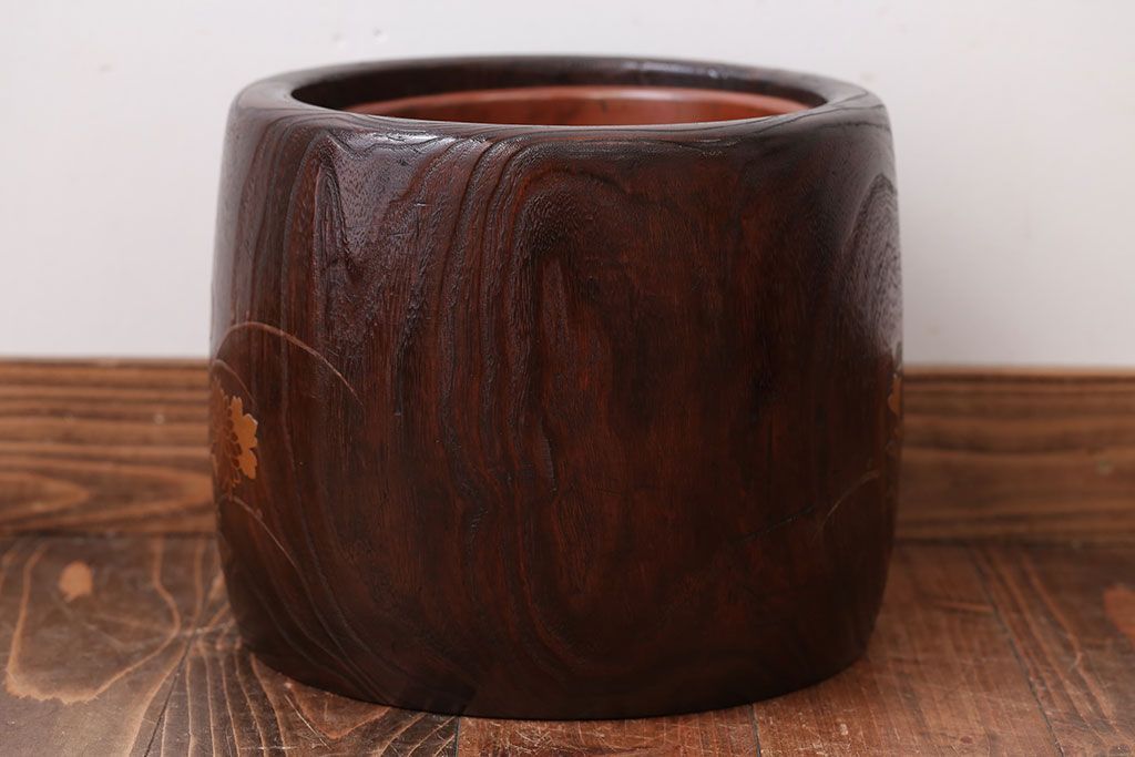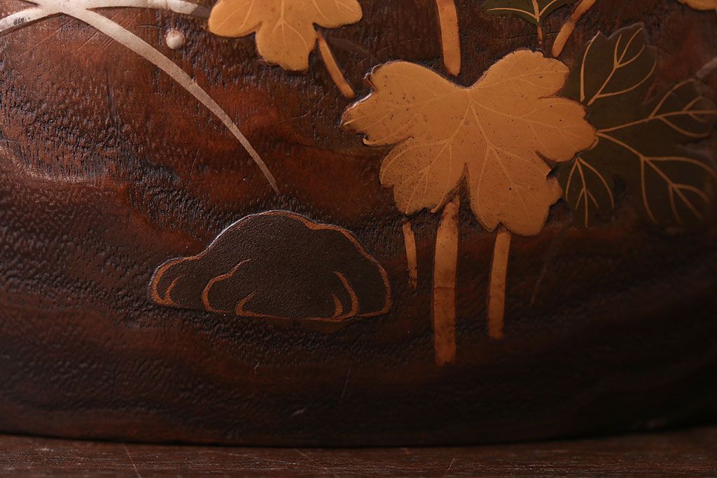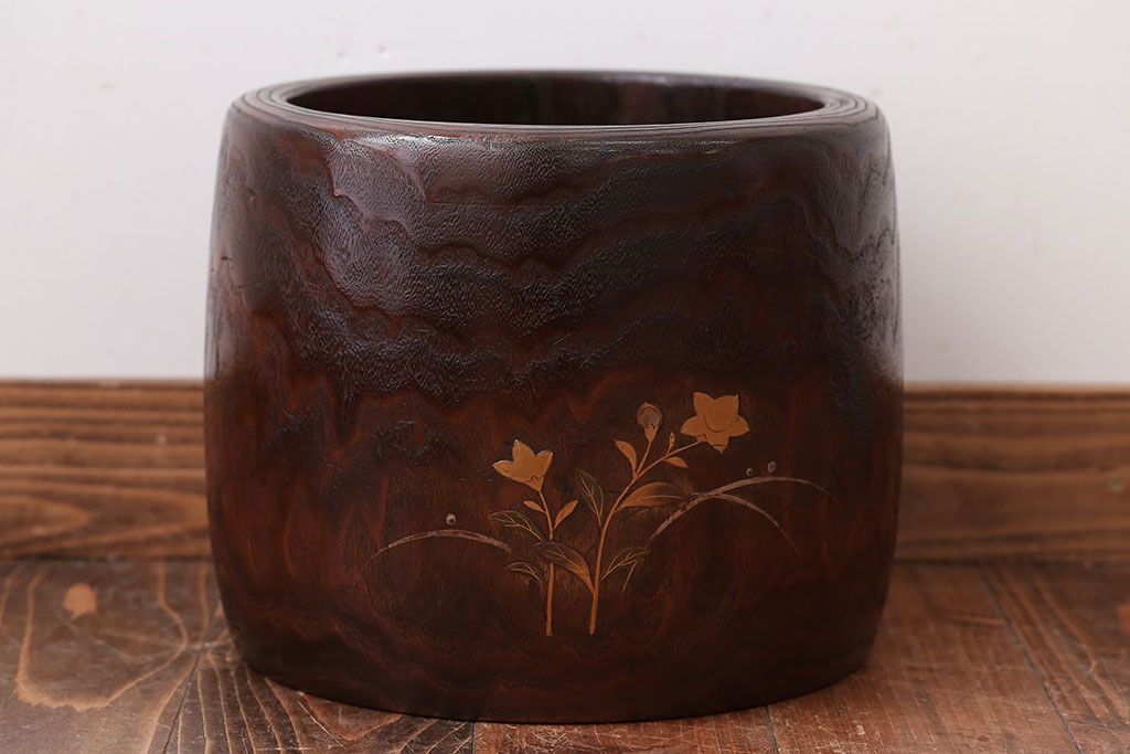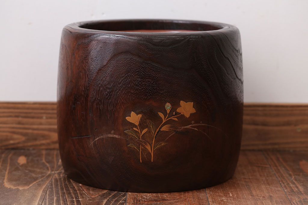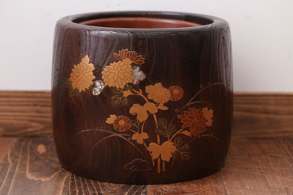アンティーク雑貨 古民具・骨董 古い螺鈿金蒔絵桐火鉢一対