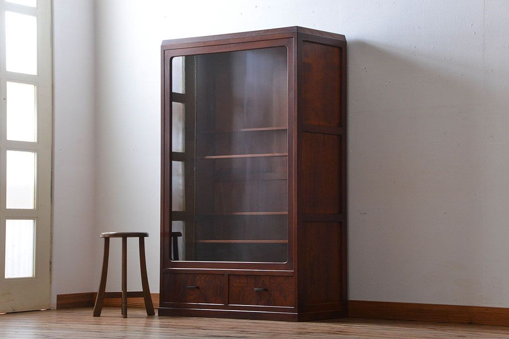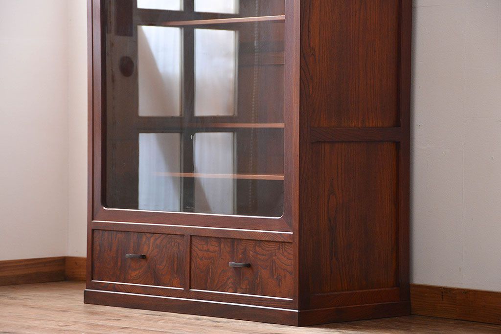 高級素材である欅材で造られたガラスケースです。