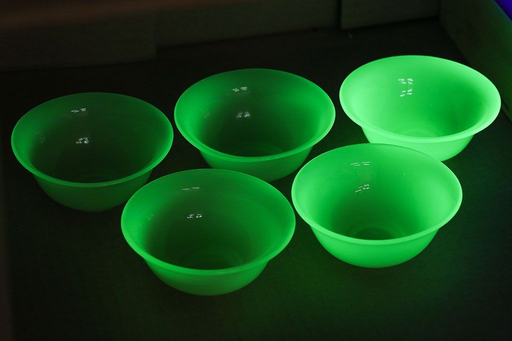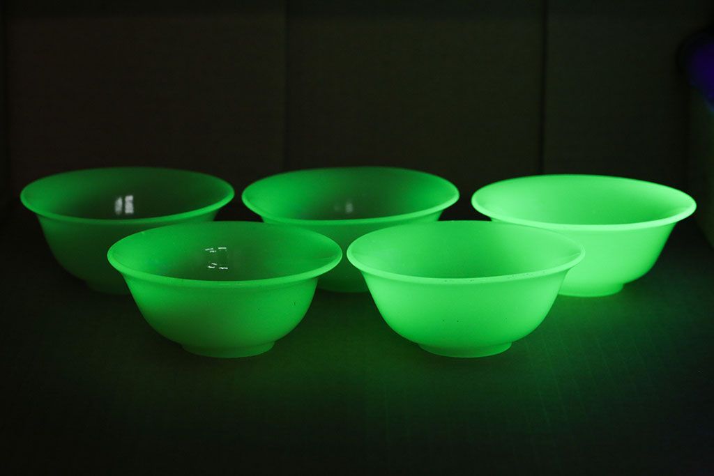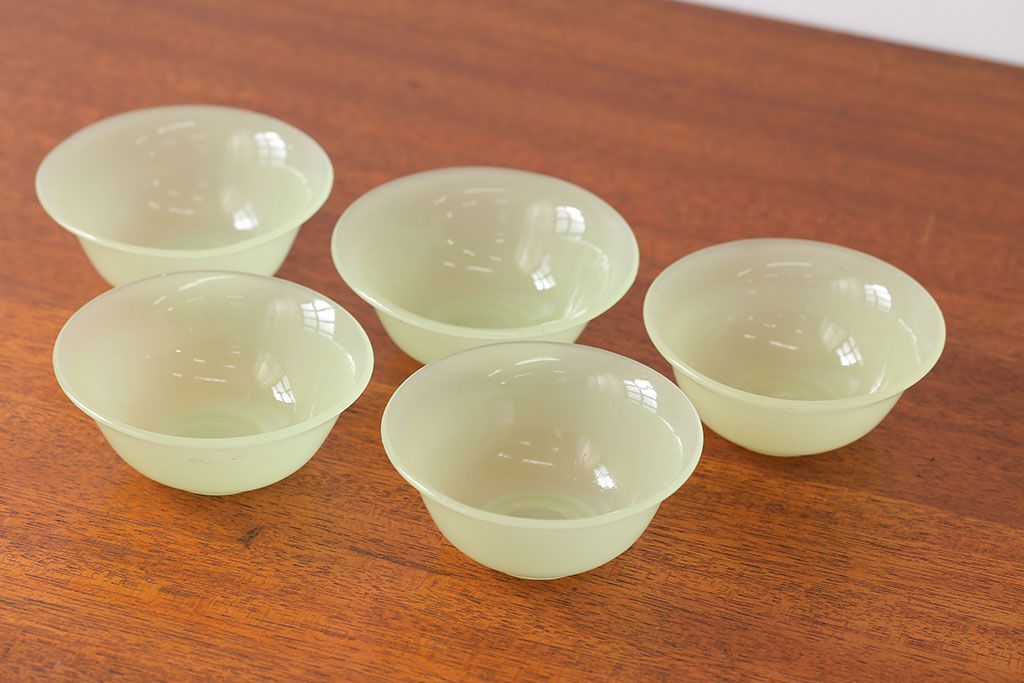アンティーク雑貨 アンティーク 大正〜昭和初期・ウランガラス小鉢5個セット(氷コップ)(1)