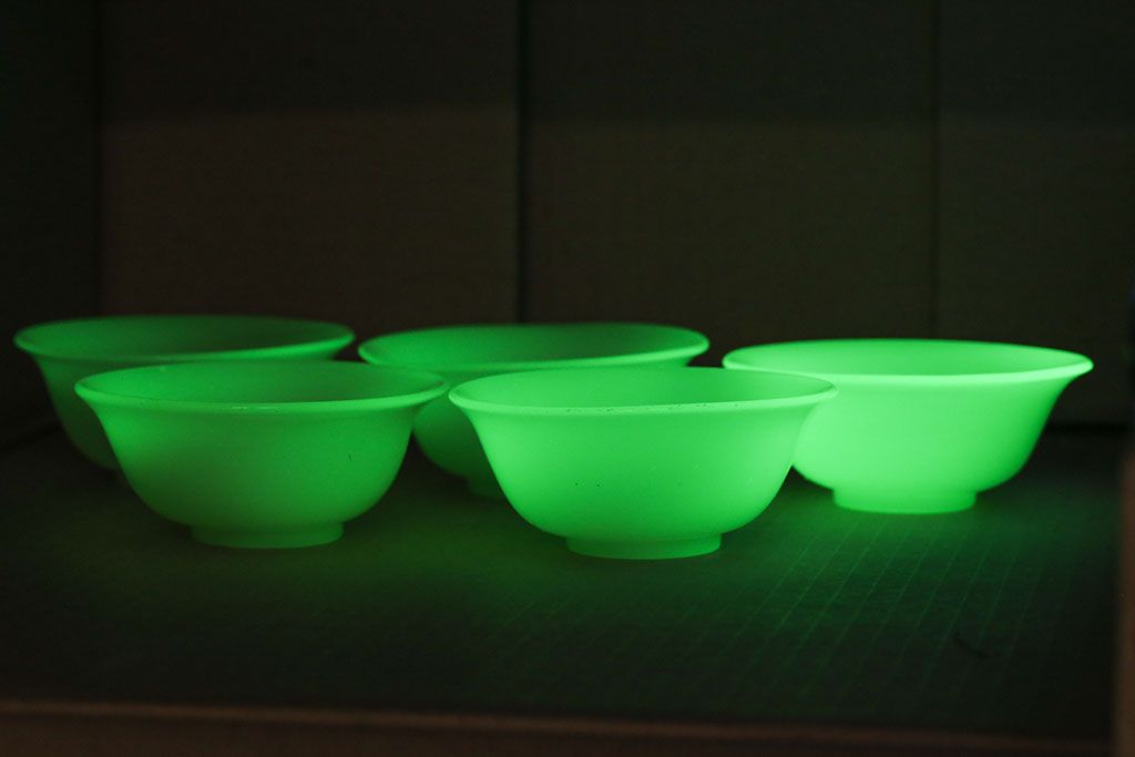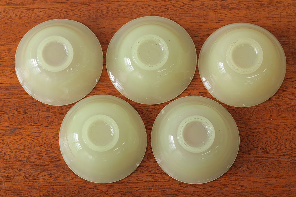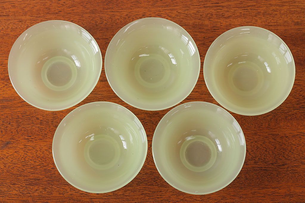 ラフジュ工房> 和食器・茶道具 > アンティーク雑貨 アンティーク 大正〜昭和初期・ウランガラス小鉢5個セット(氷コップ)(1)