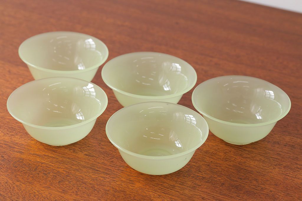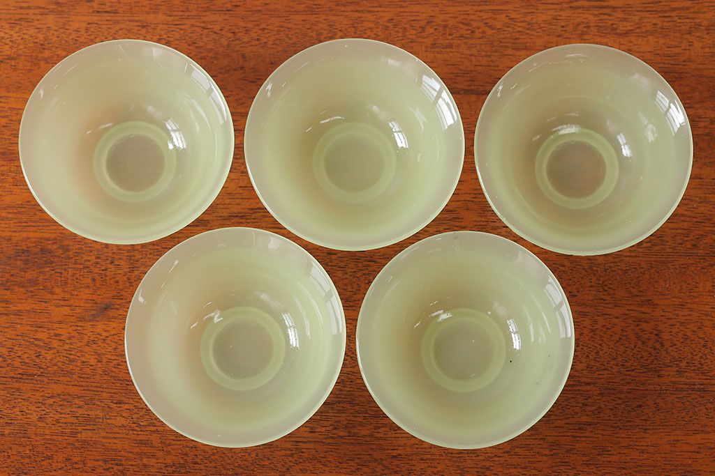アンティーク雑貨 アンティーク 大正〜昭和初期・ウランガラス小鉢5個セット(氷コップ)(2)