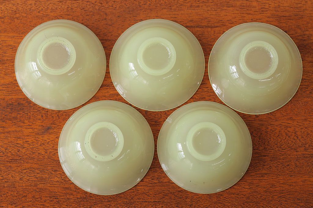 ラフジュ工房> 和食器・茶道具 > アンティーク雑貨 アンティーク 大正〜昭和初期・ウランガラス小鉢5個セット(氷コップ)(2)