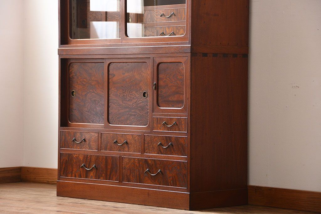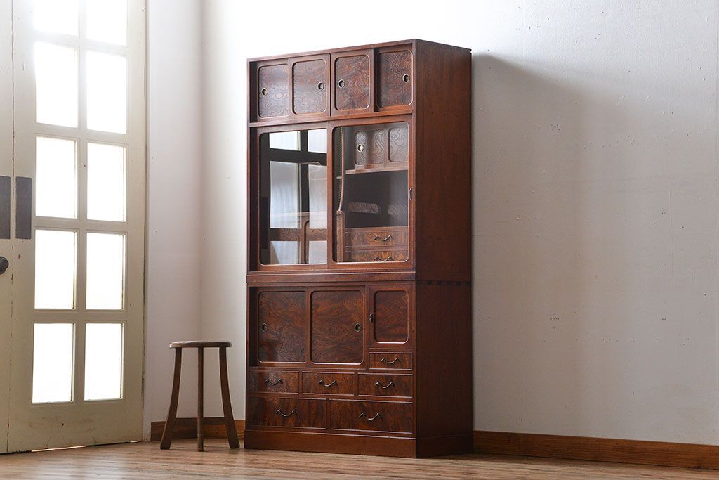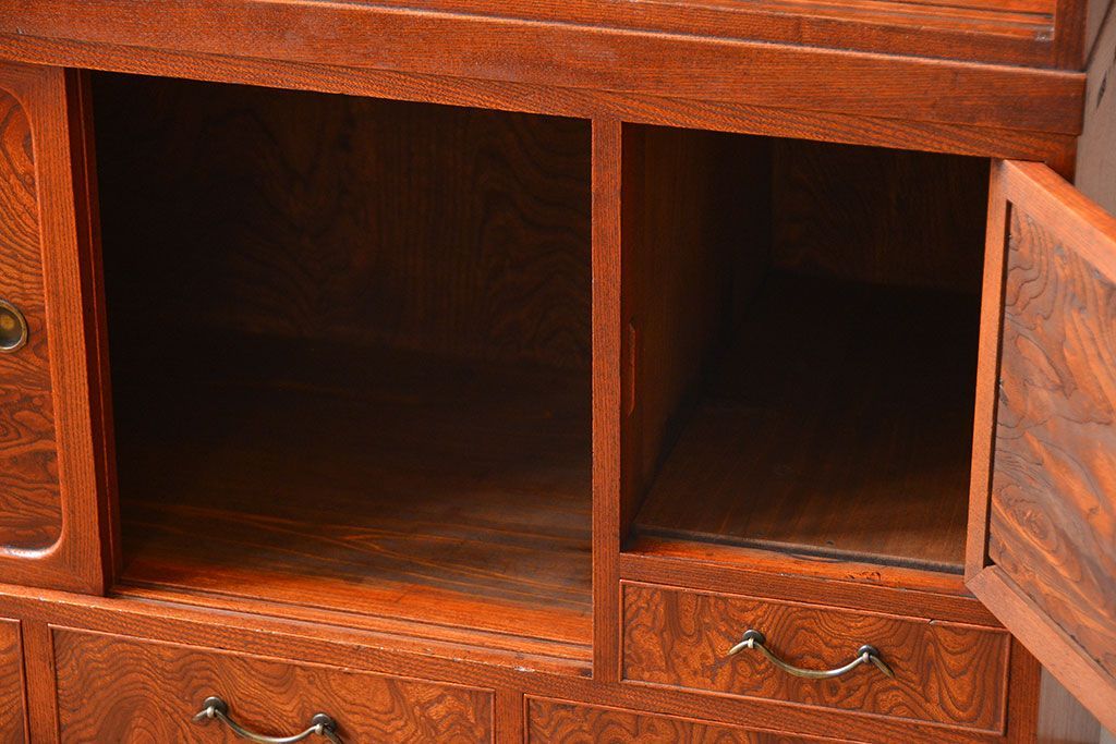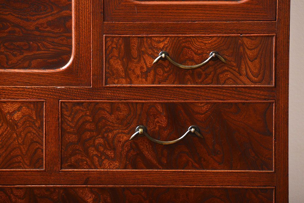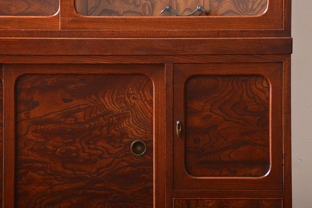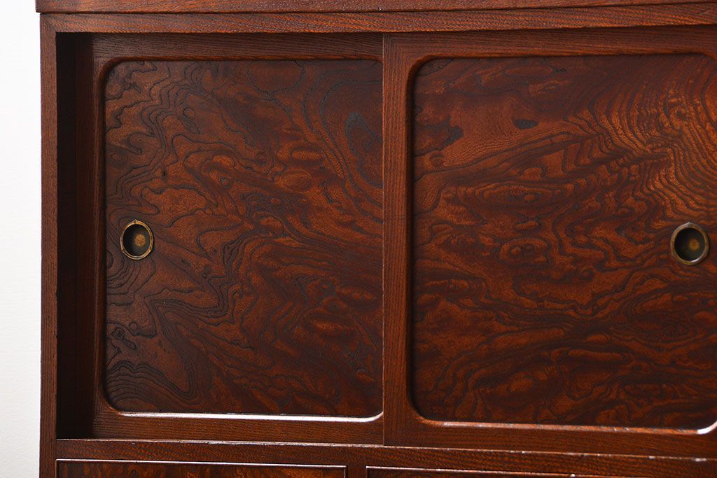 アンティーク家具 和製アンティーク 欅材玉杢!三方欅材の高級茶箪笥