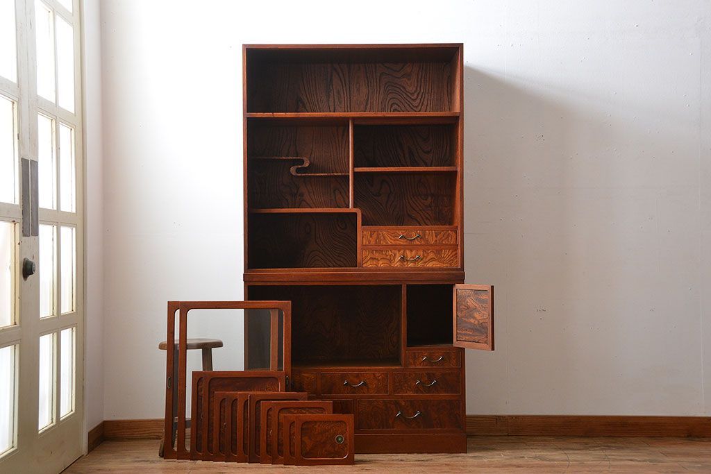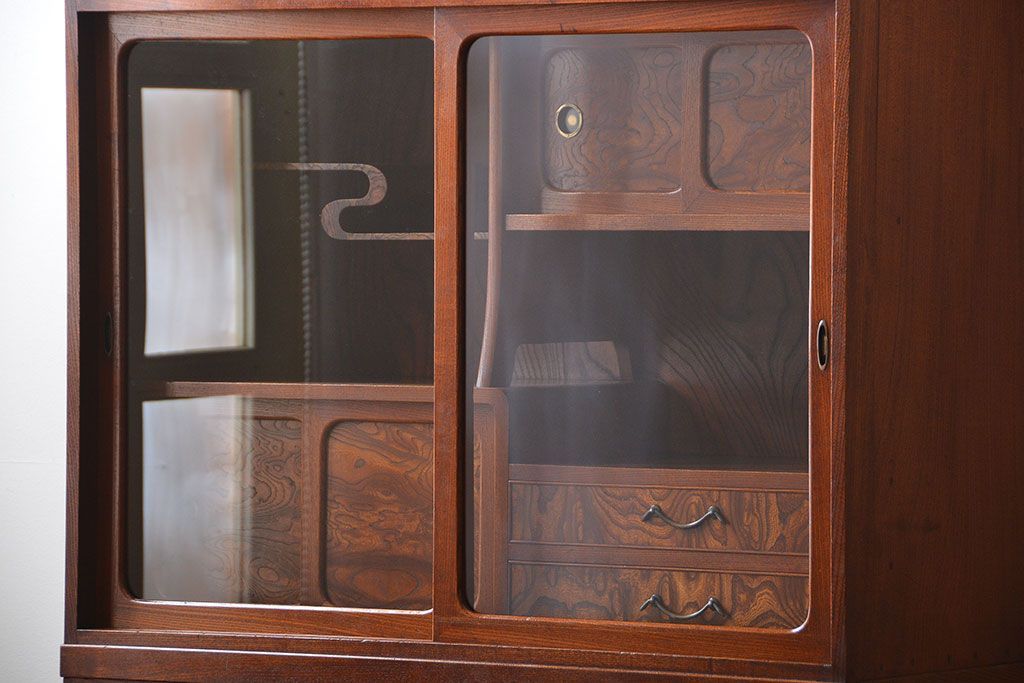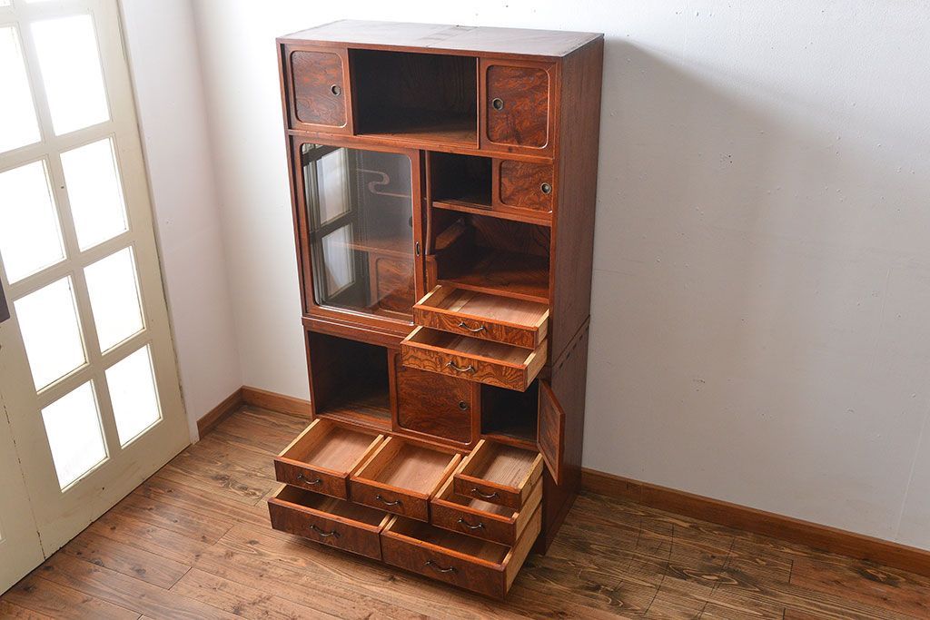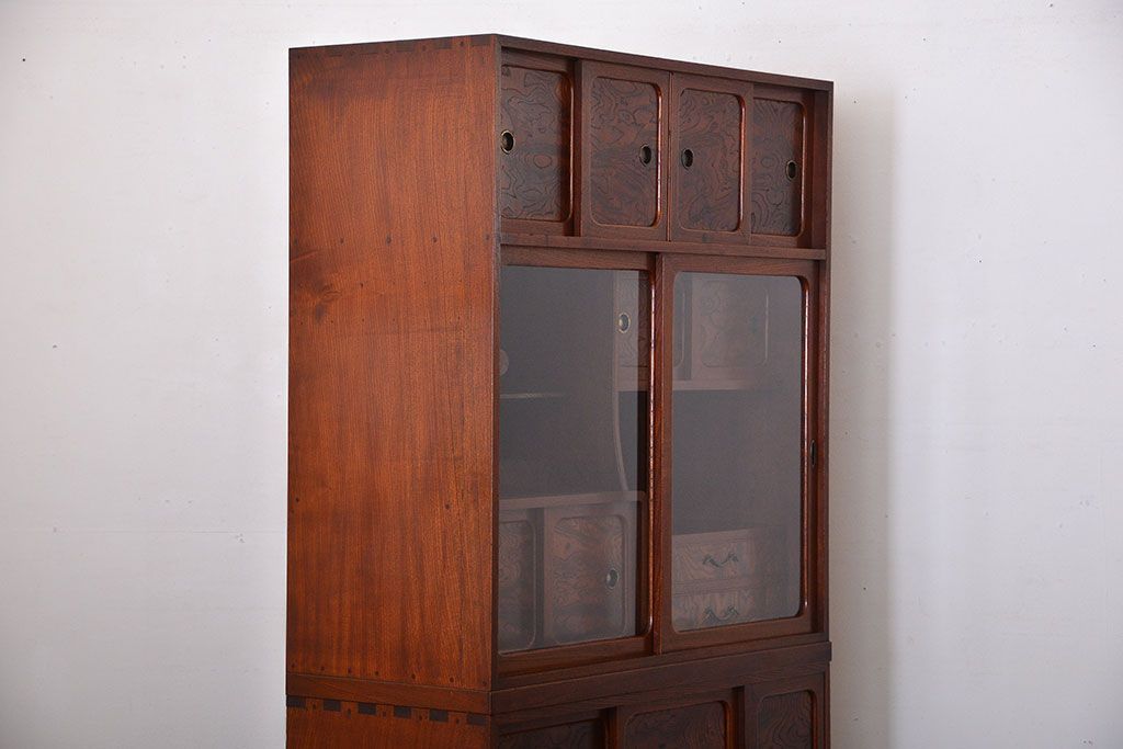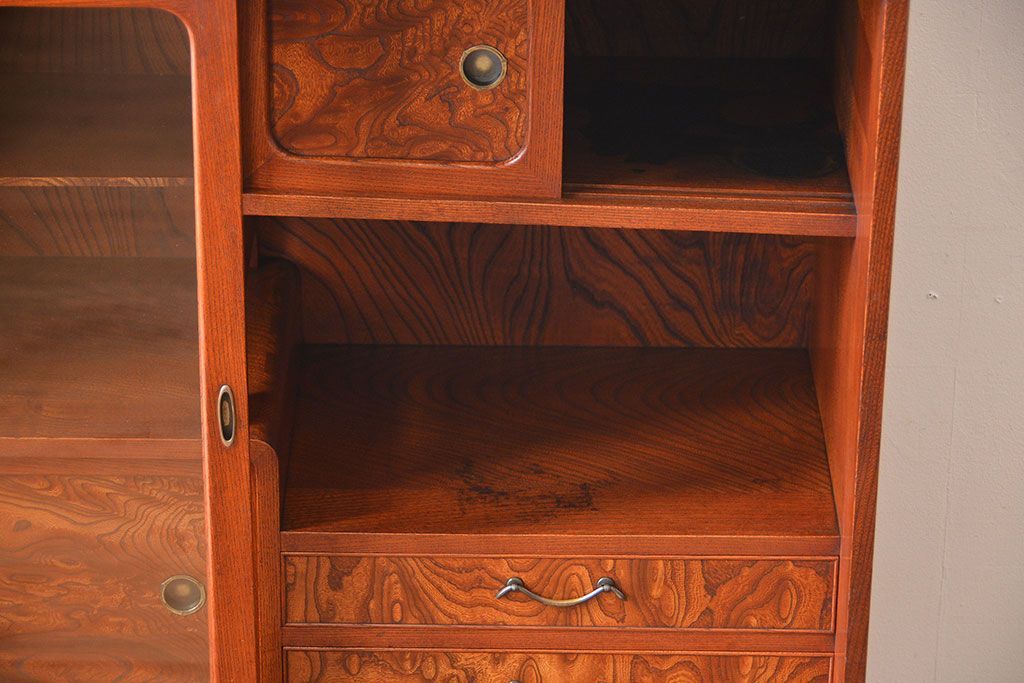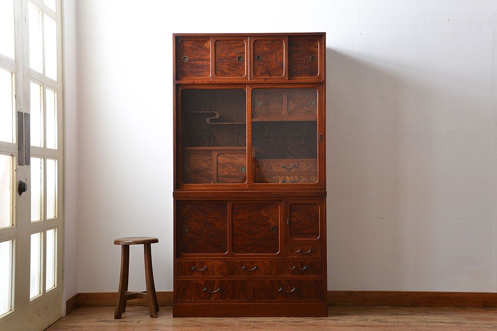 アンティーク家具 和製アンティーク 欅材玉杢!三方欅材の高級茶箪笥