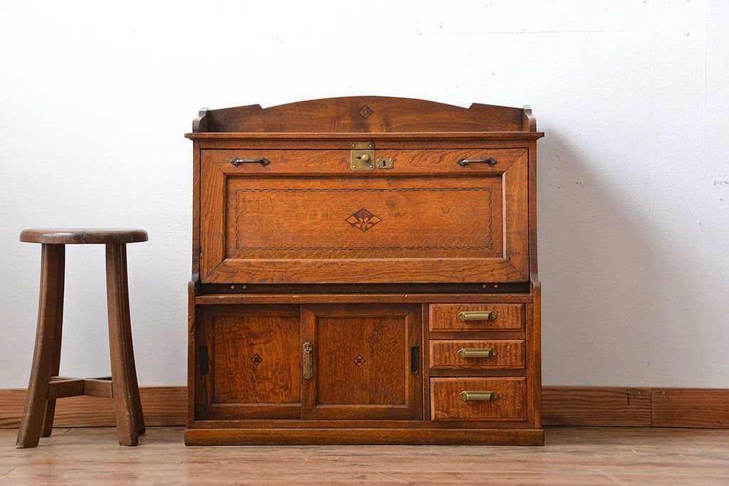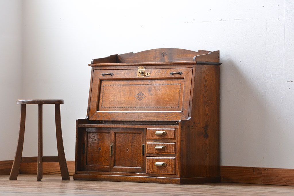 アンティーク家具 和製アンティーク 古い栓材の小ぶりなライティングビューロー