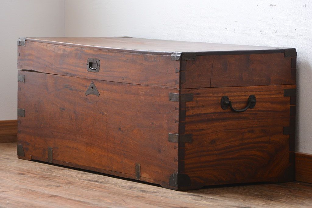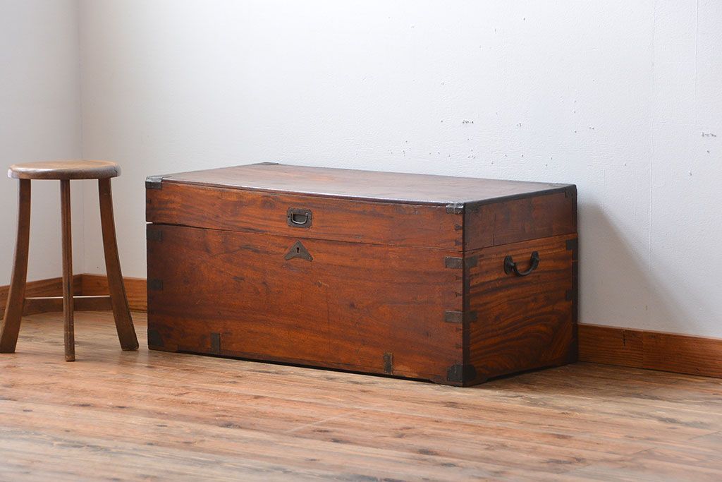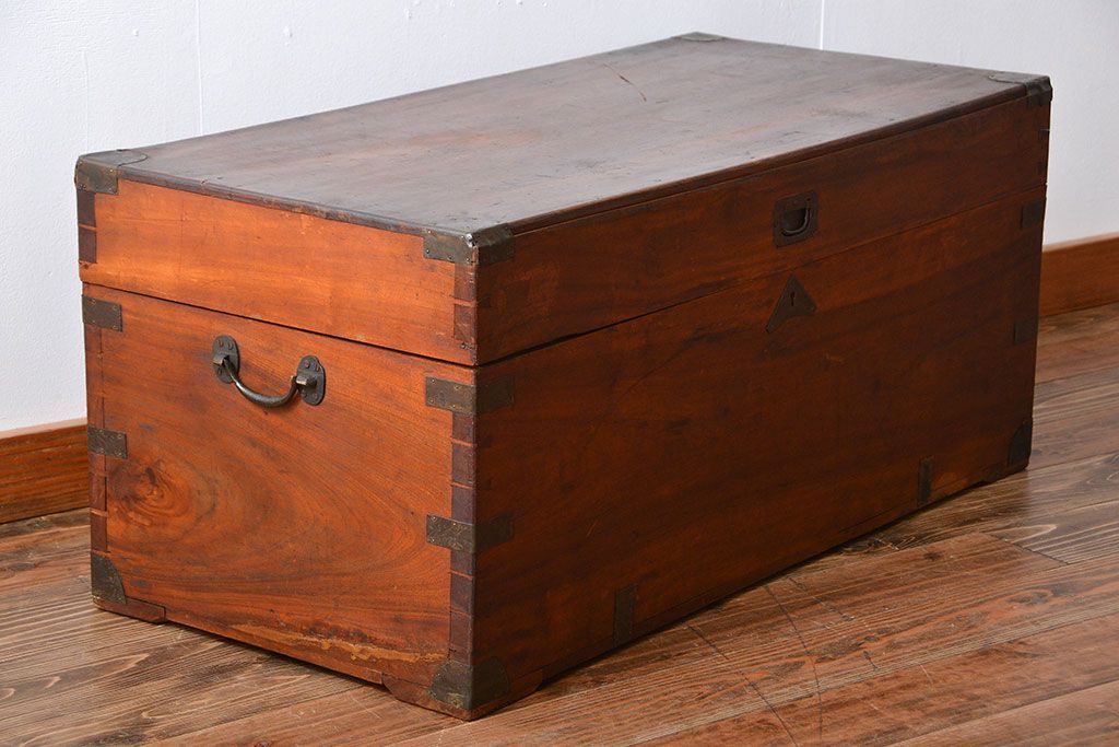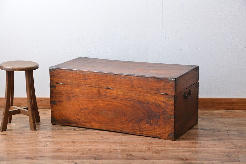 アンティーク雑貨 USビンテージ 古いクスノキ材の木製トランク