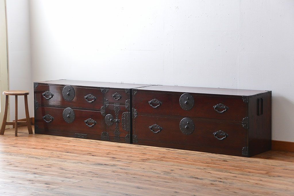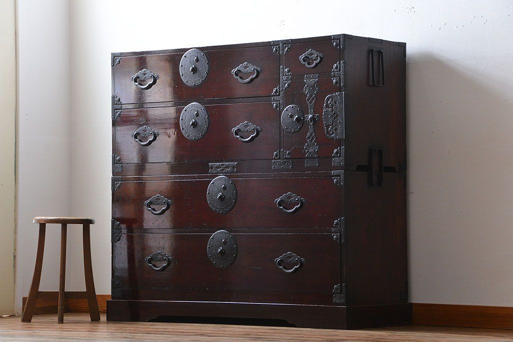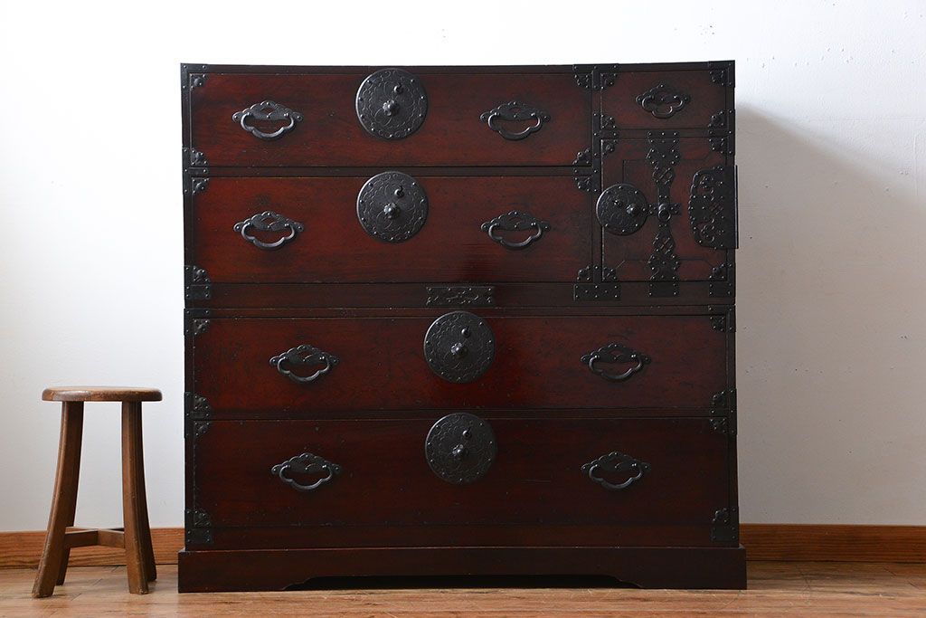アンティーク家具 古民具・骨董 前面栗材の味わい深い米沢箪笥