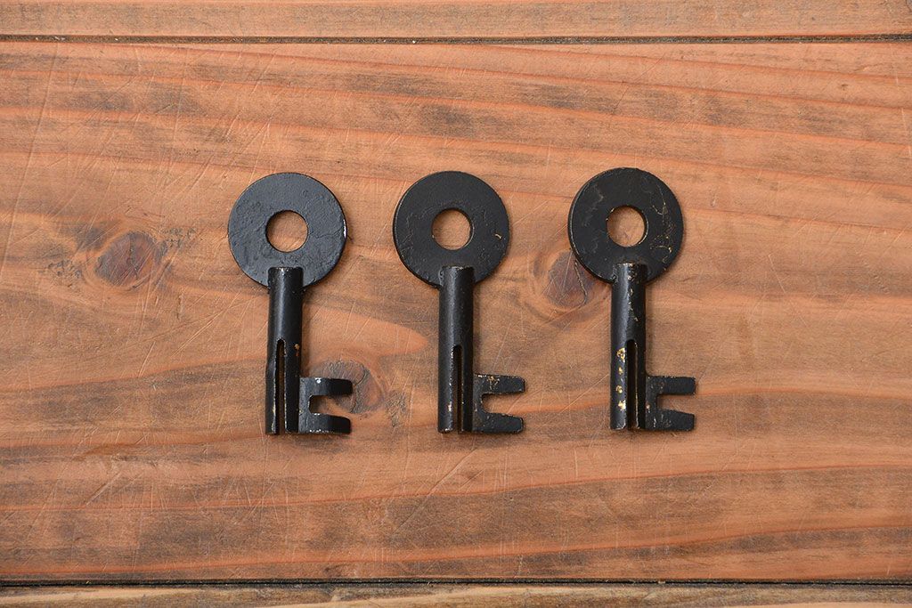 鍵は付属します。画像にありますように、袋に入れお付けします。スムーズに動くように調整していますが、あくまでも古いものや中古品ですので、長期の使用保証は出来かねます。ご購入後不具合が発生した場合は、当店でサポートさせていただきますので、お気軽にご相談くださいませ。