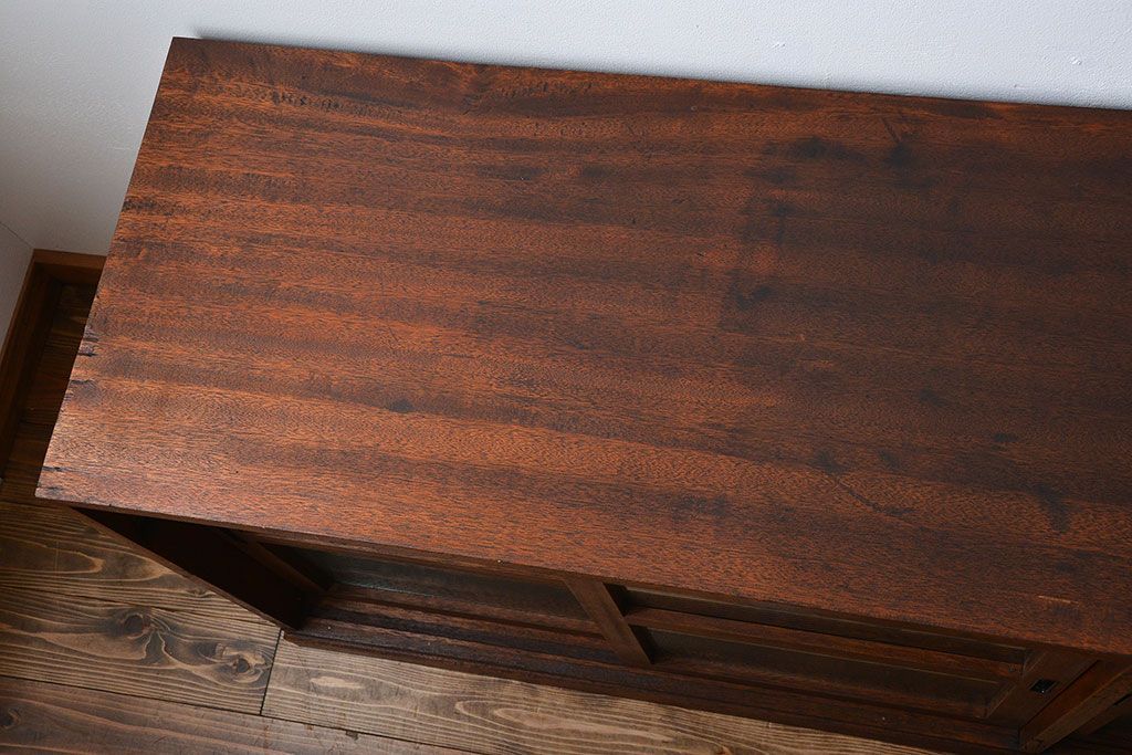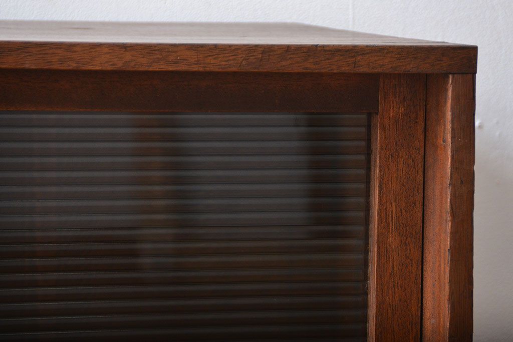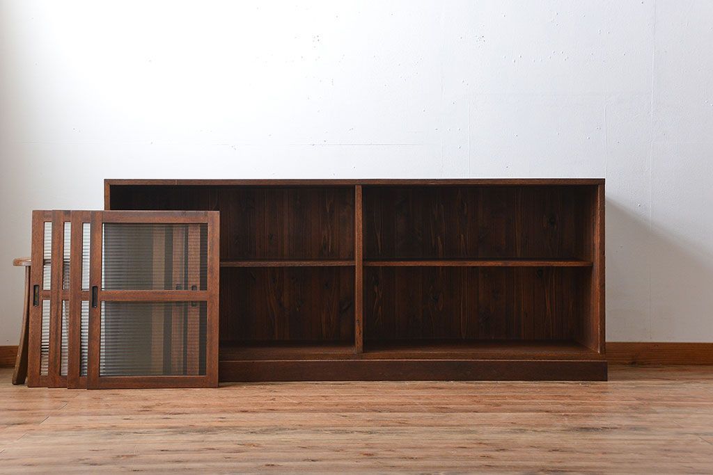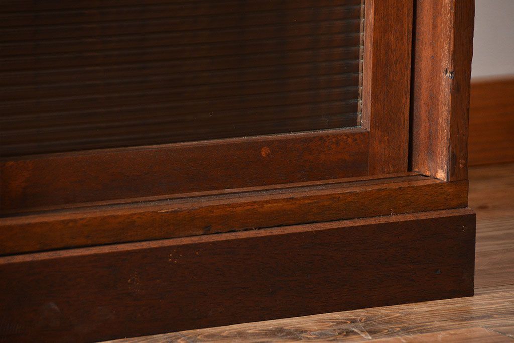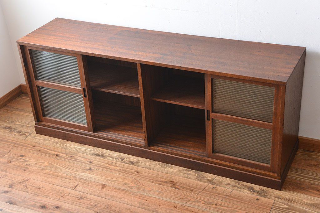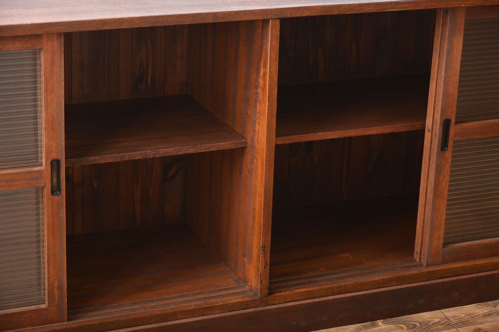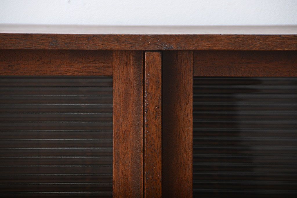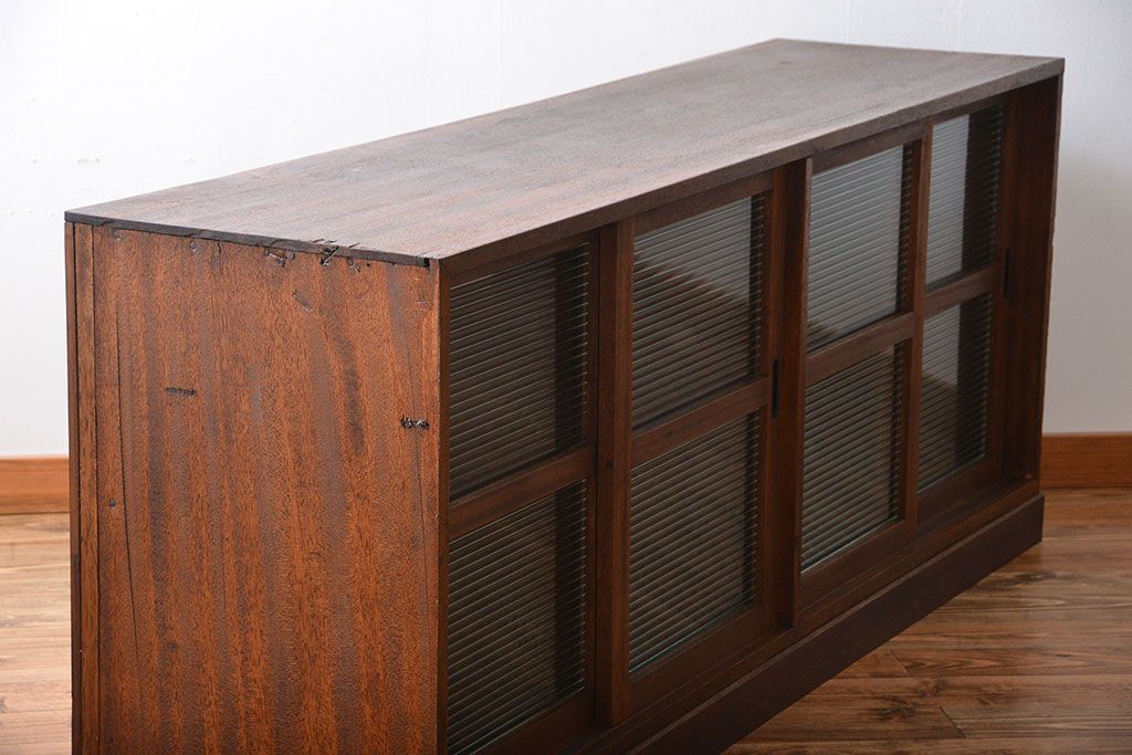 レトロ家具 昭和レトロ モールガラス入り!4枚引き戸のアンティーク収納棚