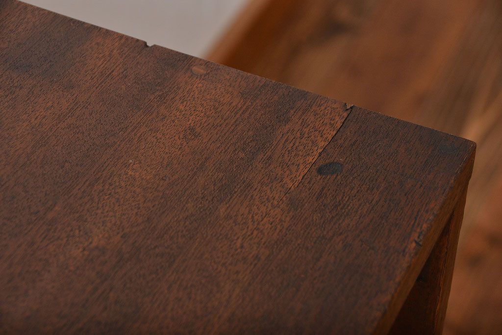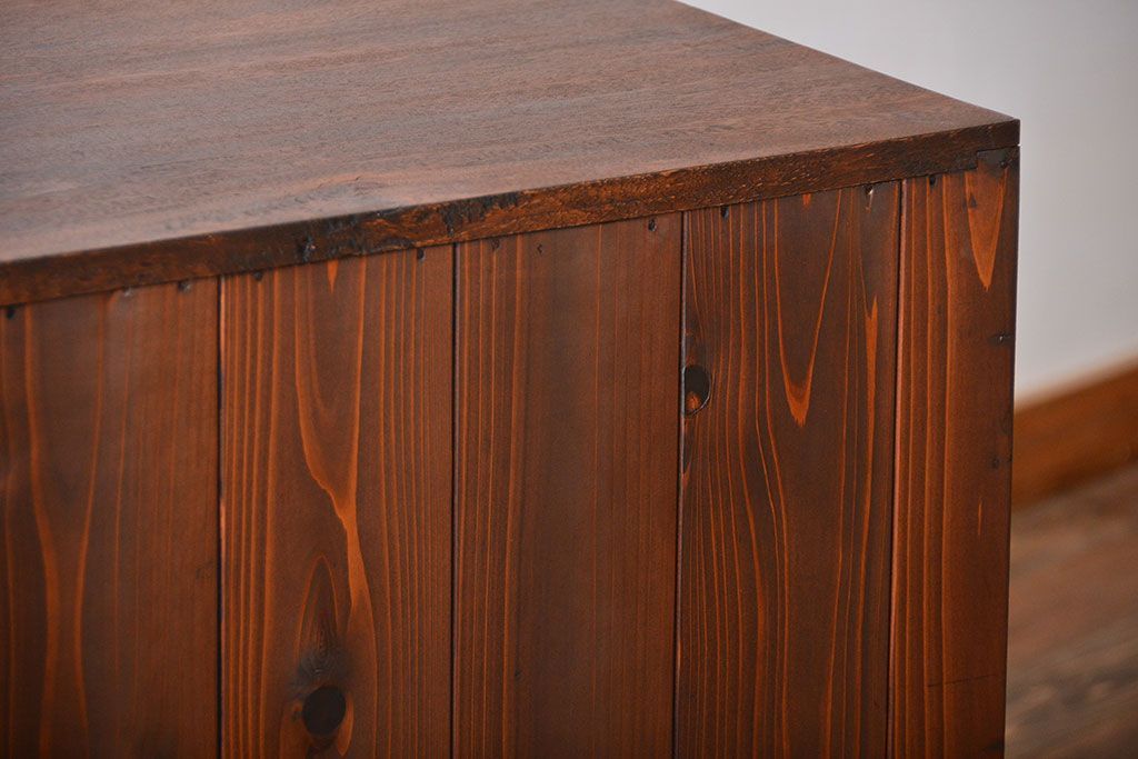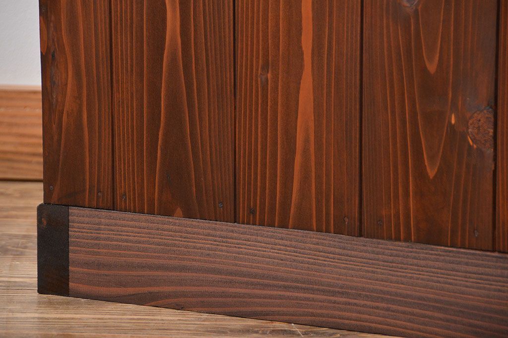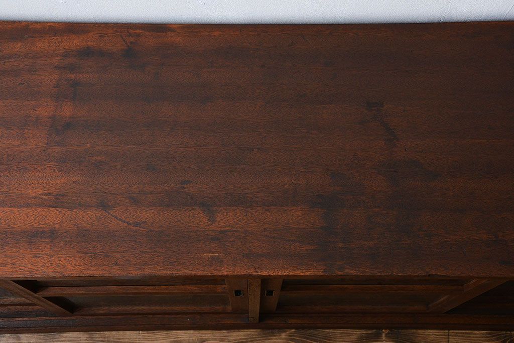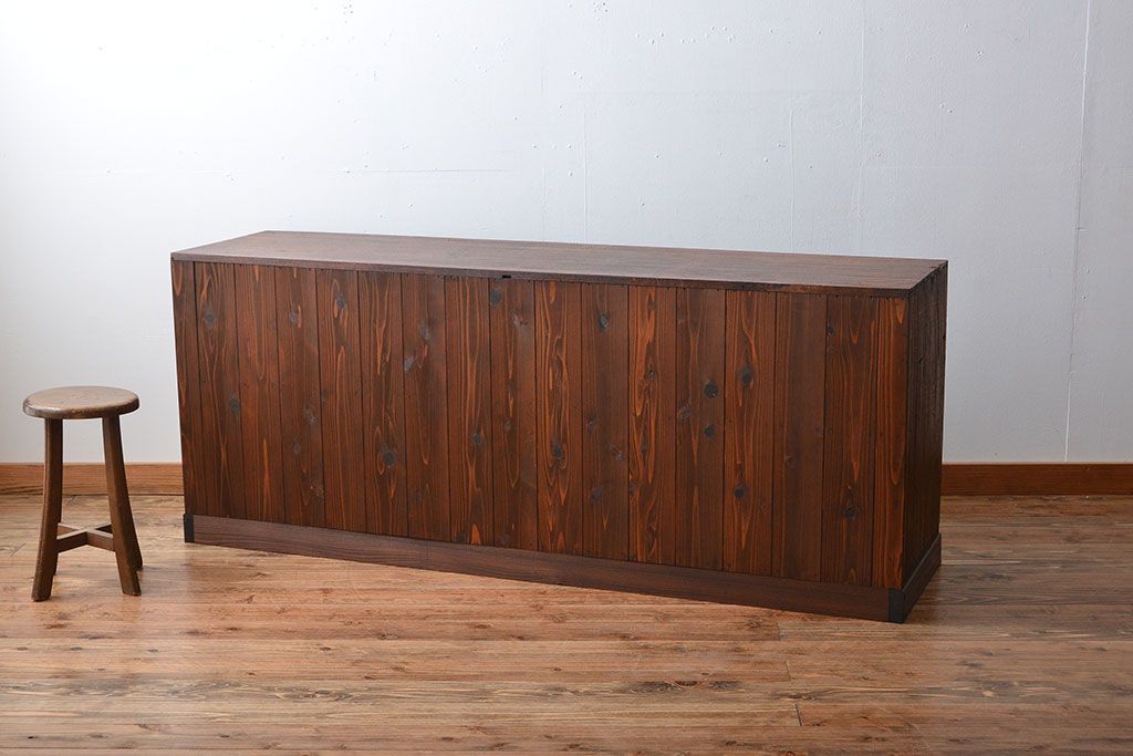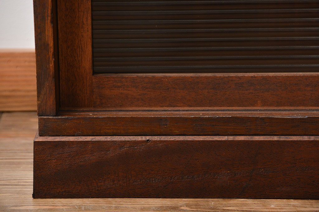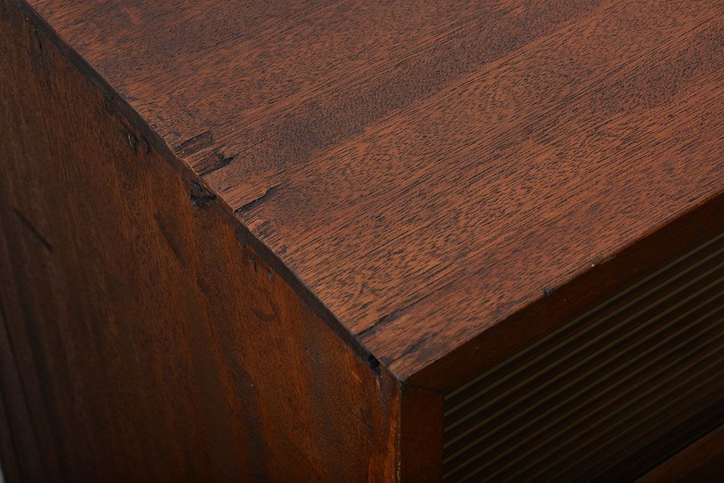 レトロ家具 昭和レトロ モールガラス入り!4枚引き戸のアンティーク収納棚