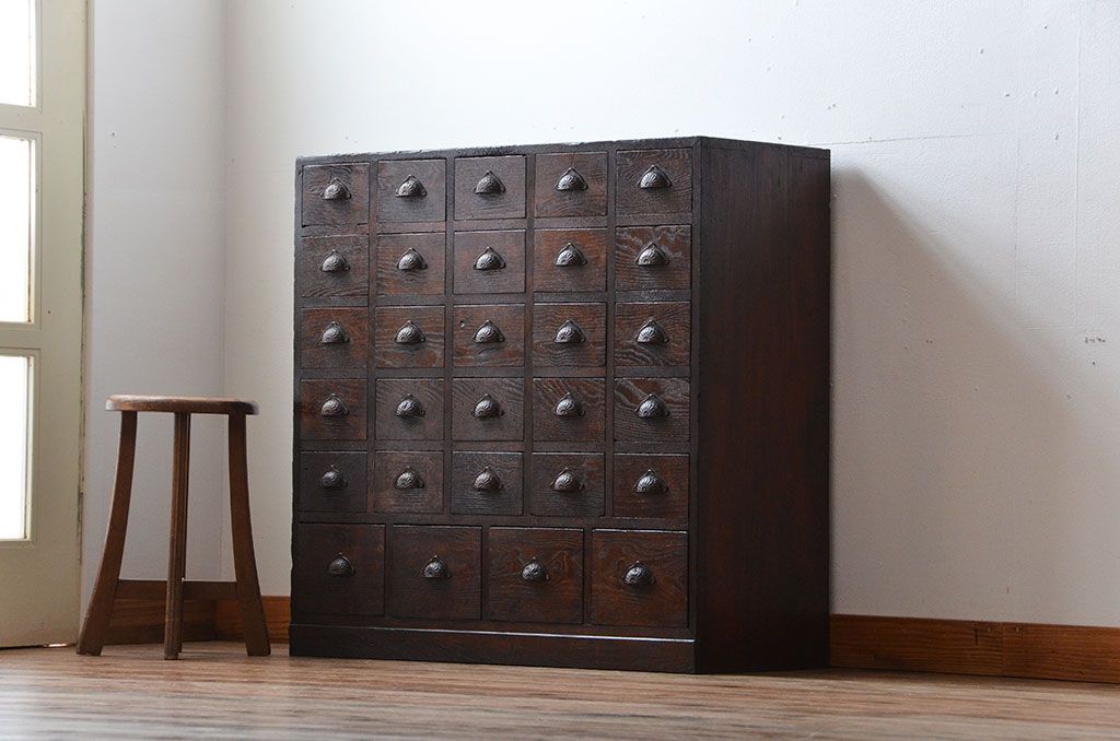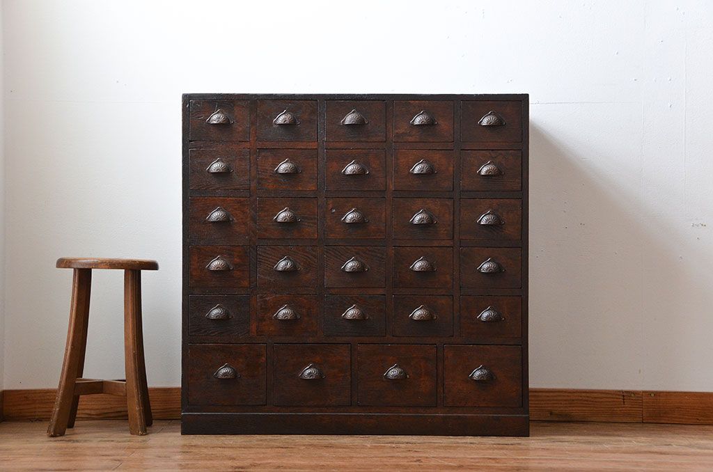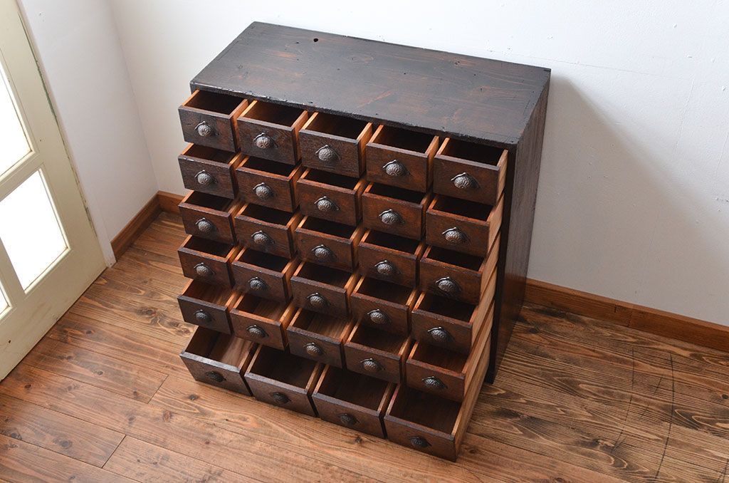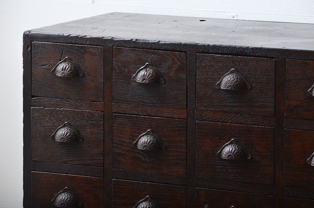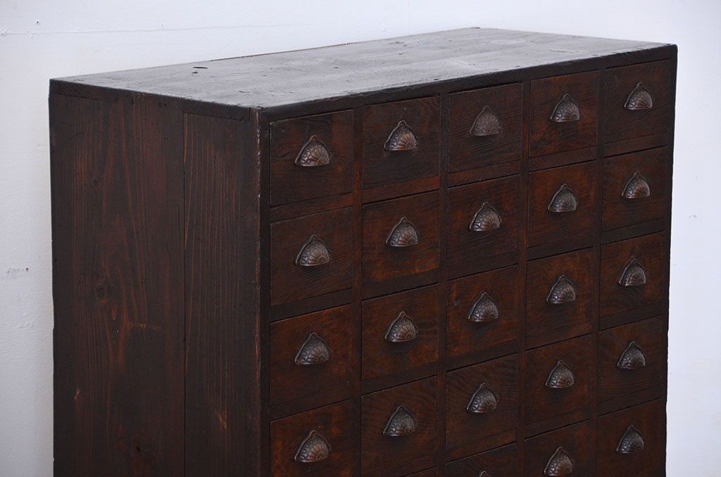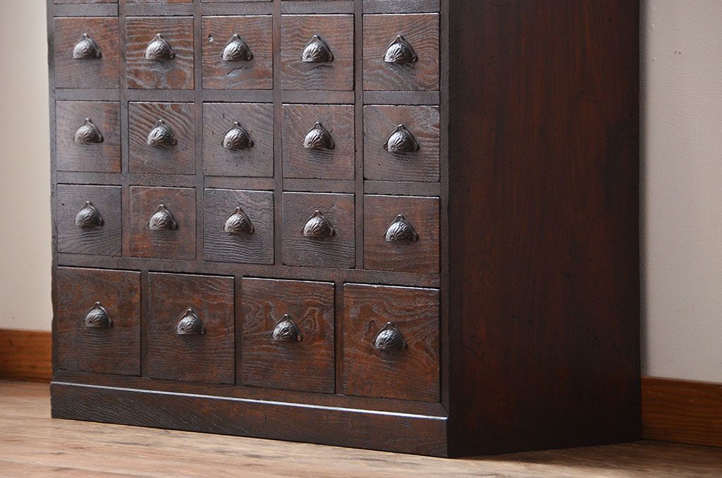 アンティーク家具 古民具・骨董 前面栗材の古い29杯引き出し(ドロワー)