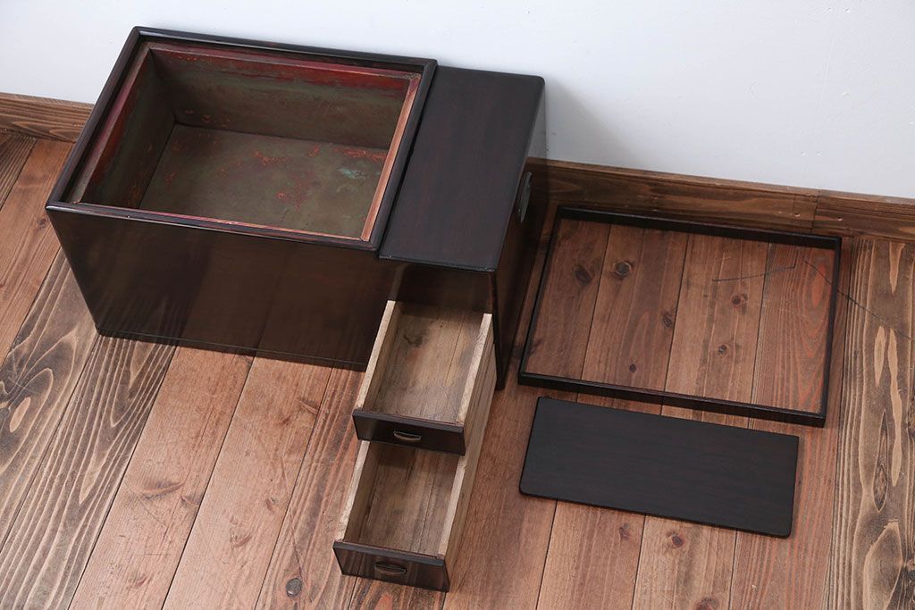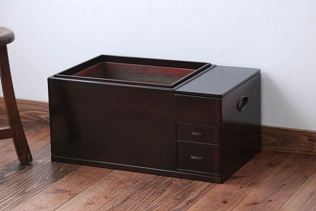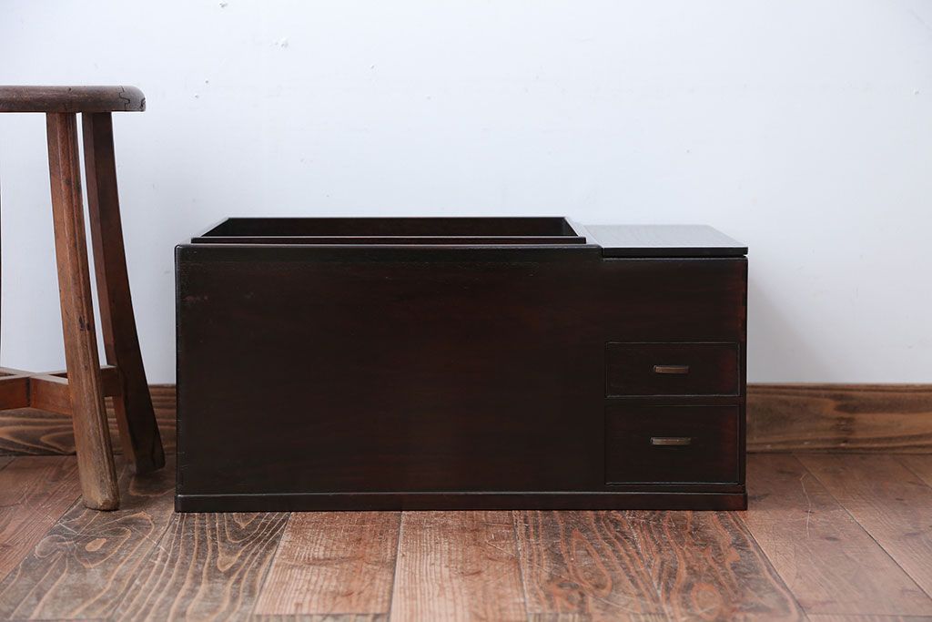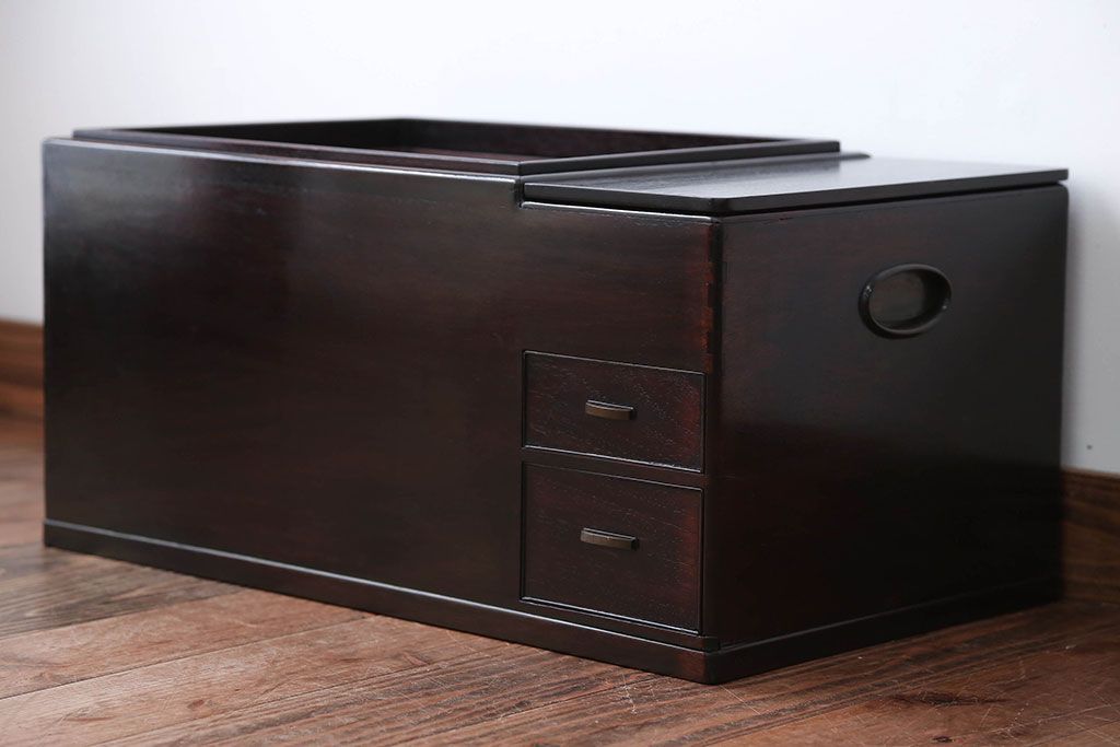 古民具・骨董 古い唐木材の上品でシックなアンティーク長火鉢です。