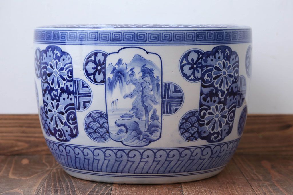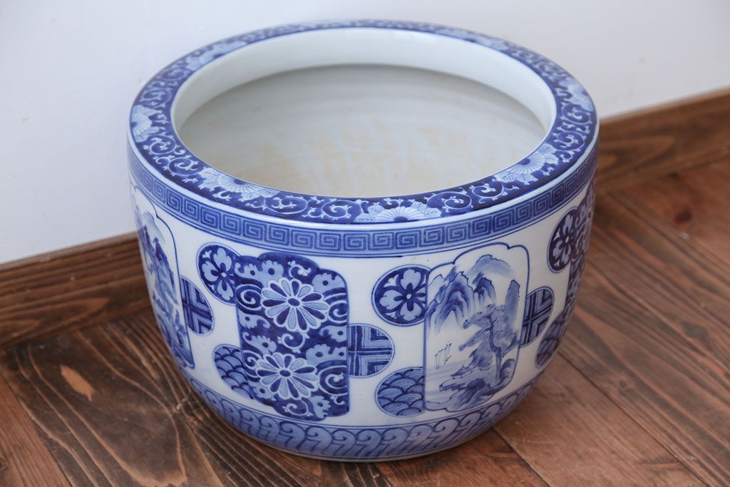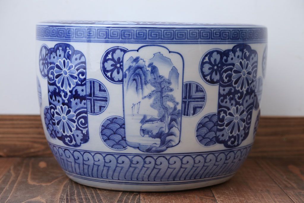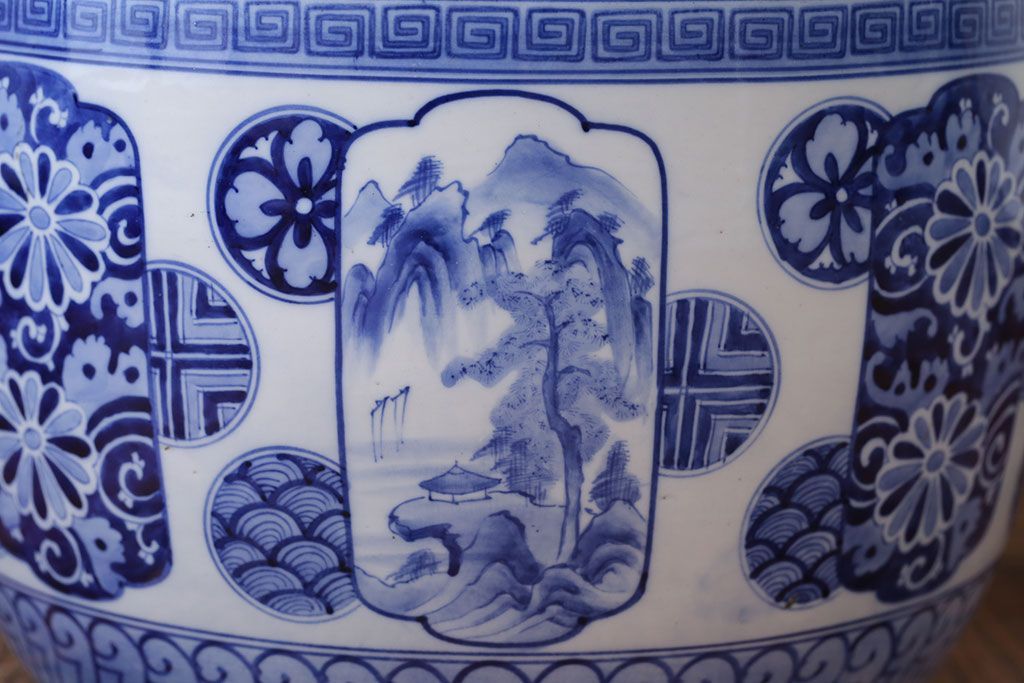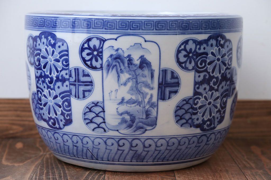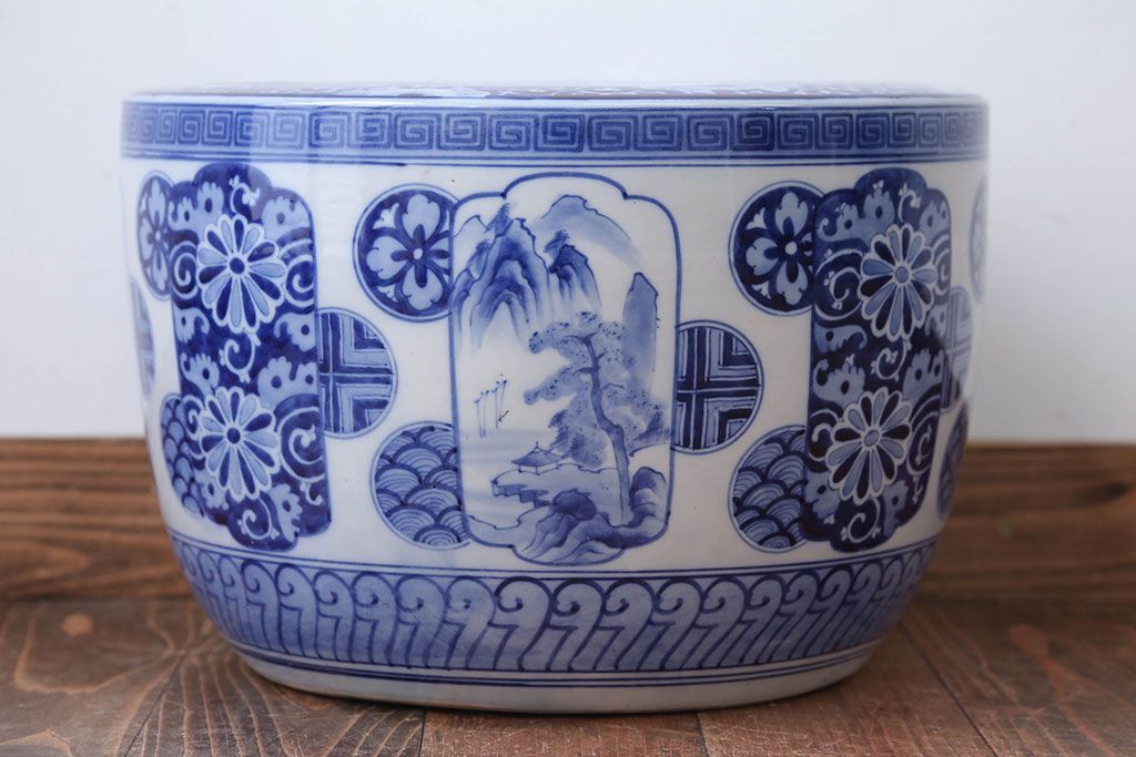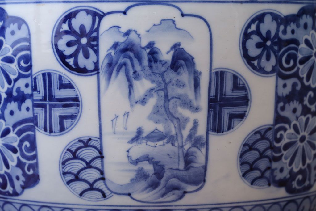 アンティーク雑貨 古民具・骨董 大正〜昭和時代 窓絵のアンティーク瀬戸火鉢
