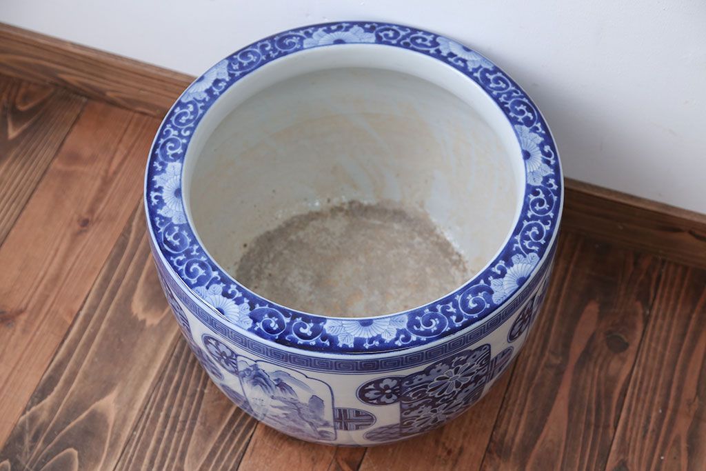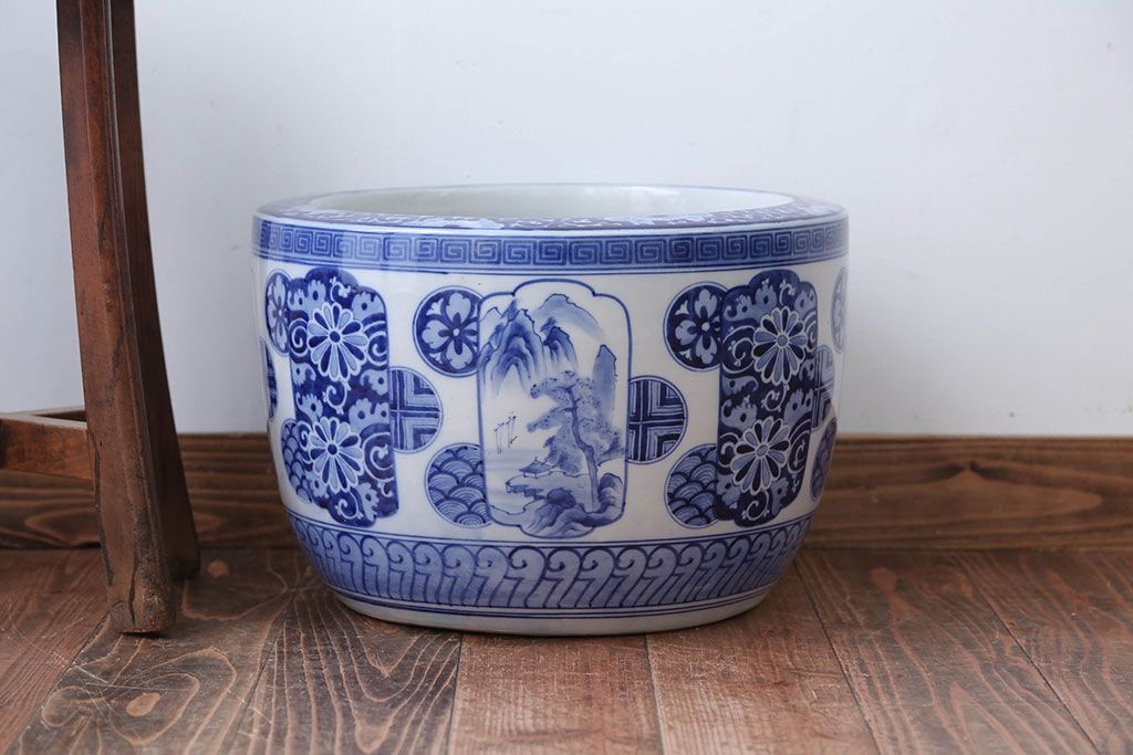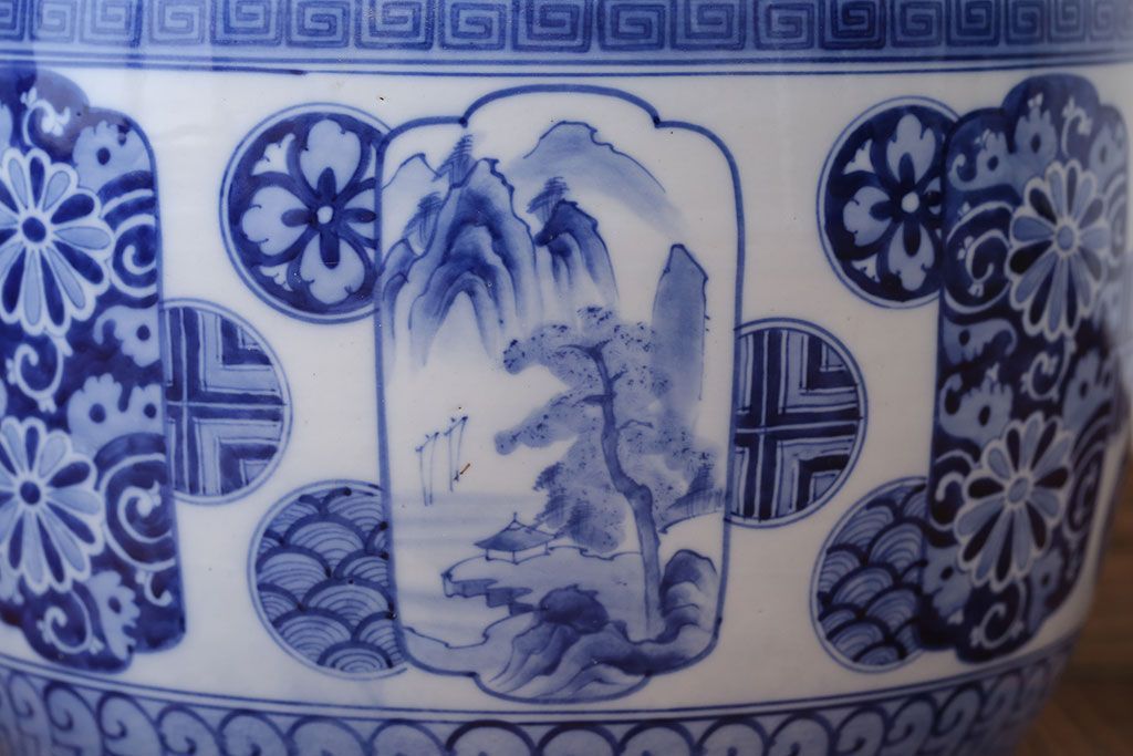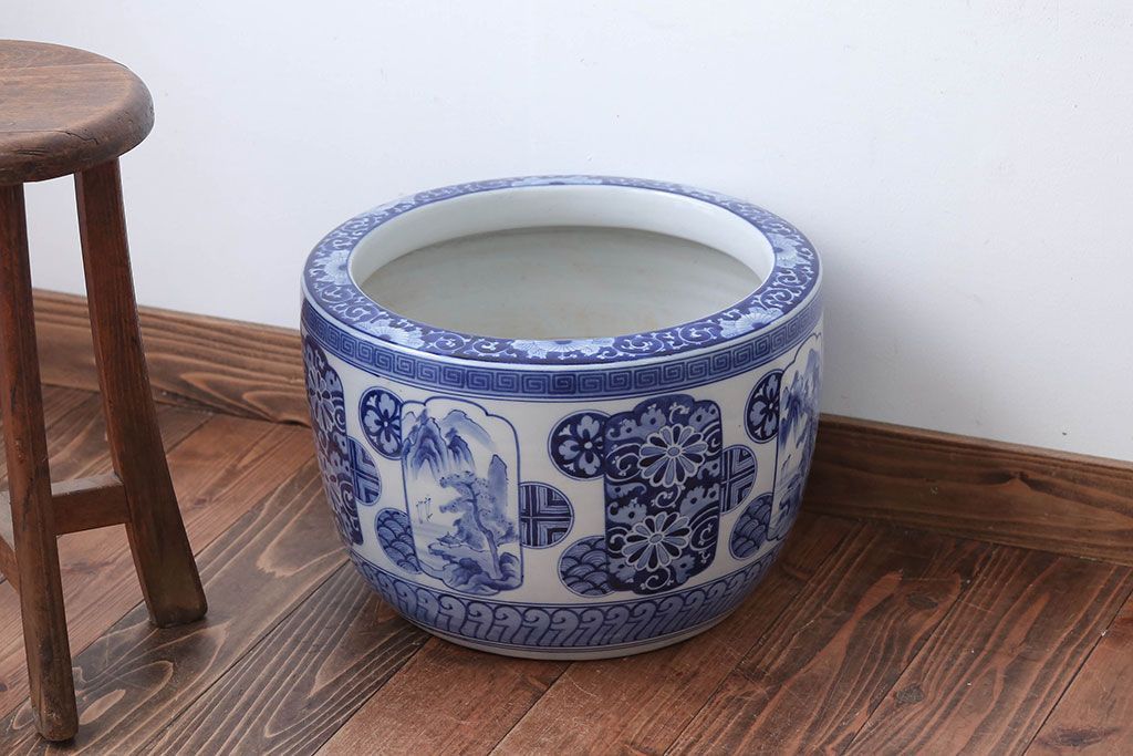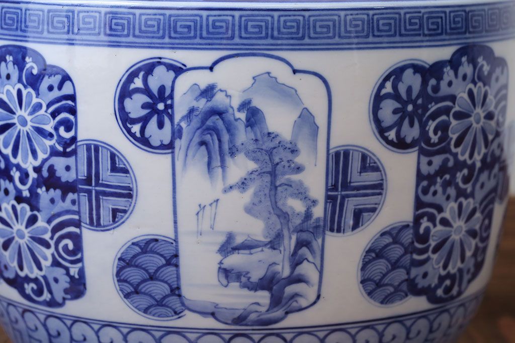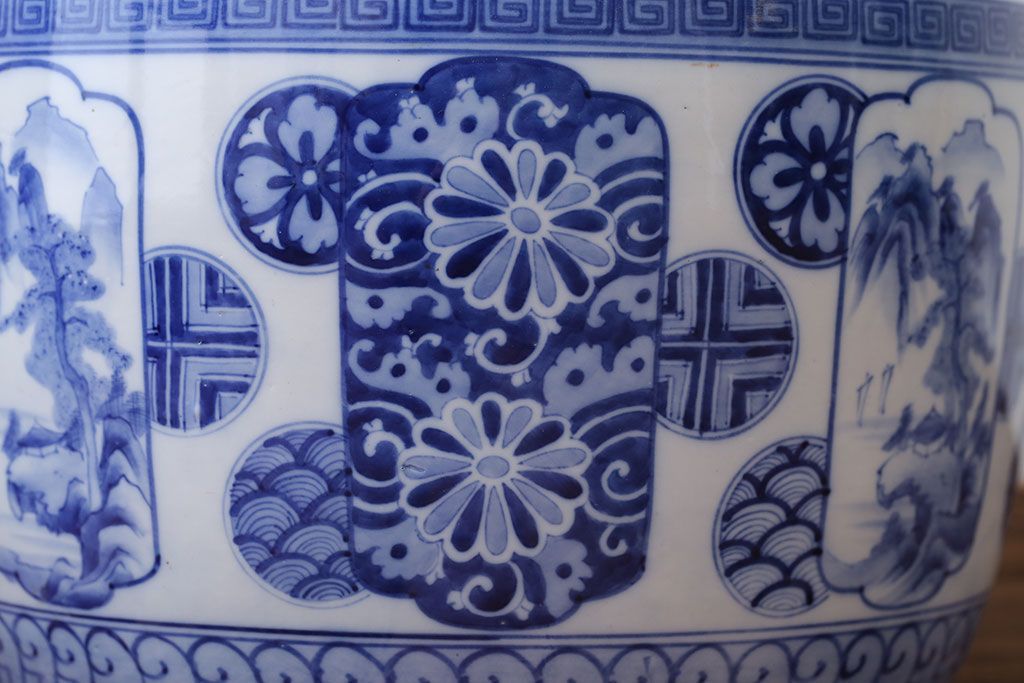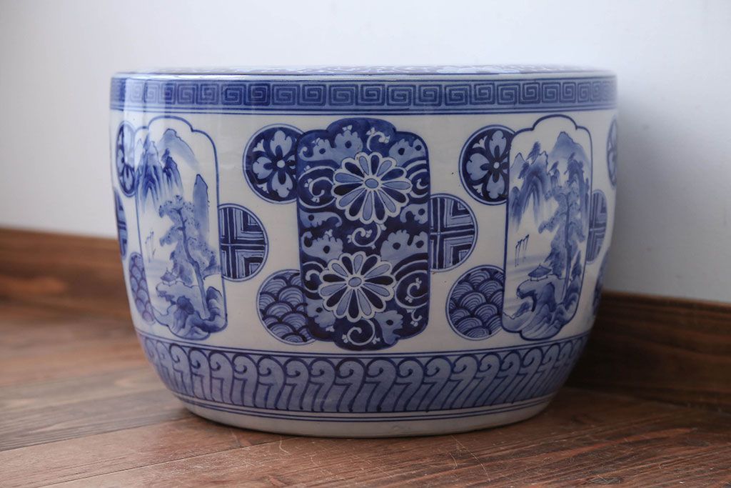 アンティーク雑貨 古民具・骨董 大正〜昭和時代 窓絵のアンティーク瀬戸火鉢