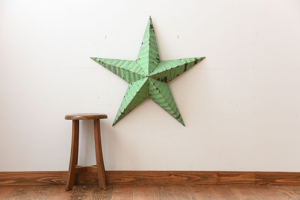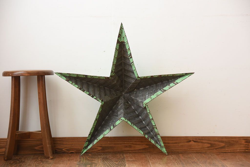 アンティーク雑貨 アメリカビンテージ 古いアイアン製のとても大きな壁掛け星形ブリキオーナメント(2)