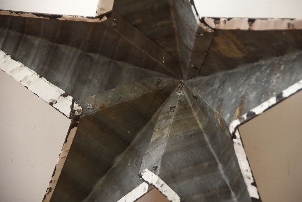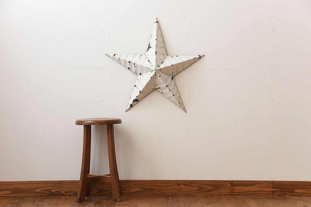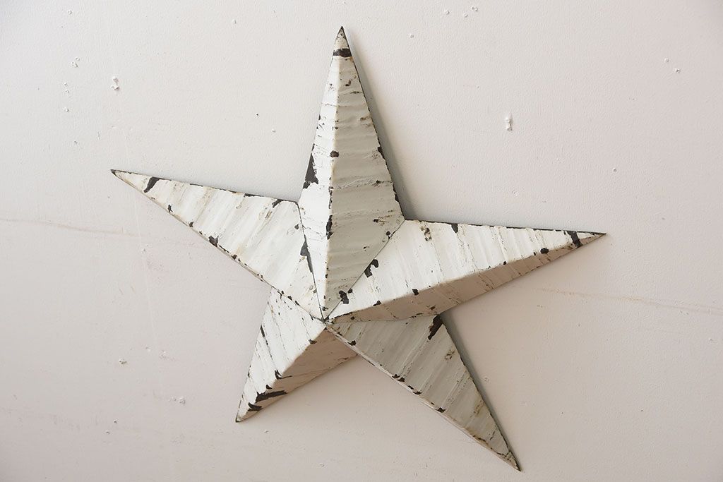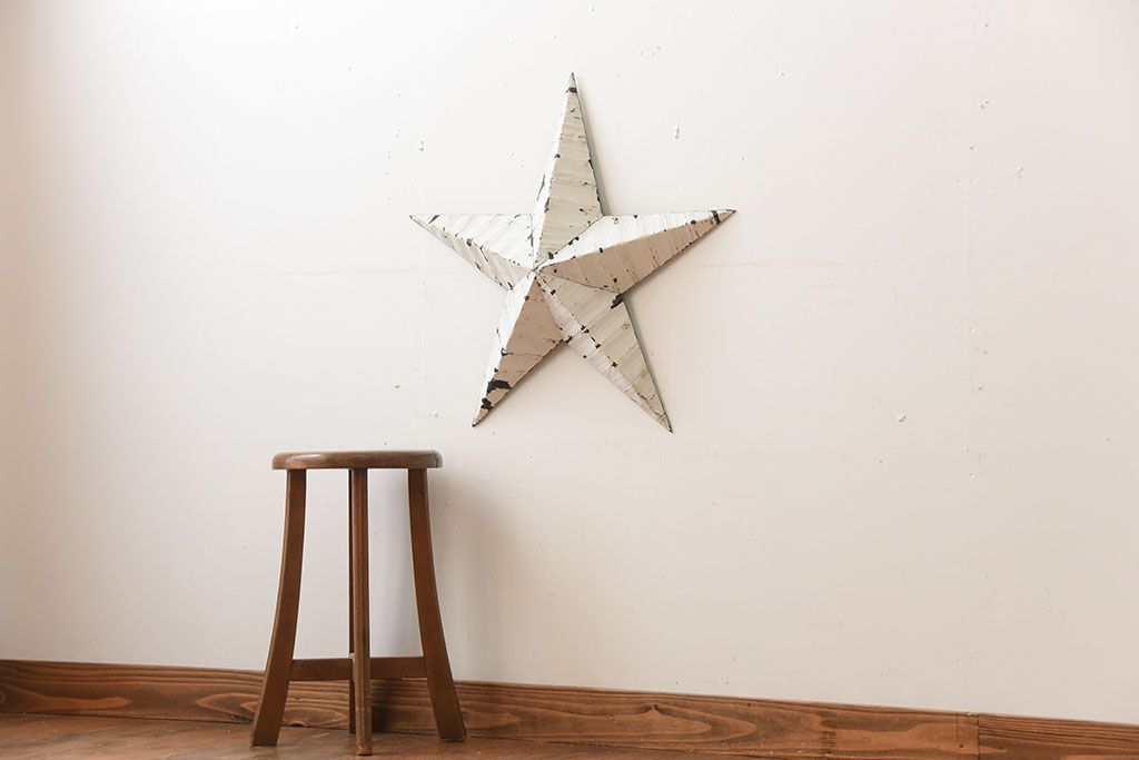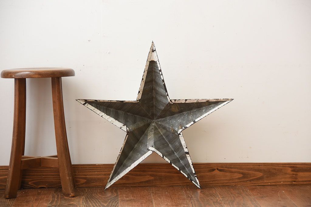 アンティーク雑貨 アメリカビンテージ 古いアイアン製の大きな壁掛け星形ブリキオーナメント(1)
