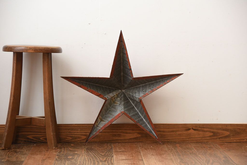 アンティーク雑貨 アメリカビンテージ 古いアイアン製の大きな壁掛け星形ブリキオーナメント(3)