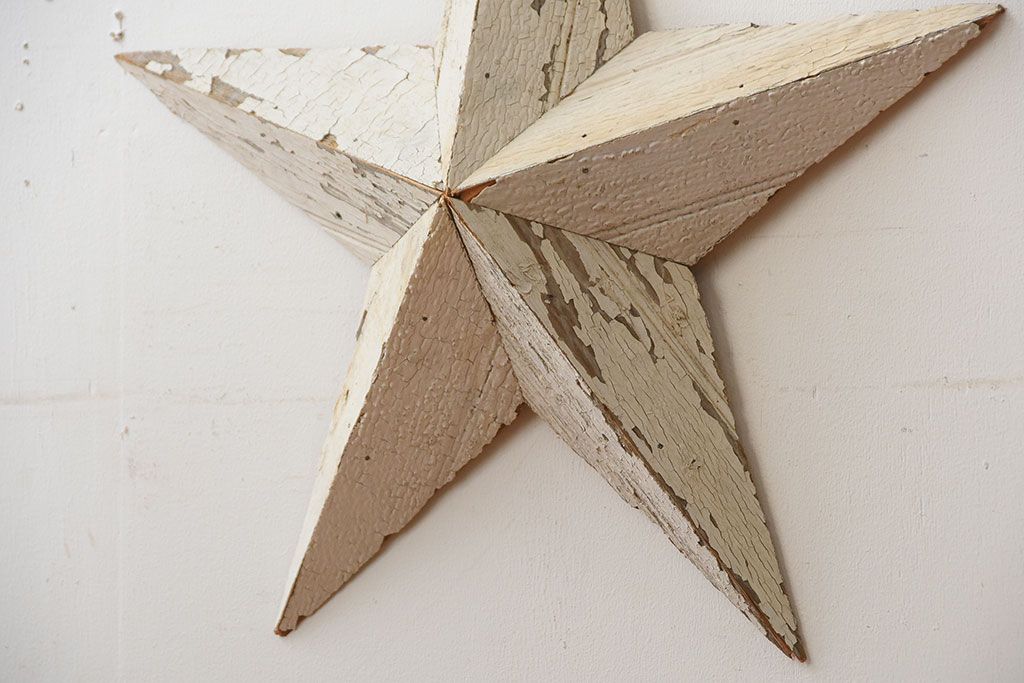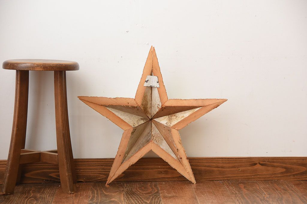 アンティーク雑貨 アメリカビンテージ 古い木製の大きな壁掛け星形オーナメント