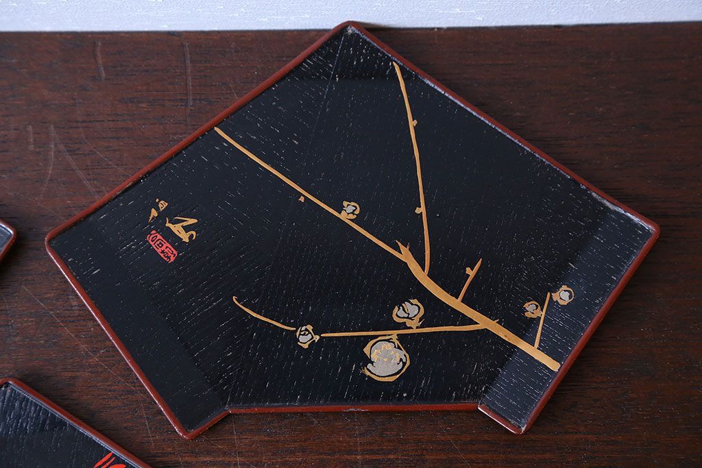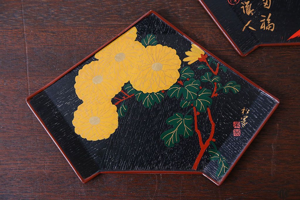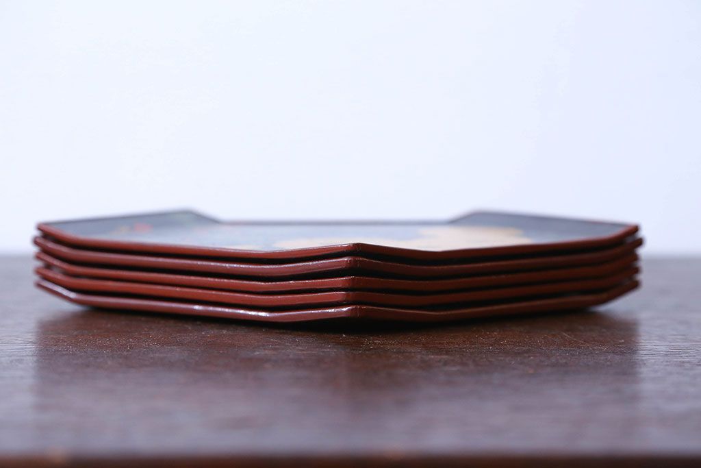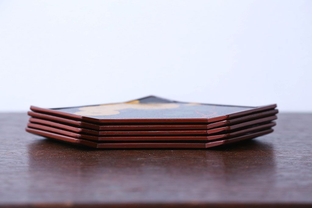 アンティーク雑貨 東西大家作画・菓子盆5枚セット(大観、玉堂など銘々盆)