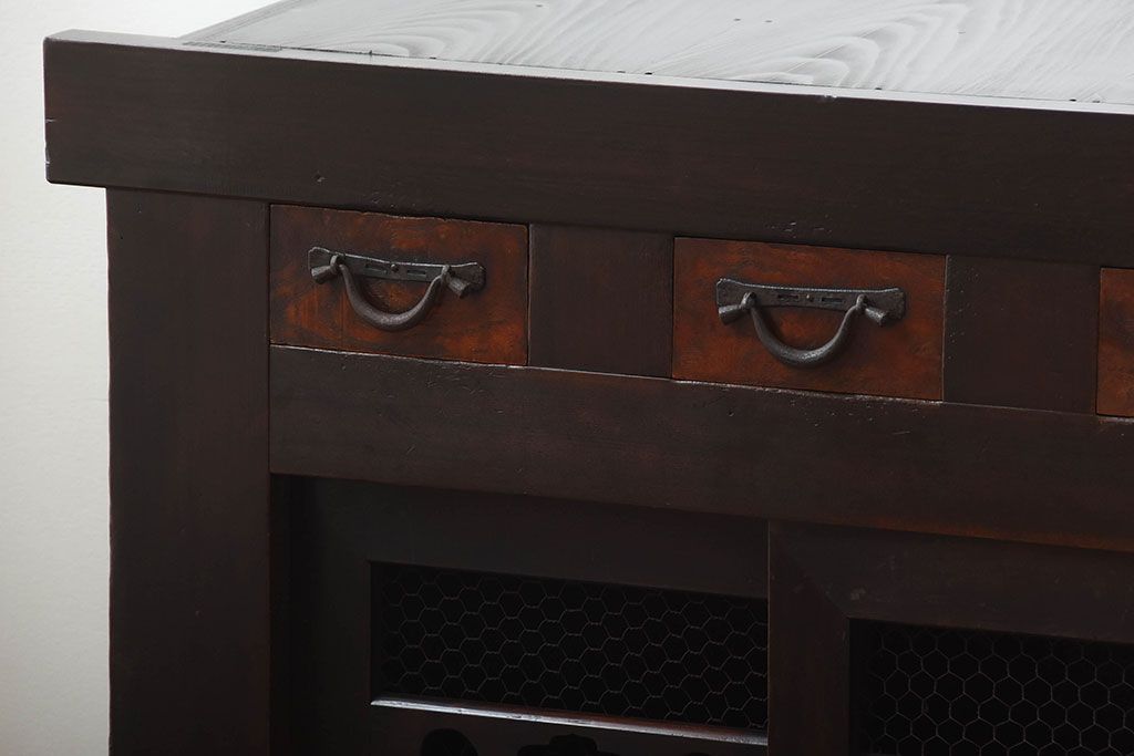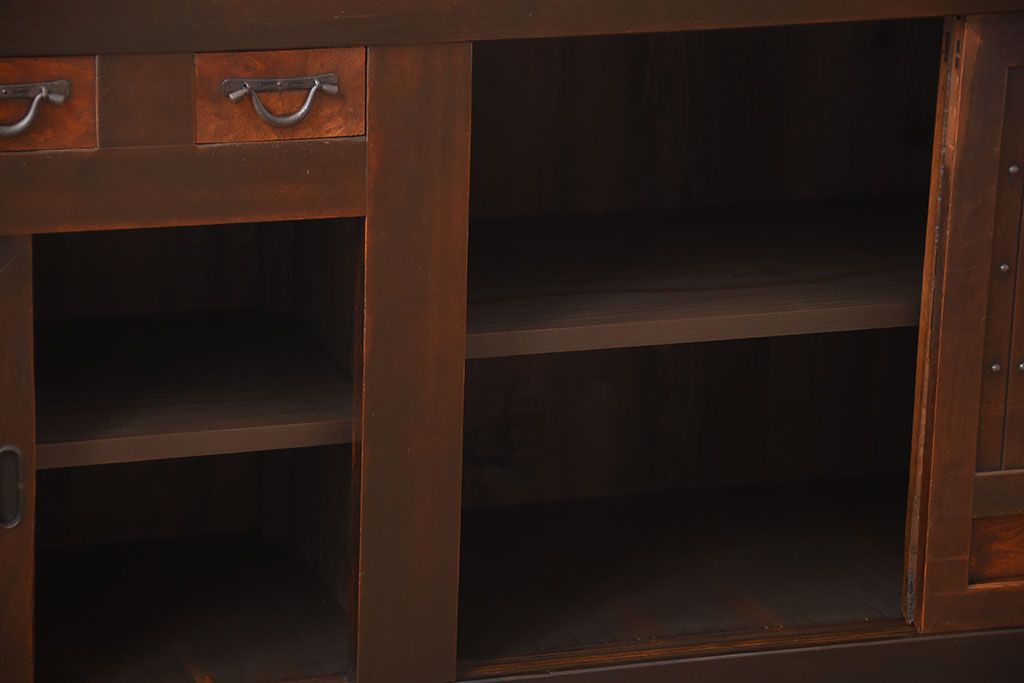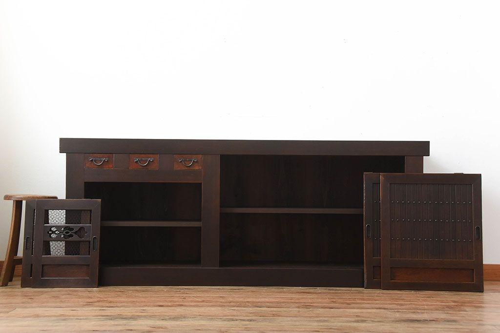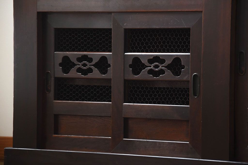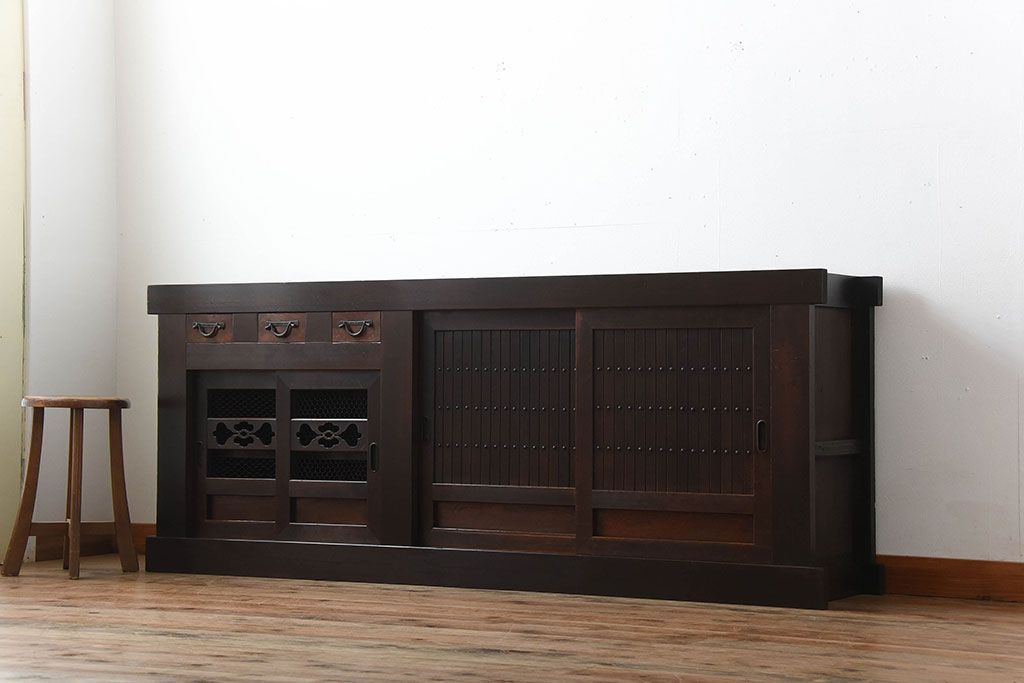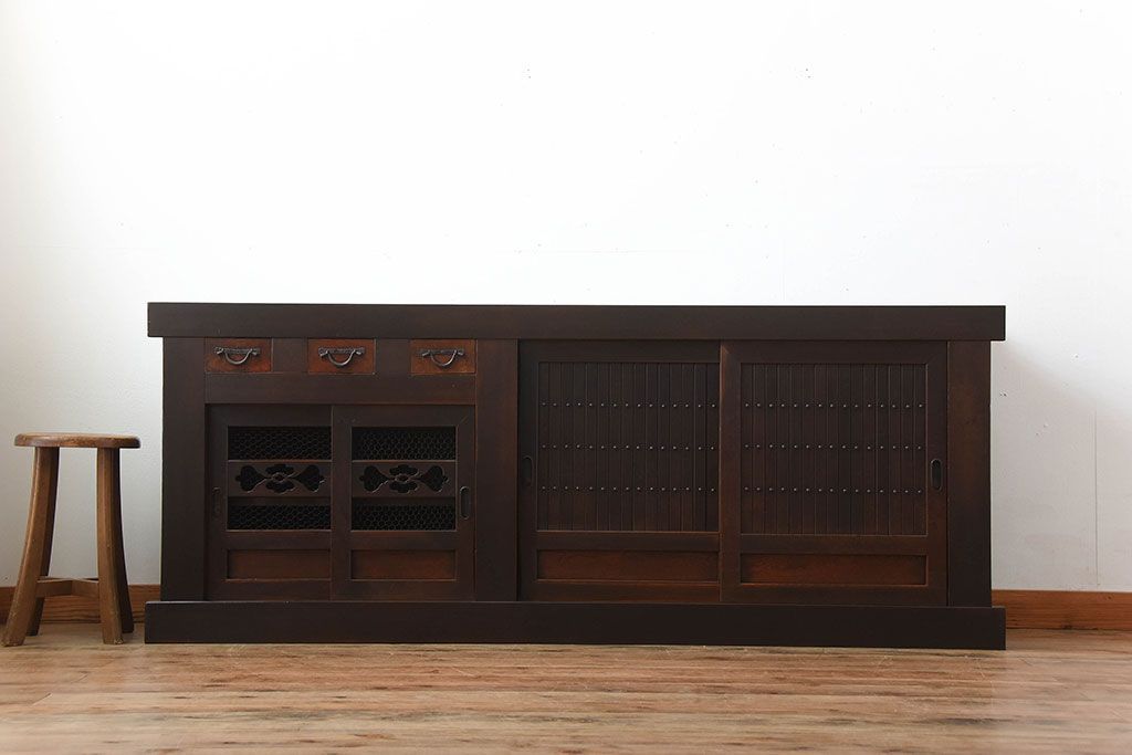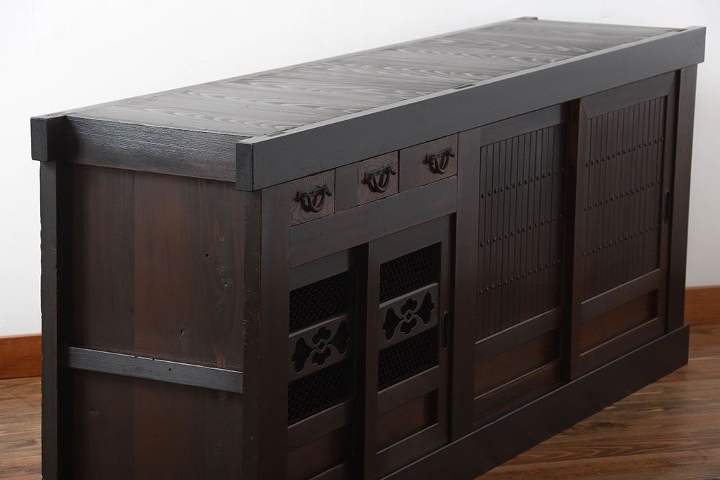 和箪笥> 水屋箪笥 > アンティーク家具 古民具・骨董 古い水屋箪笥ローボード(リビングボード、テレビボード、テレビ台、キャビネット、収納棚)(2)