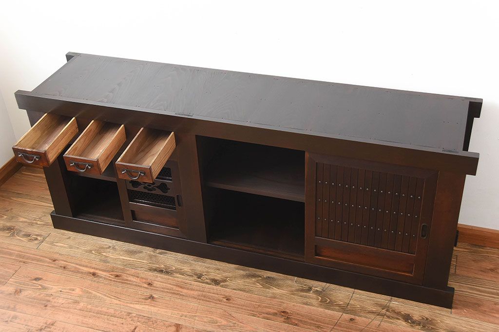 アンティーク家具 古民具・骨董 古い水屋箪笥ローボード(リビングボード、テレビボード、テレビ台、キャビネット、収納棚)(2)