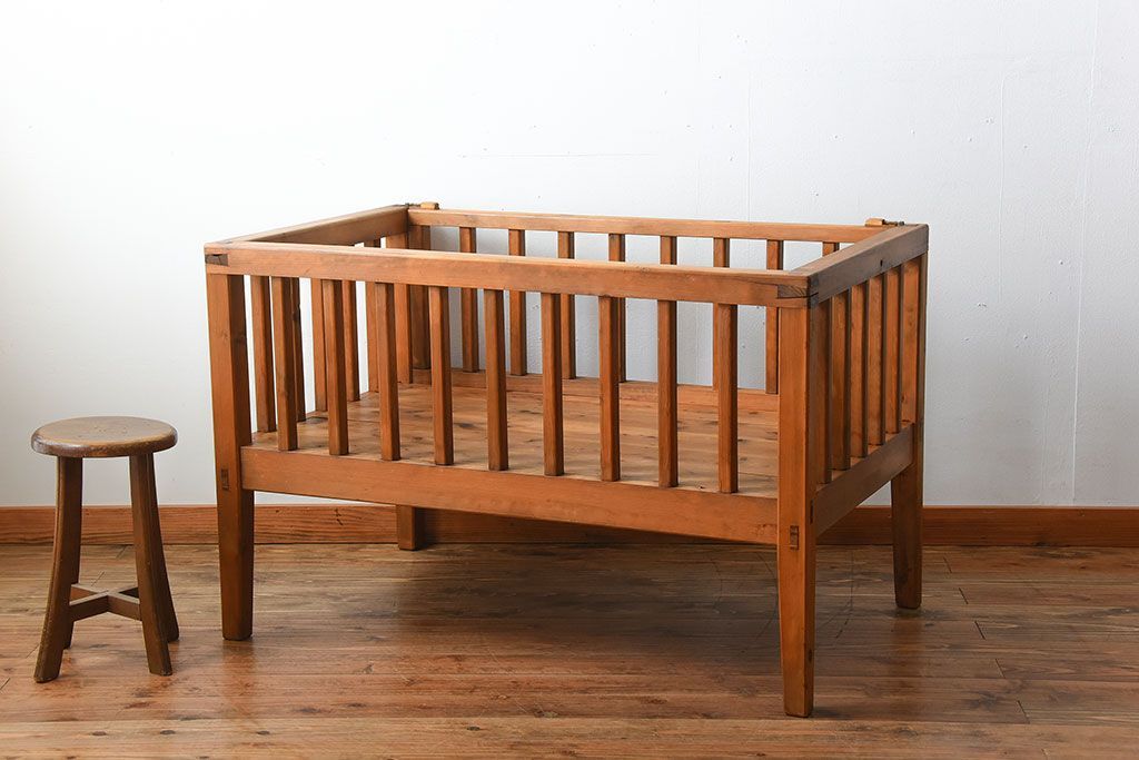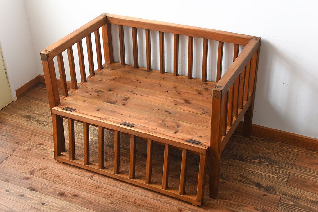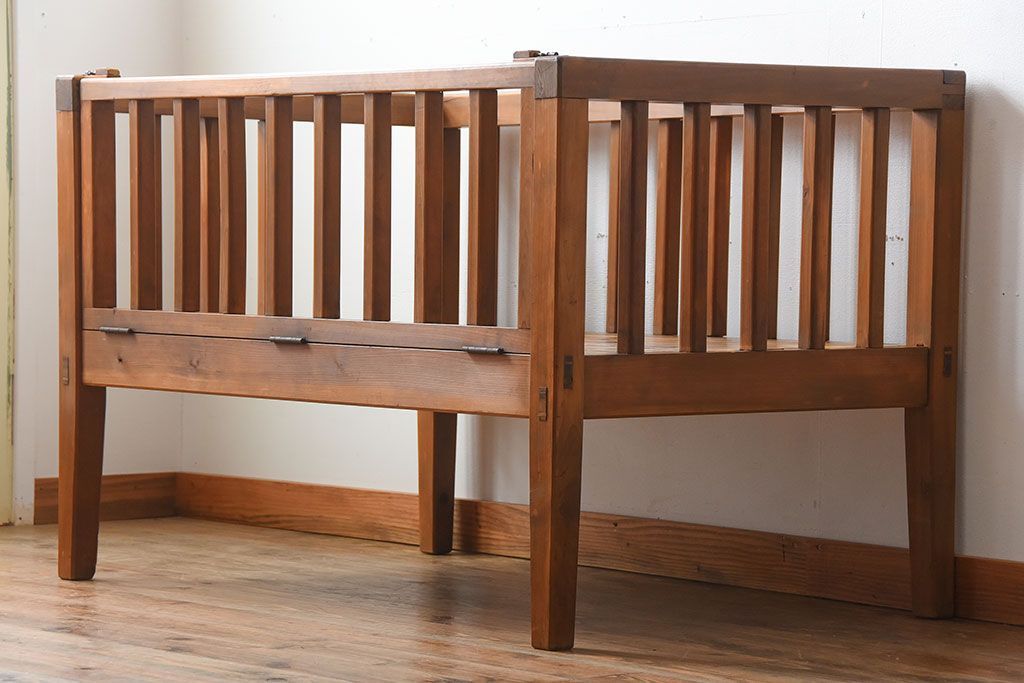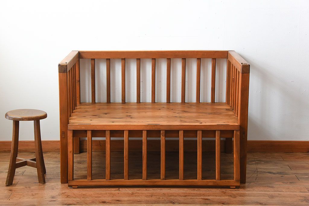 アンティーク家具 和製アンティーク 古い木製の木味の良いベビーベッド(ベンチ・ソファ)