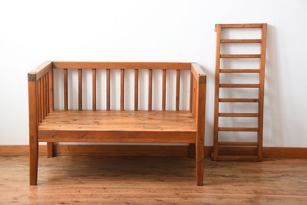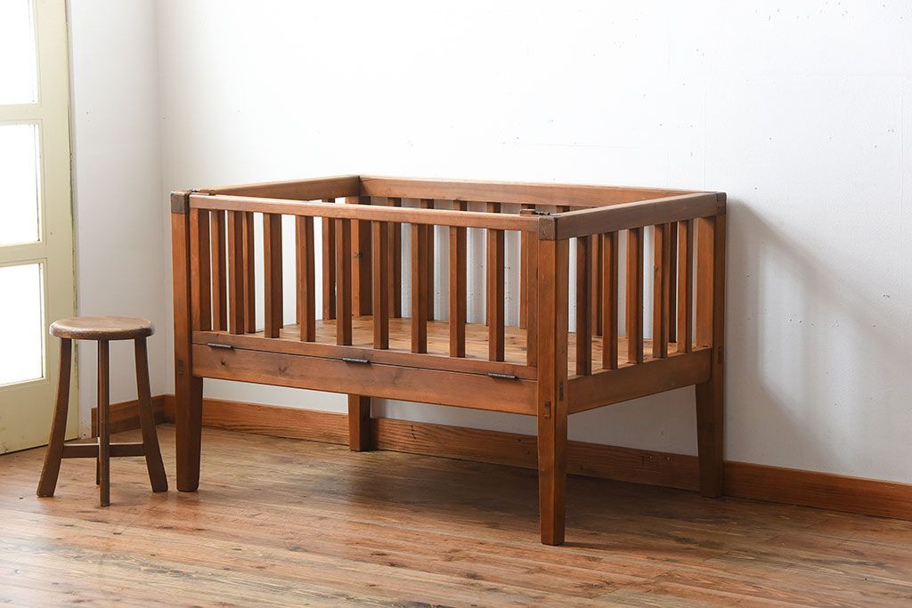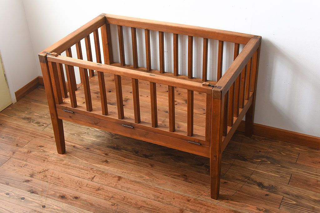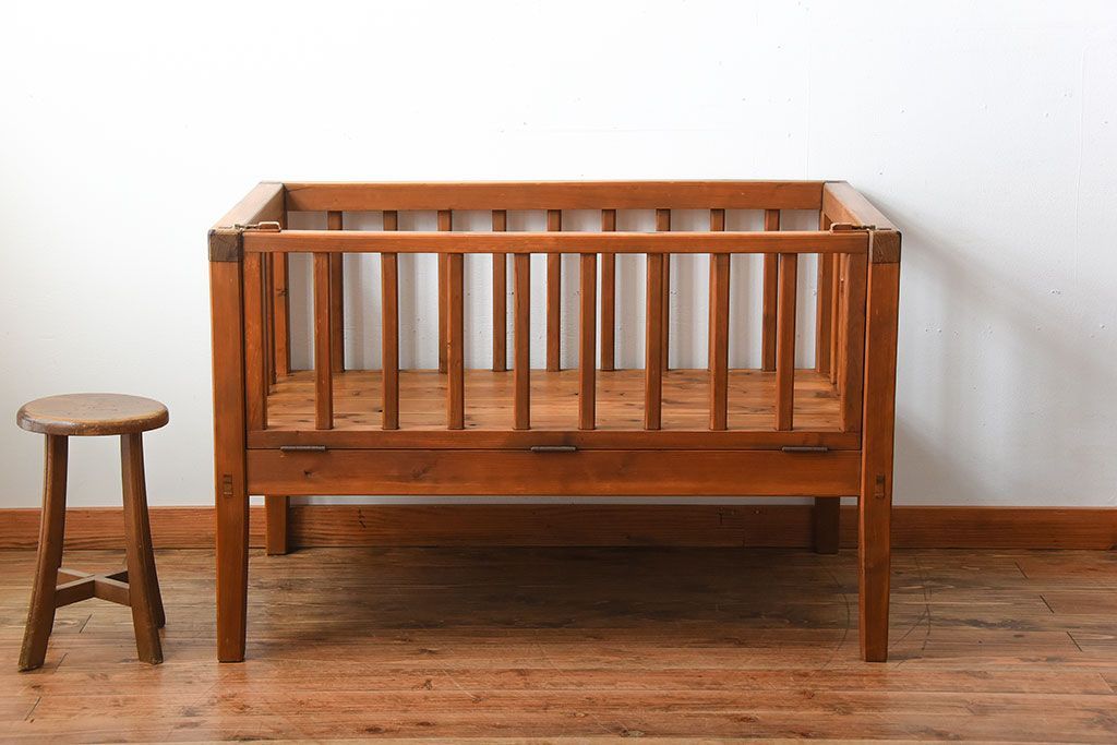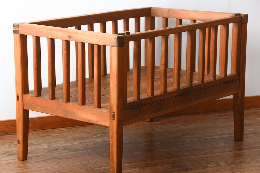 アンティーク家具 和製アンティーク 古い木製の木味の良いベビーベッド(ベンチ・ソファ)