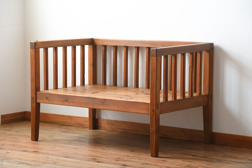 ラフジュ工房> ベッド> ベビーベッド > アンティーク家具 和製アンティーク 古い木製の木味の良いベビーベッド(ベンチ・ソファ)