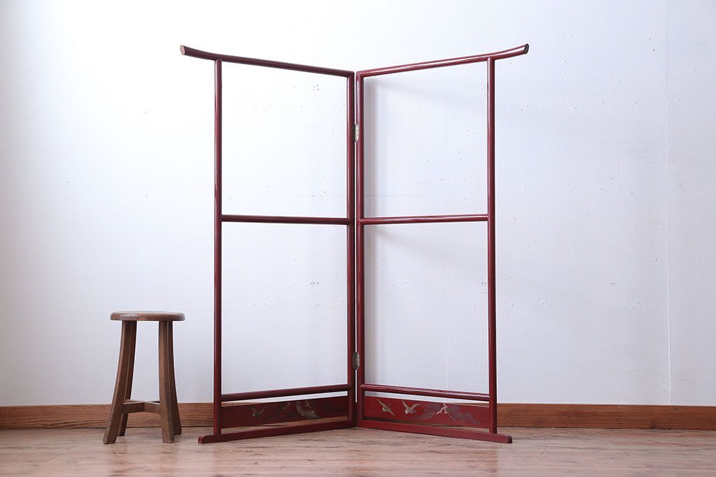 ラフジュ工房> 骨董・美術品 > アンティーク雑貨 古民具・骨董 和モダンスタイル!鶴の屏風衣桁(2)