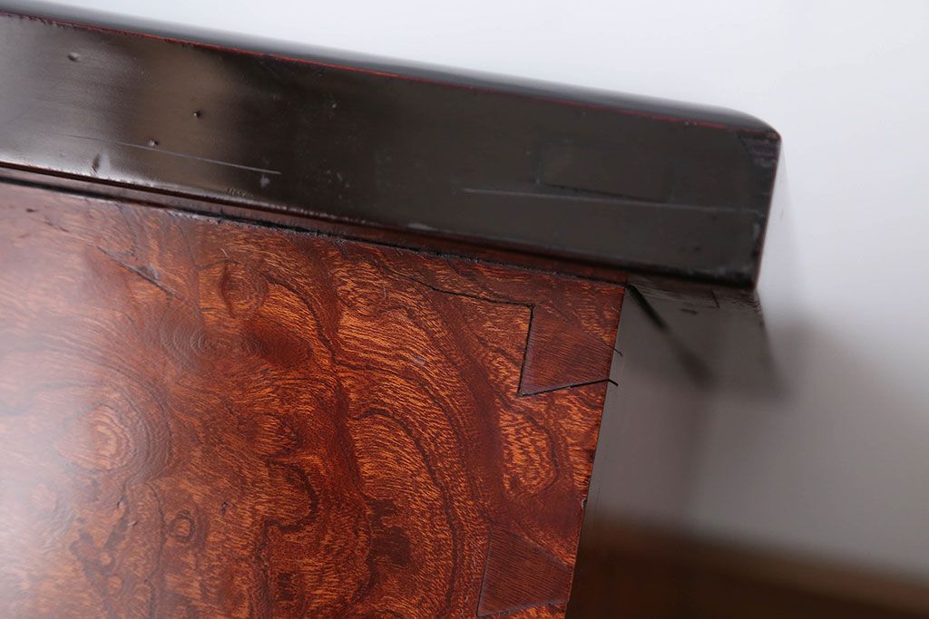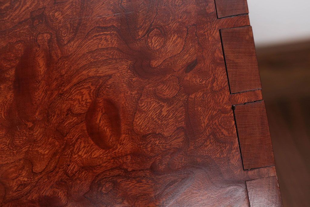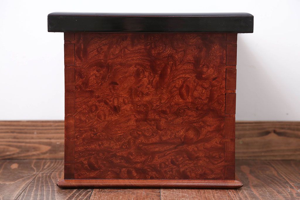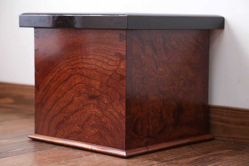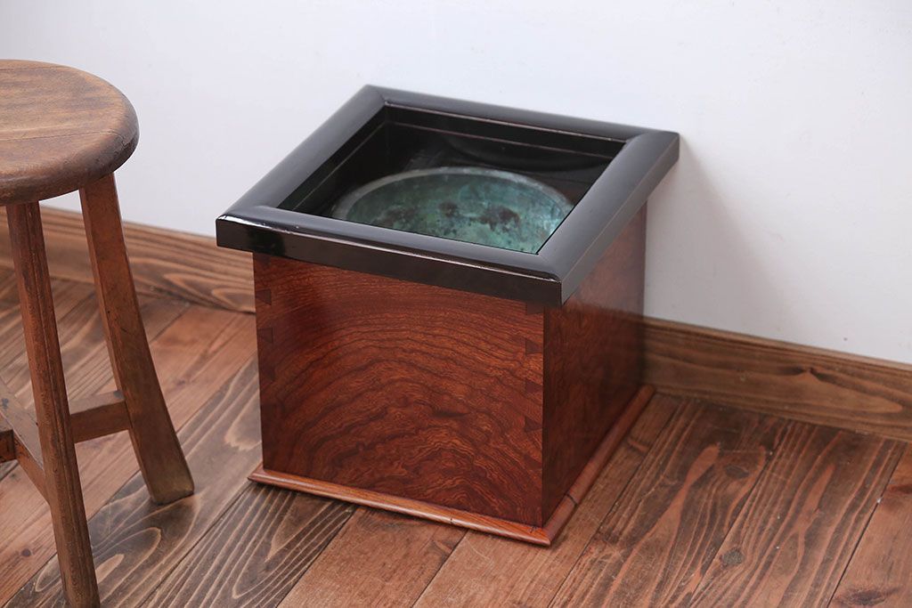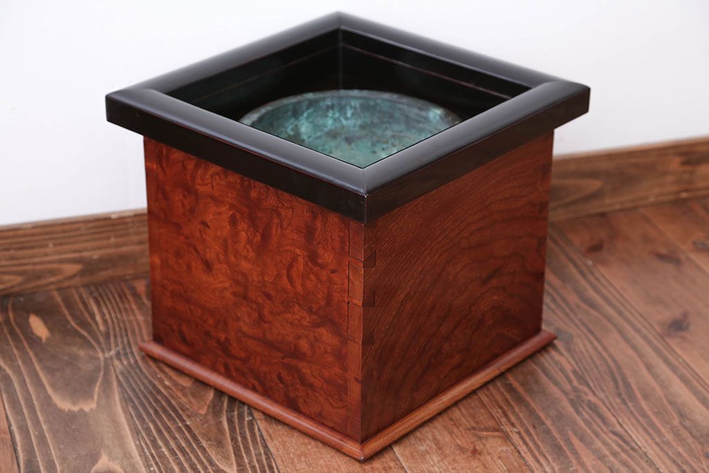 古民具・骨董 高級品!漆が綺麗な欅材玉杢の角火鉢(2)です。