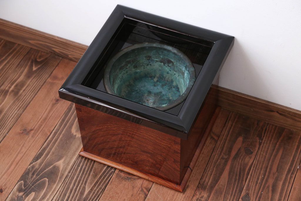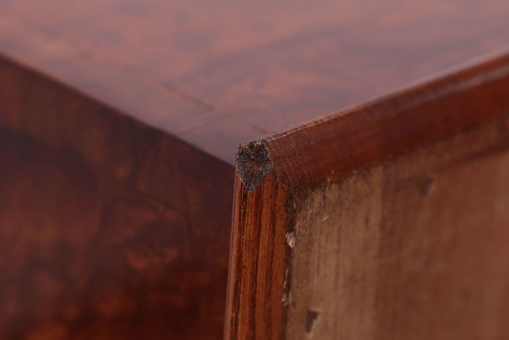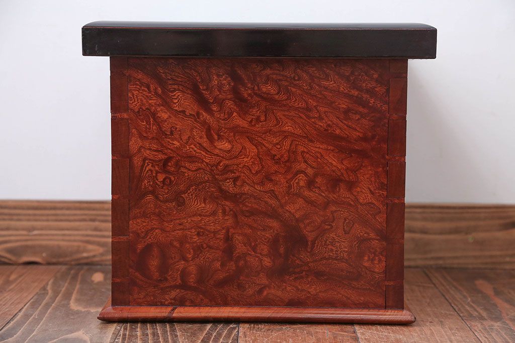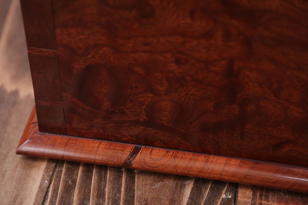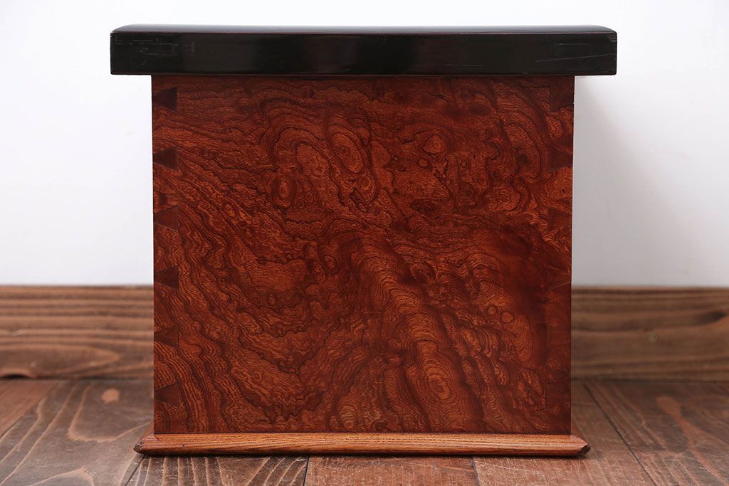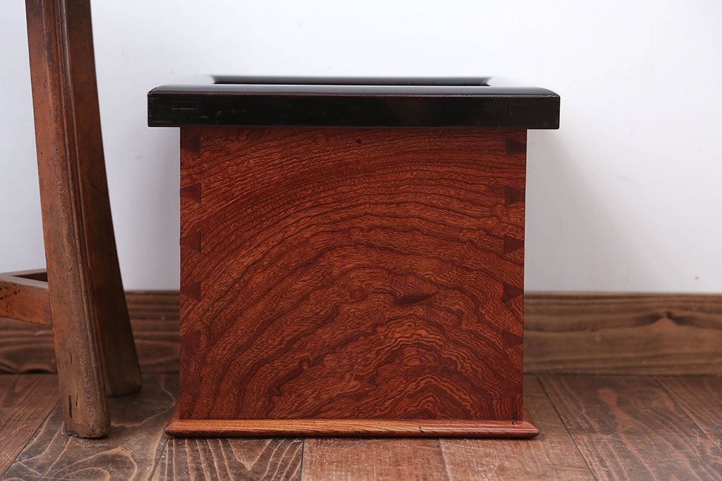 アンティーク雑貨 古民具・骨董 高級品!漆が綺麗な欅材玉杢の角火鉢(2)