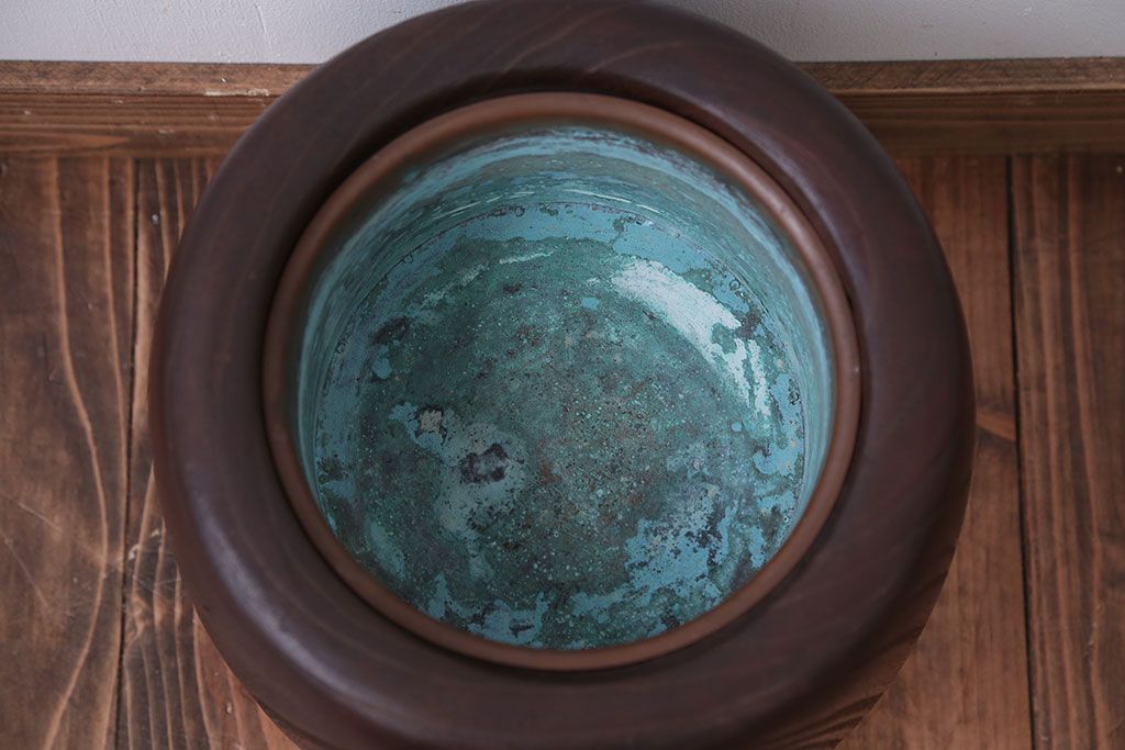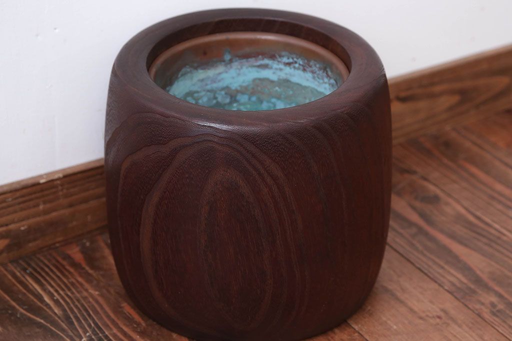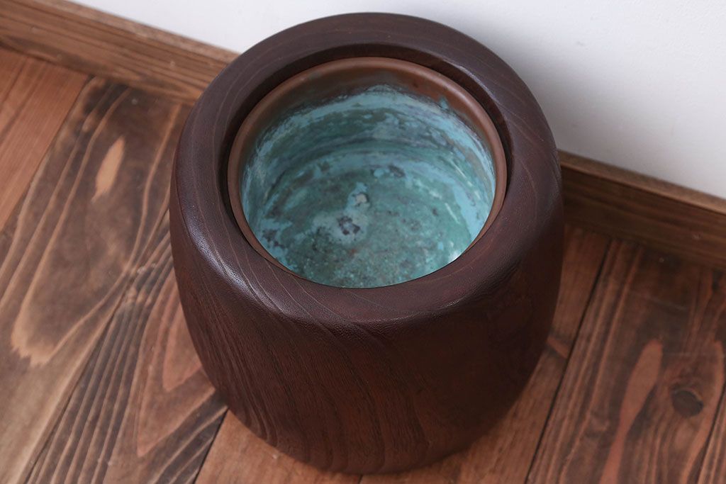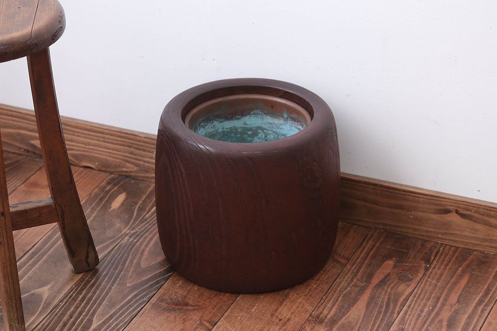 アンティーク雑貨 古民具・骨董 古い桐材のアンティークくりぬき火鉢