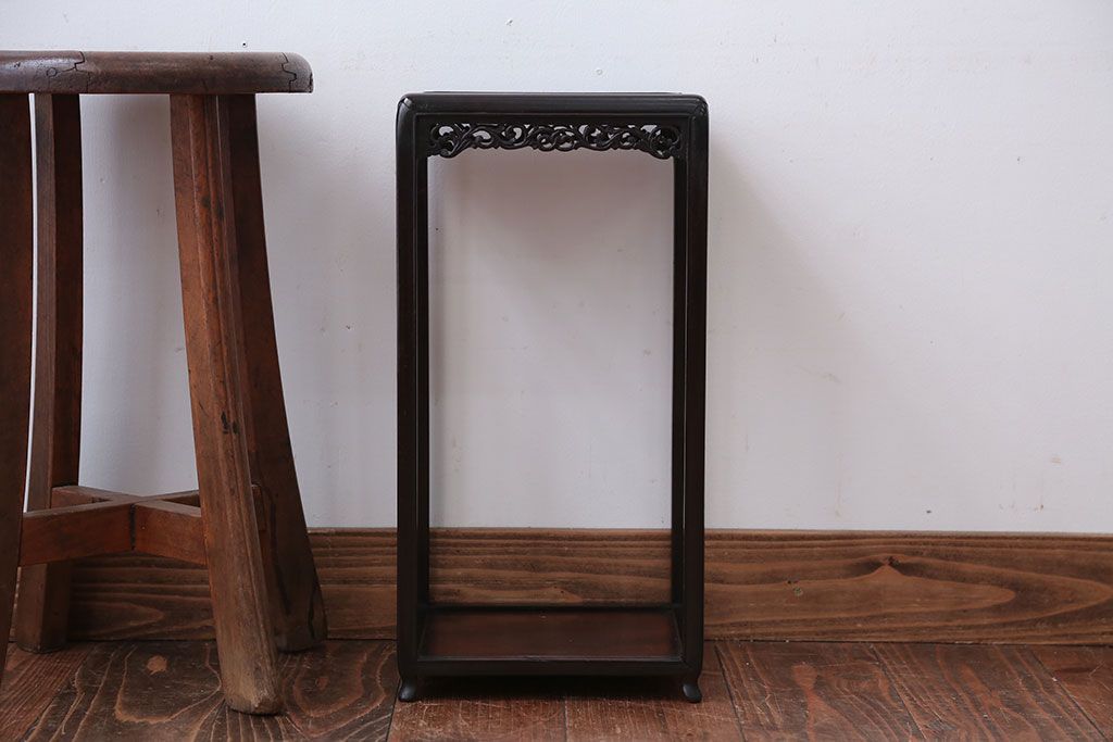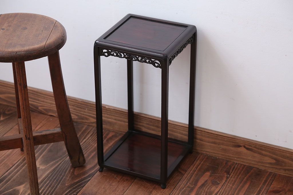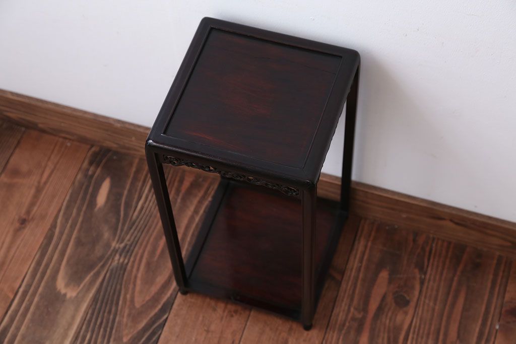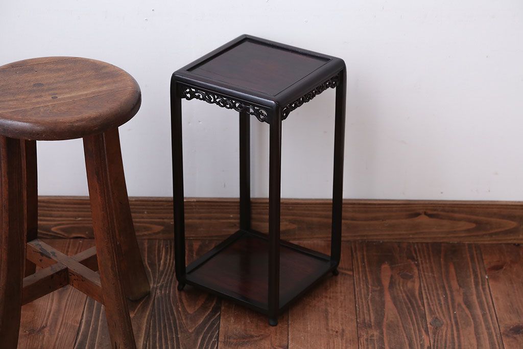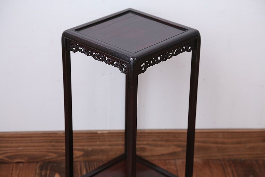 アンティーク雑貨 古民具・骨董 彫刻が美しい唐木(紫檀)材の高級な花台(2)