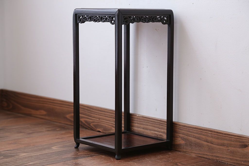 古民具・骨董 彫刻が美しい唐木(紫檀)材の高級な花台(2)です。