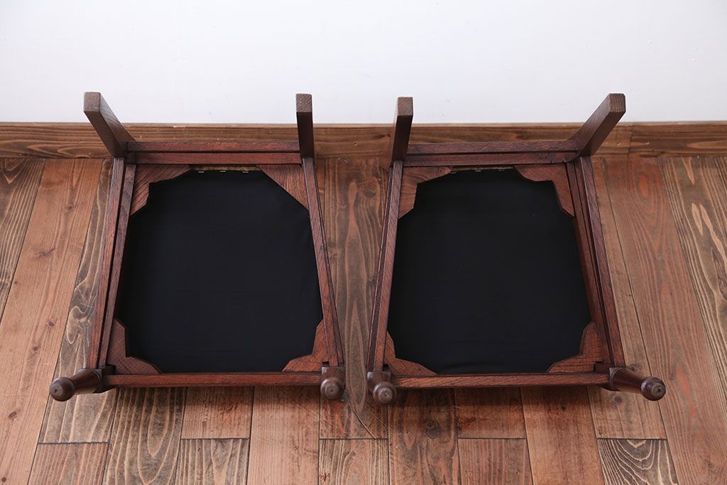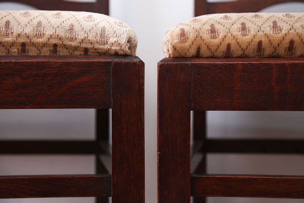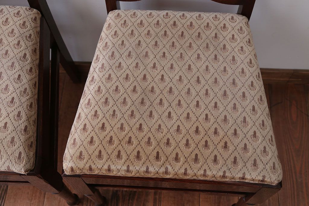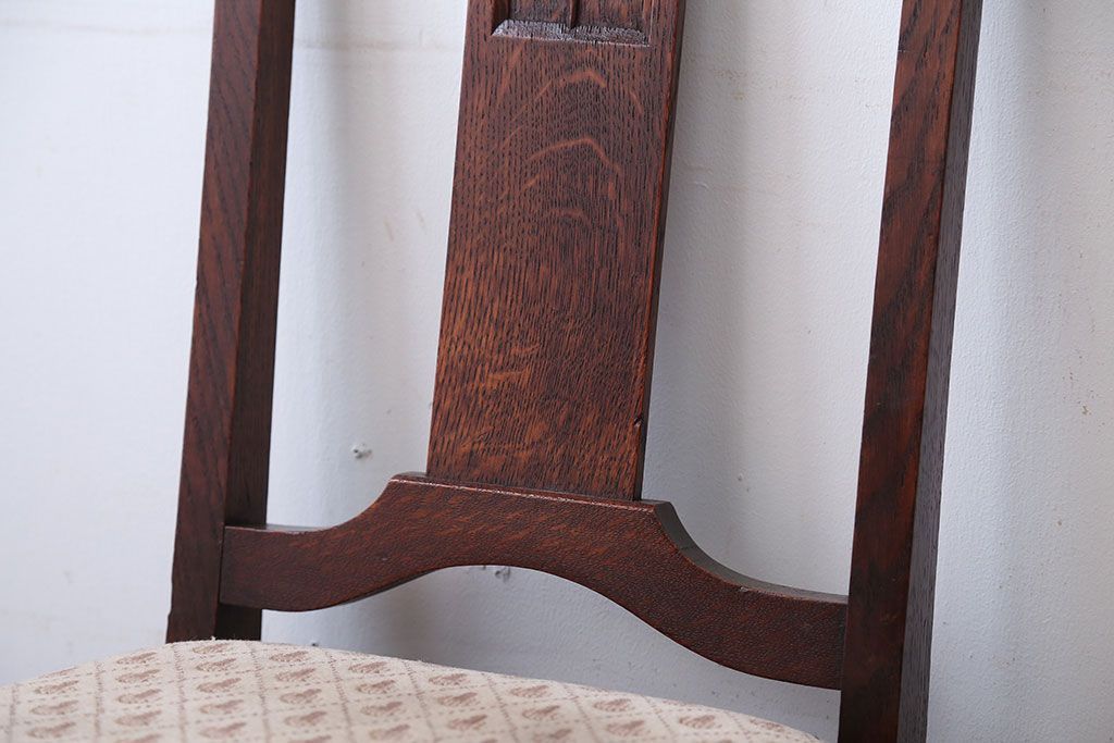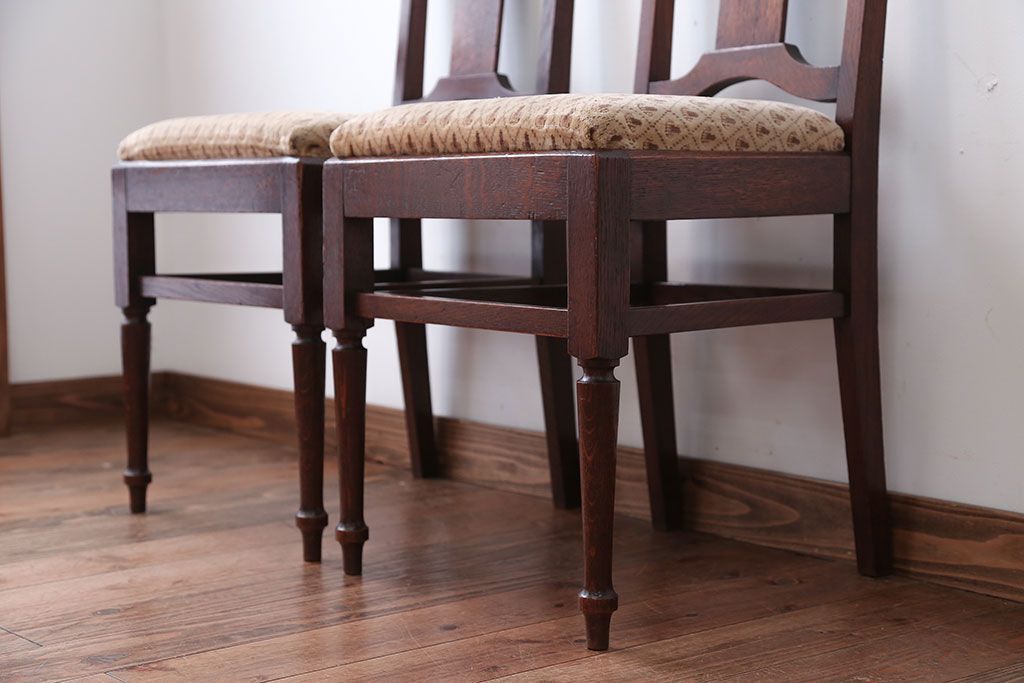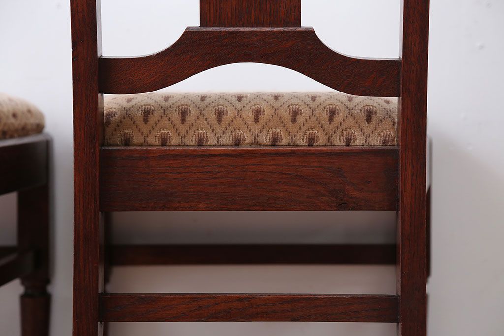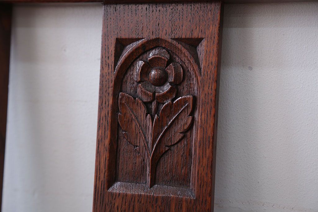アンティーク家具 イギリスアンティーク 彫刻が美しいオーク材の大ぶりなダイニングチェア2脚セット