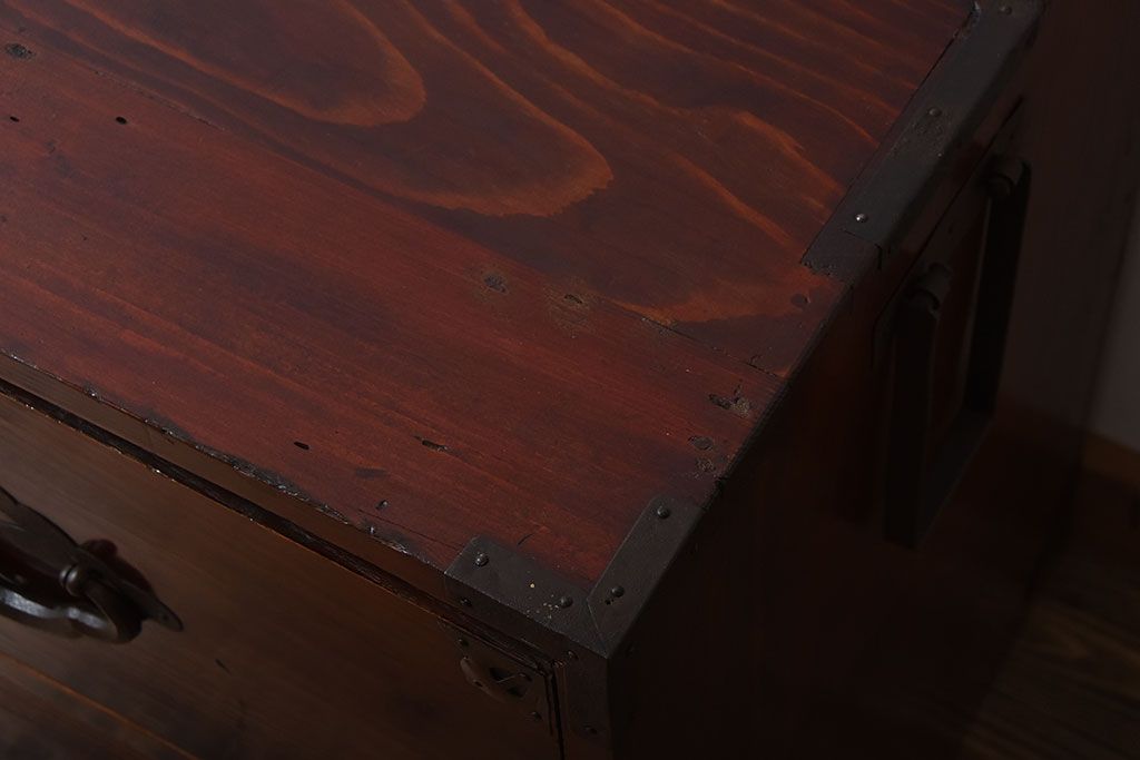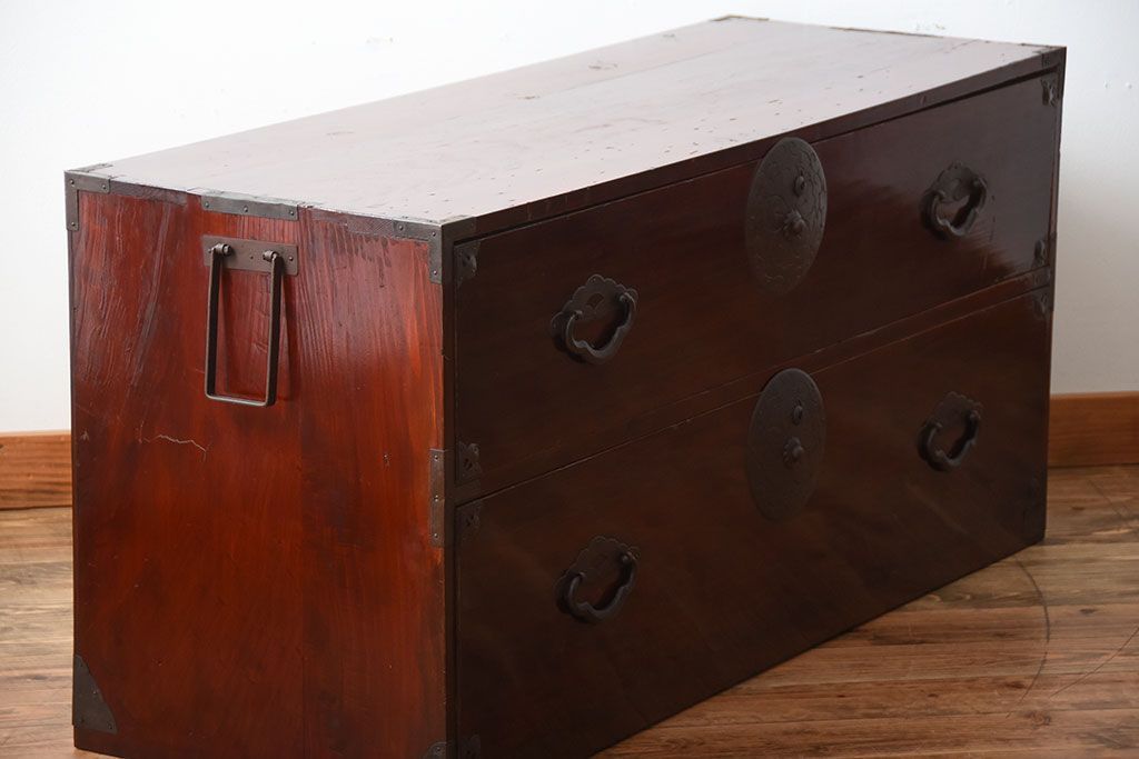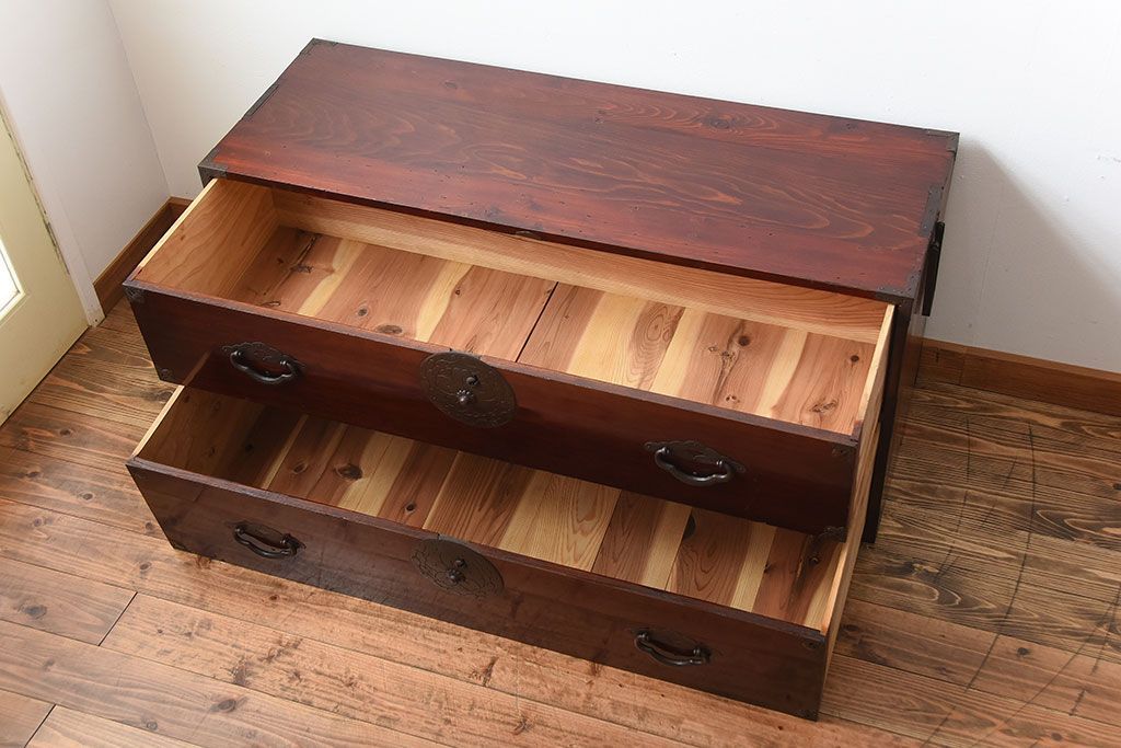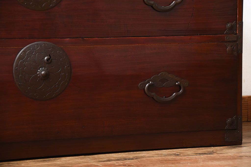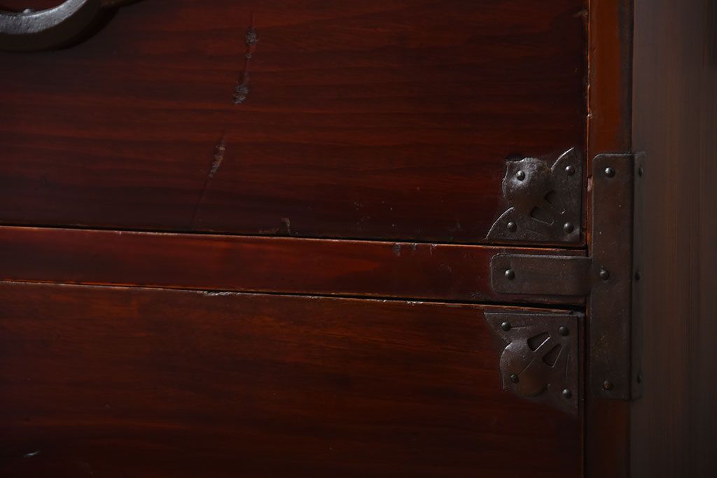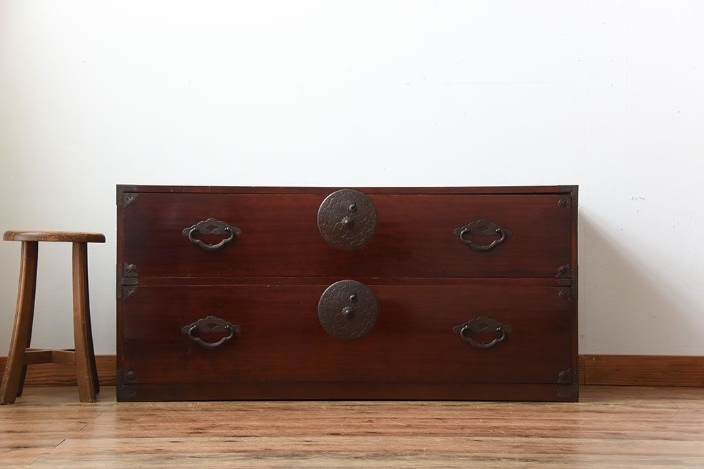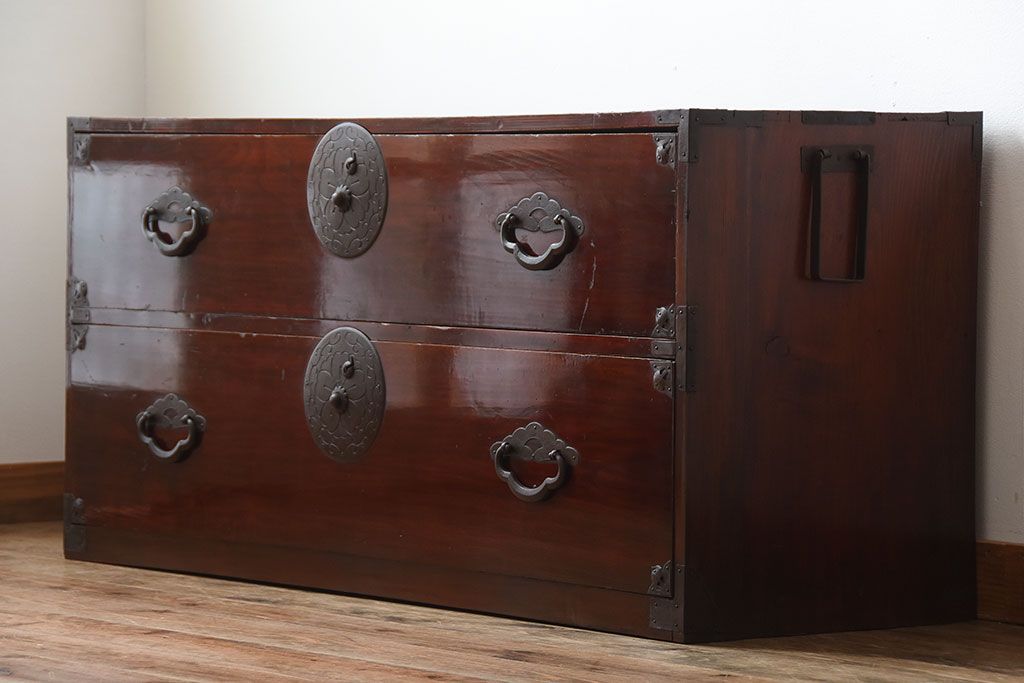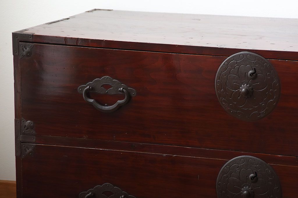 和箪笥> 衣装箪笥 > アンティーク家具 古民具・骨董 前面栗材!桜の金具がかわいいアンティーク米沢箪笥ローボード(2)