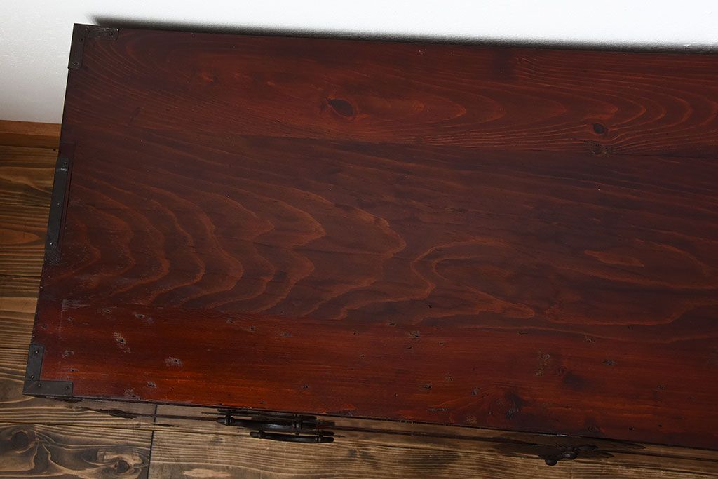骨董・美術品 > アンティーク家具 古民具・骨董 前面栗材!桜の金具がかわいいアンティーク米沢箪笥ローボード(2)