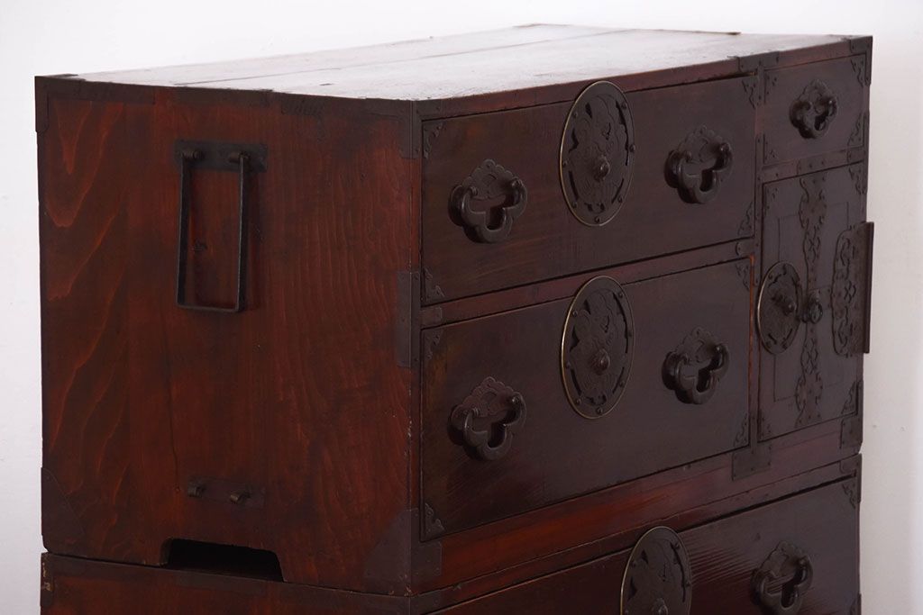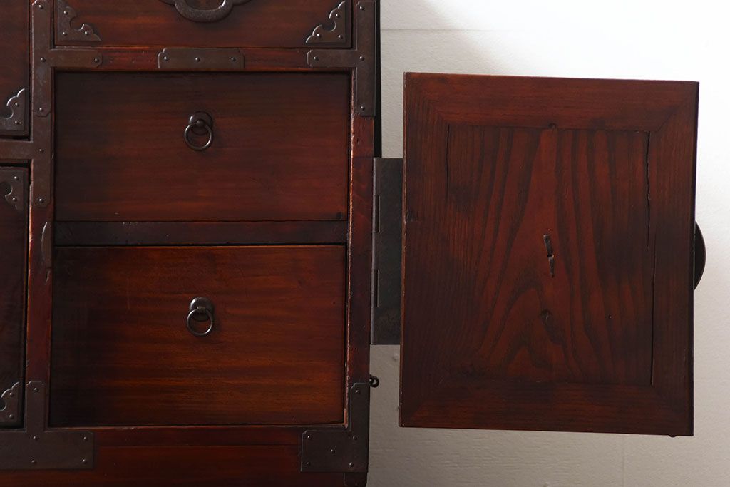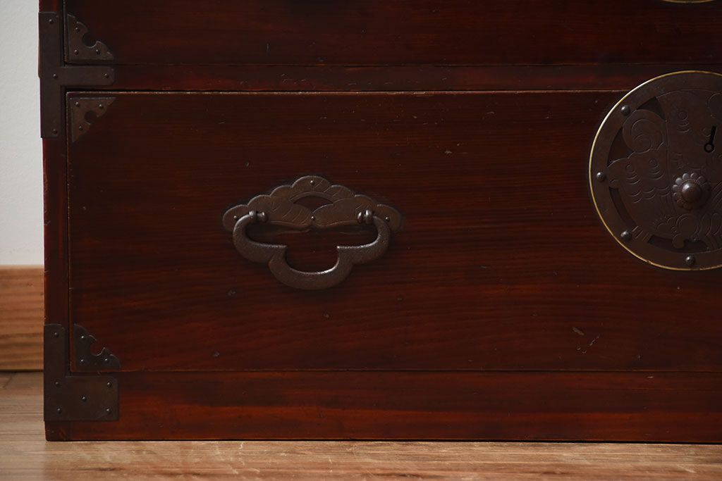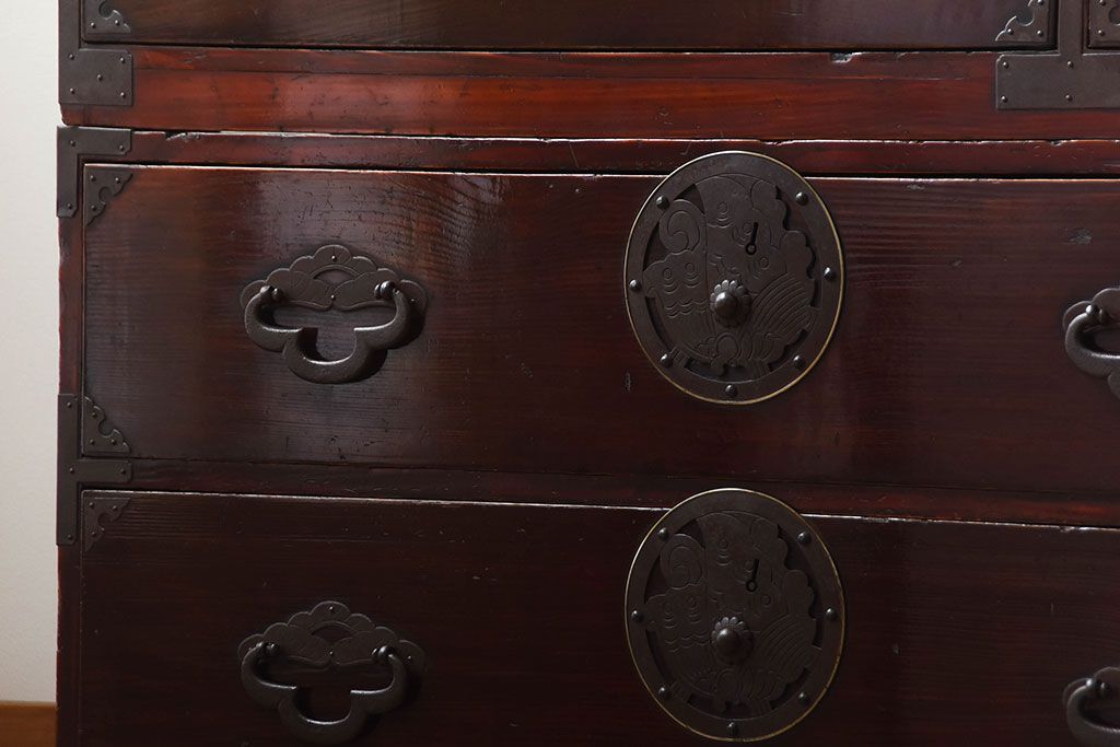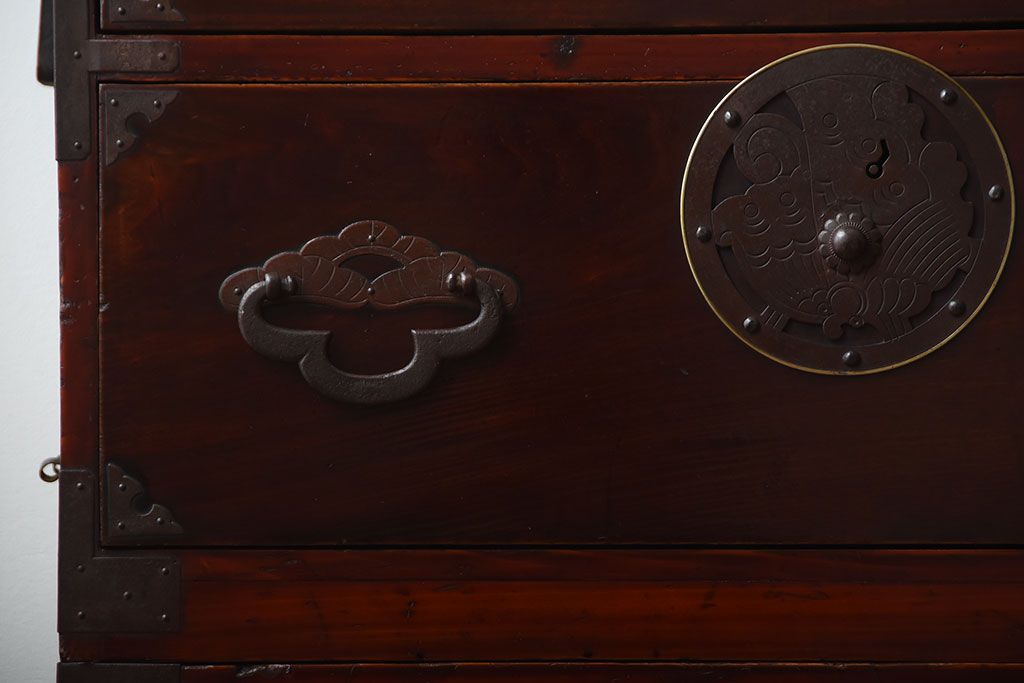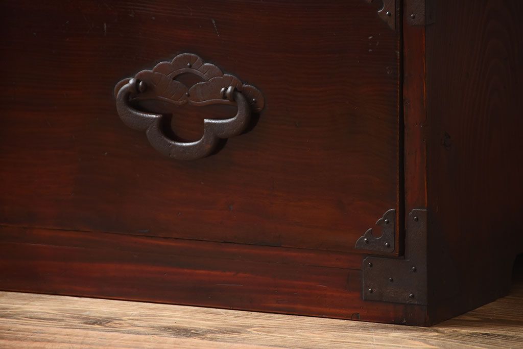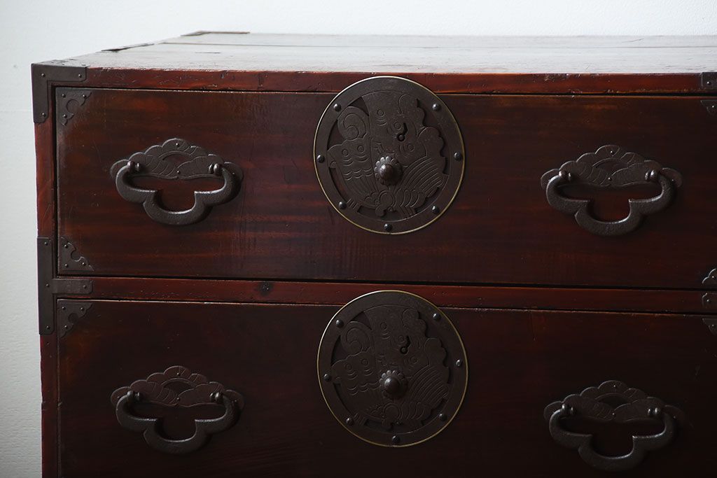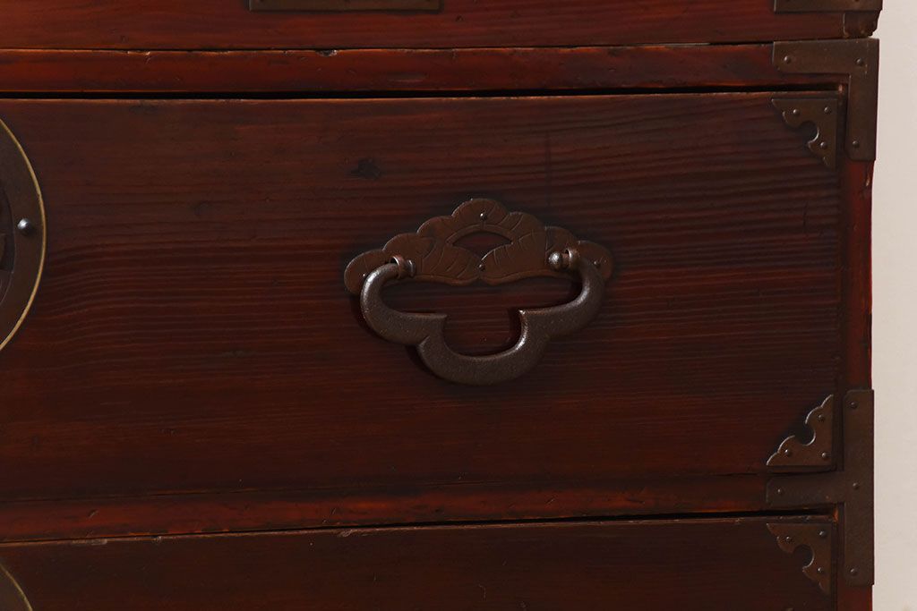 アンティーク家具 古民具・骨董 金具が美しい前面栗材の米沢箪笥