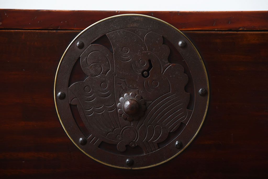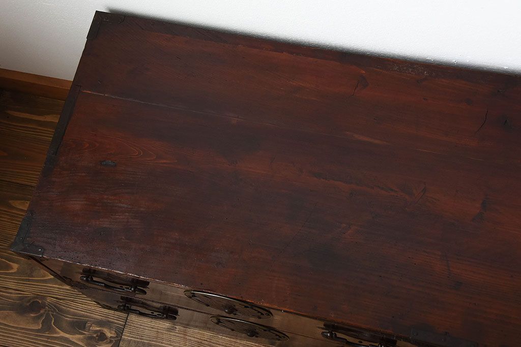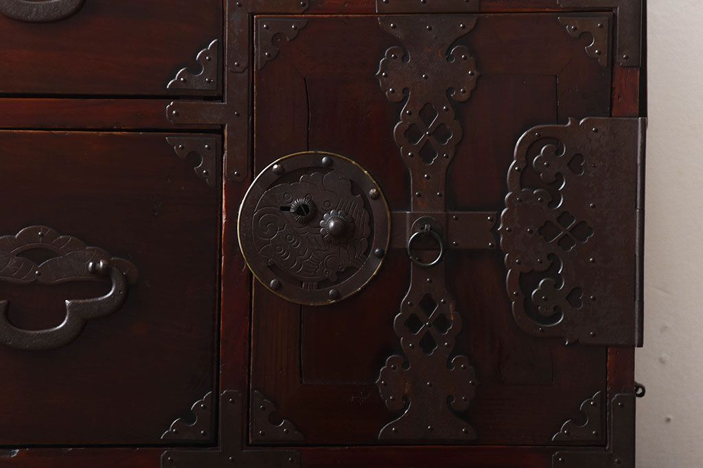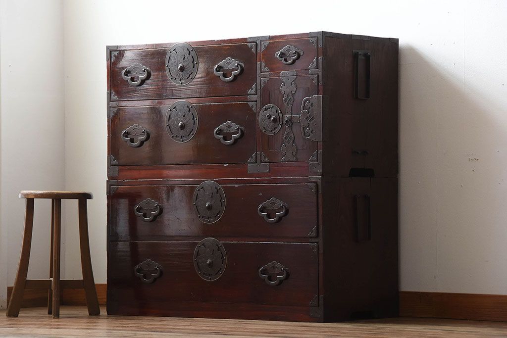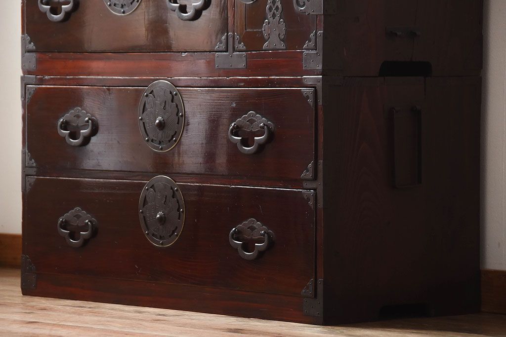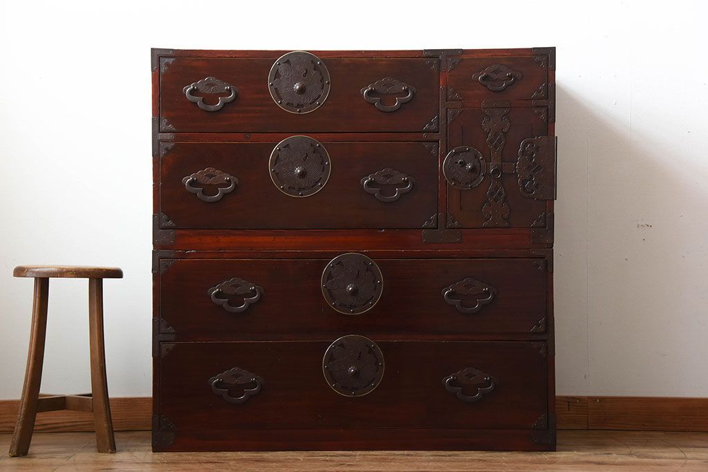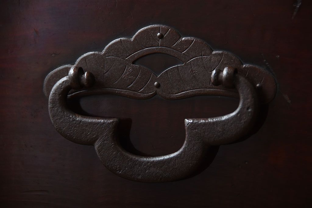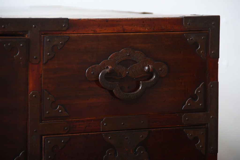 アンティーク家具 古民具・骨董 金具が美しい前面栗材の米沢箪笥