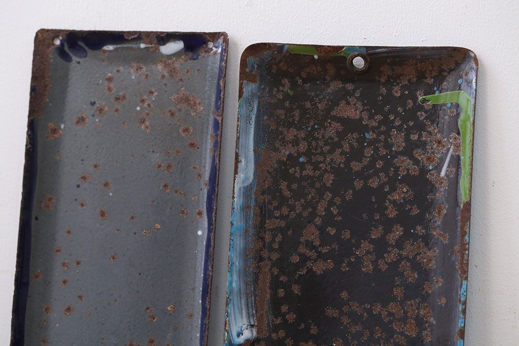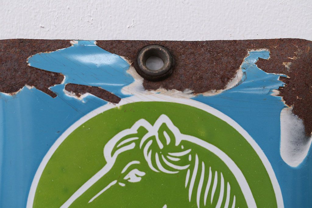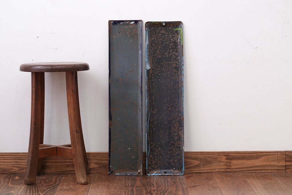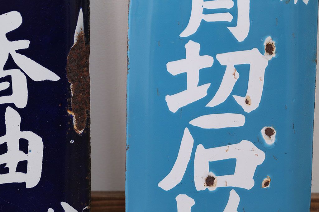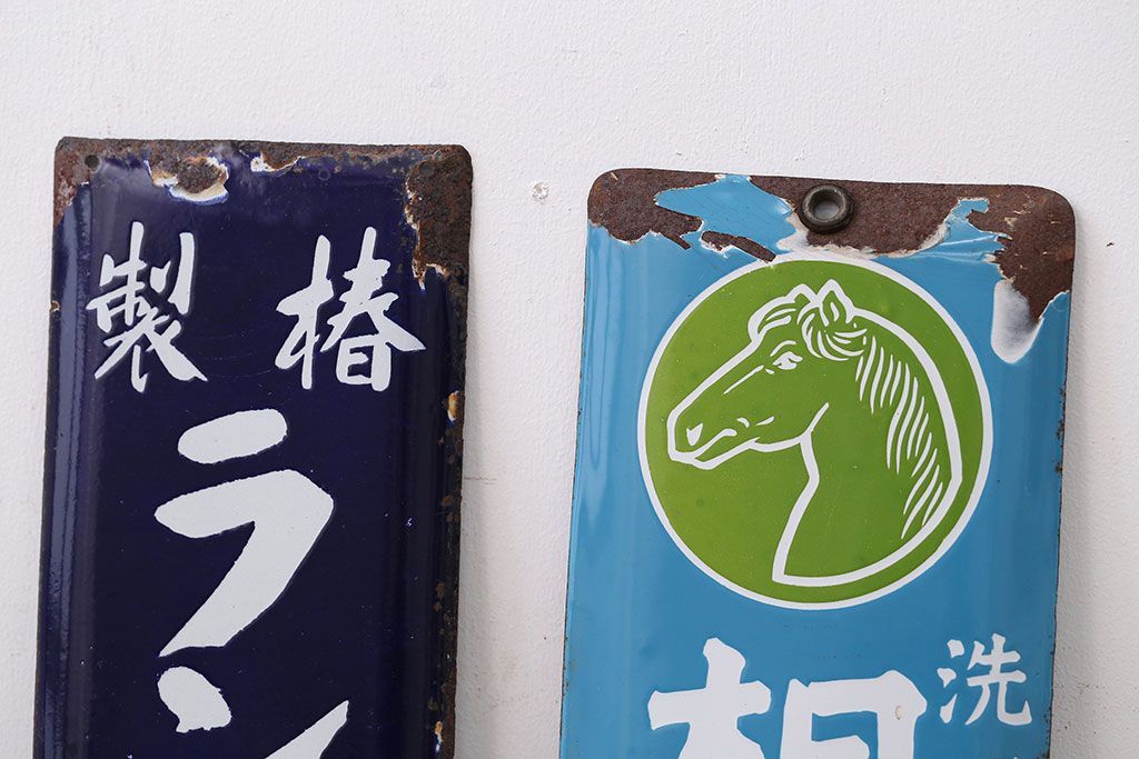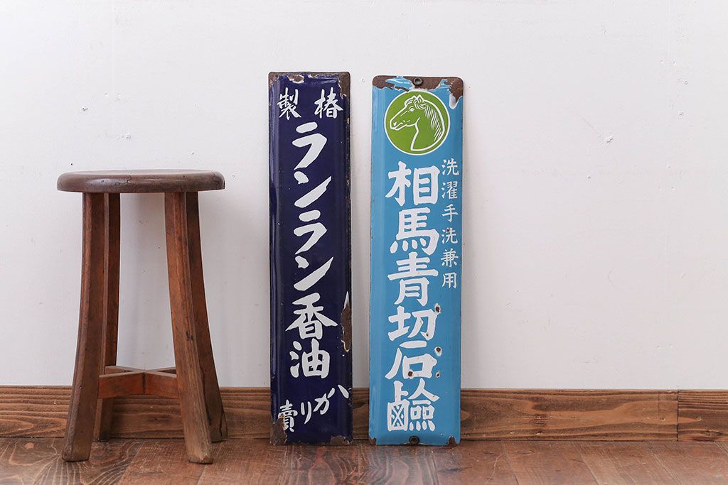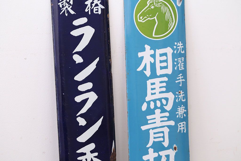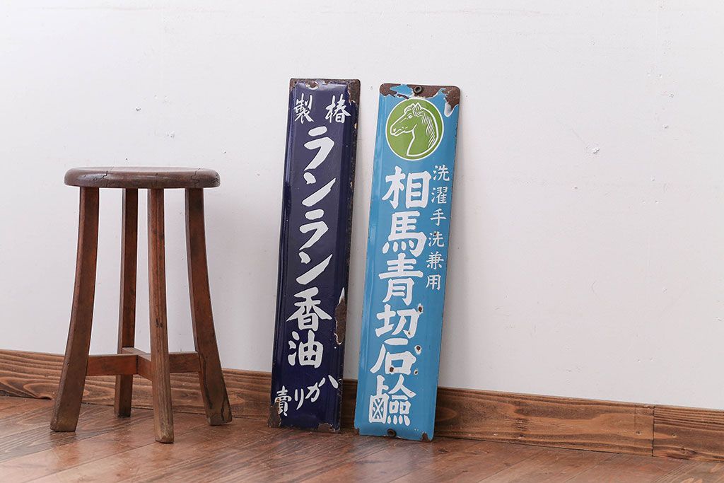 アンティーク雑貨 戦前・相馬青切石鹸とランラン香油のホーロー看板2枚セット