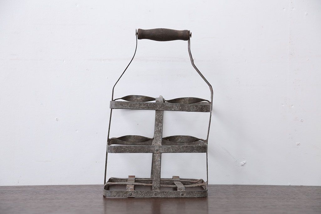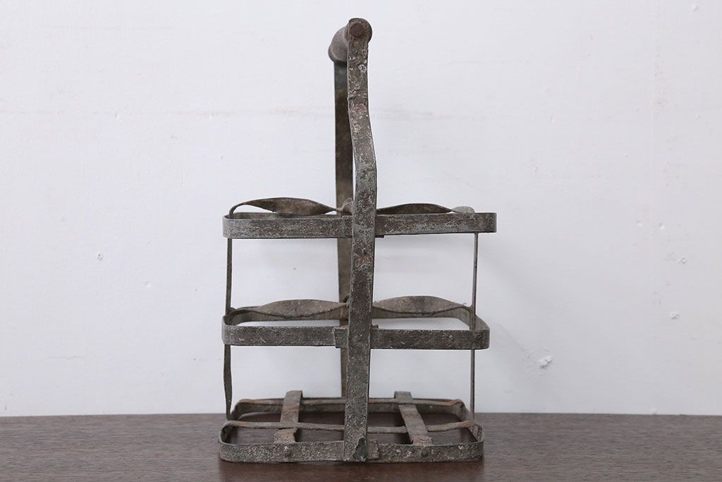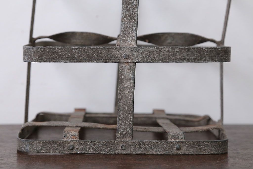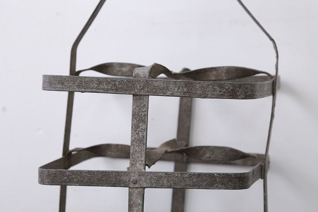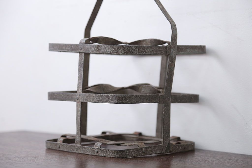 アンティーク雑貨 イギリスアンティーク シャビーでおしゃれなアイアンボトルラック(ボトルホルダー)