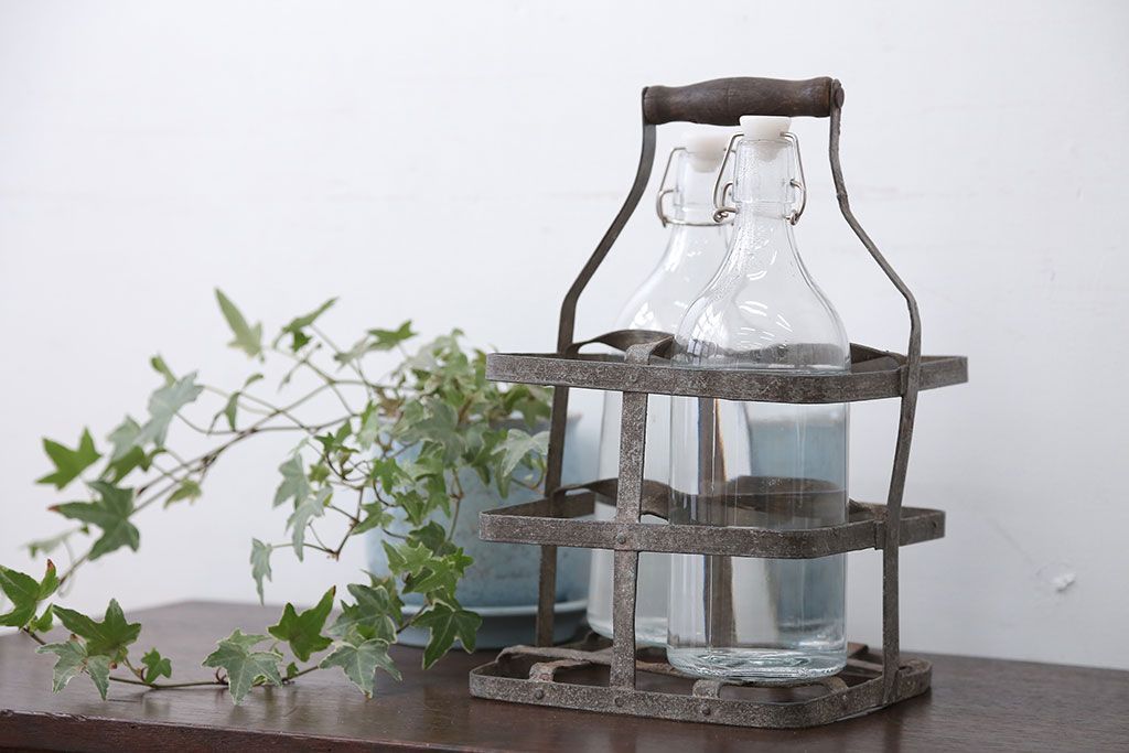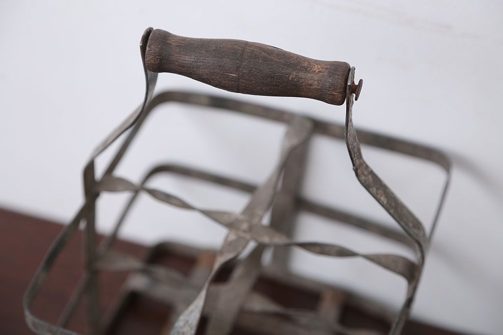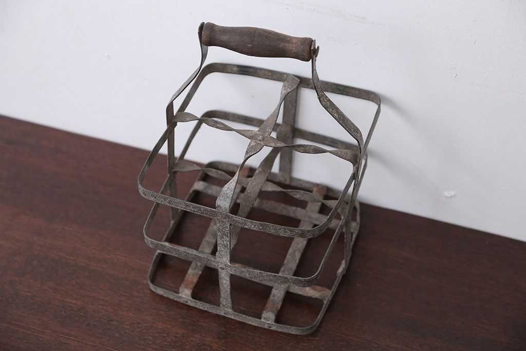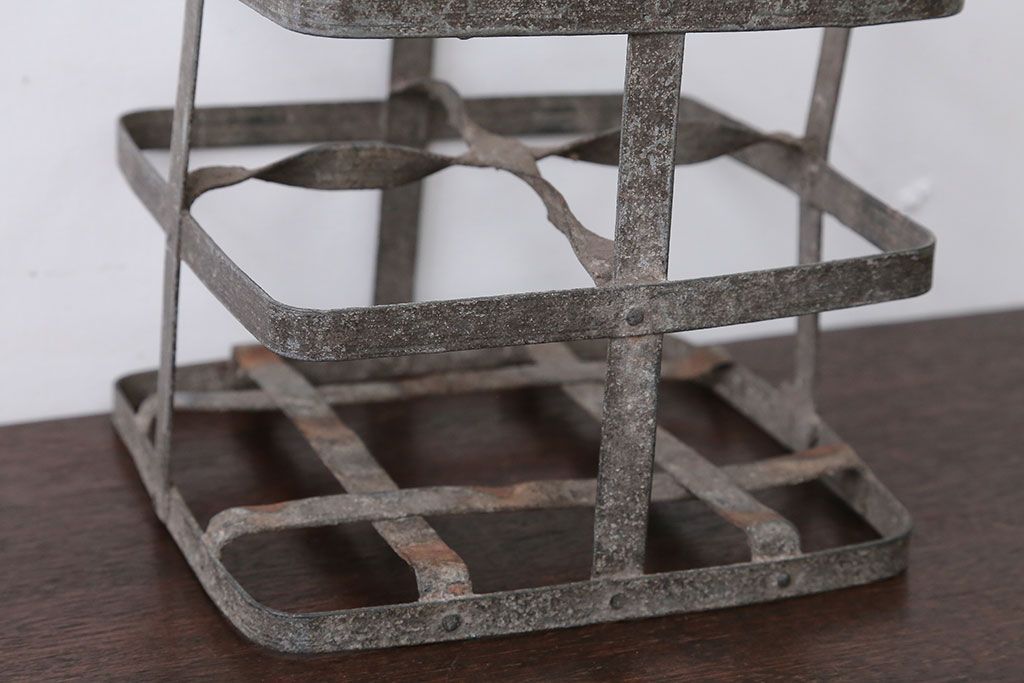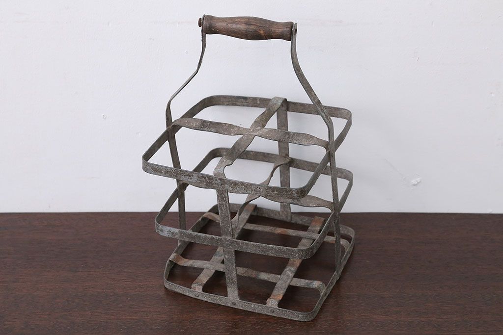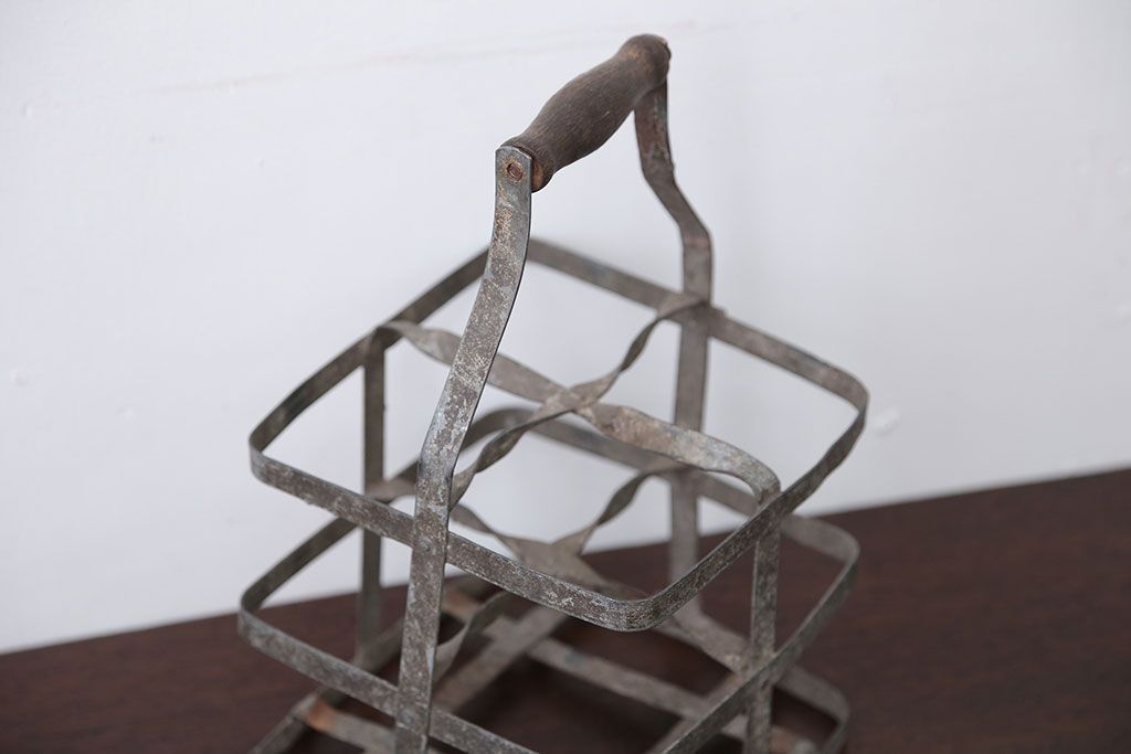 アンティーク雑貨 イギリスアンティーク シャビーでおしゃれなアイアンボトルラック(ボトルホルダー)