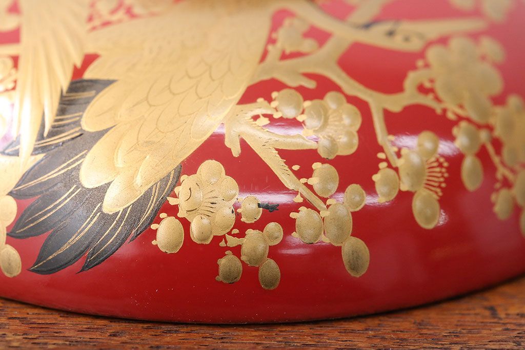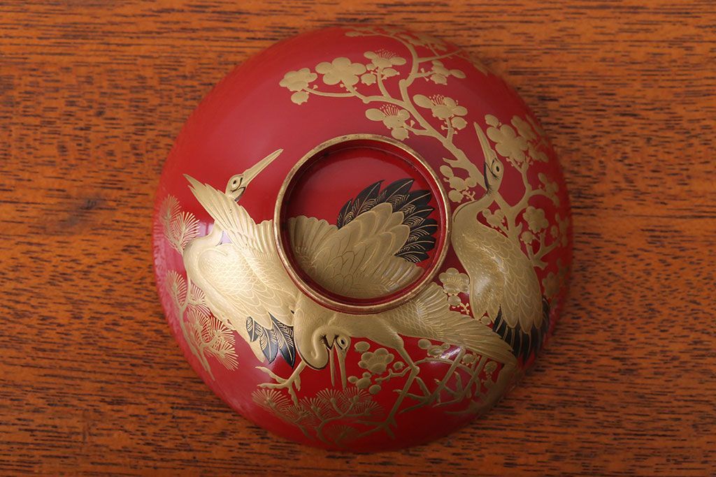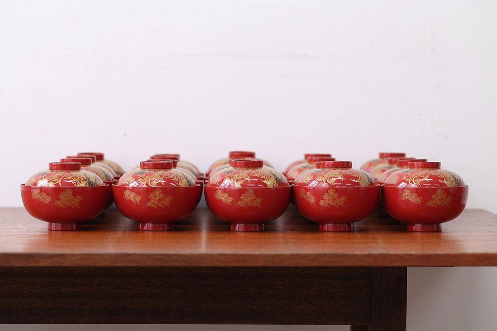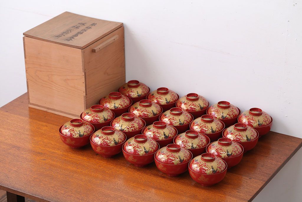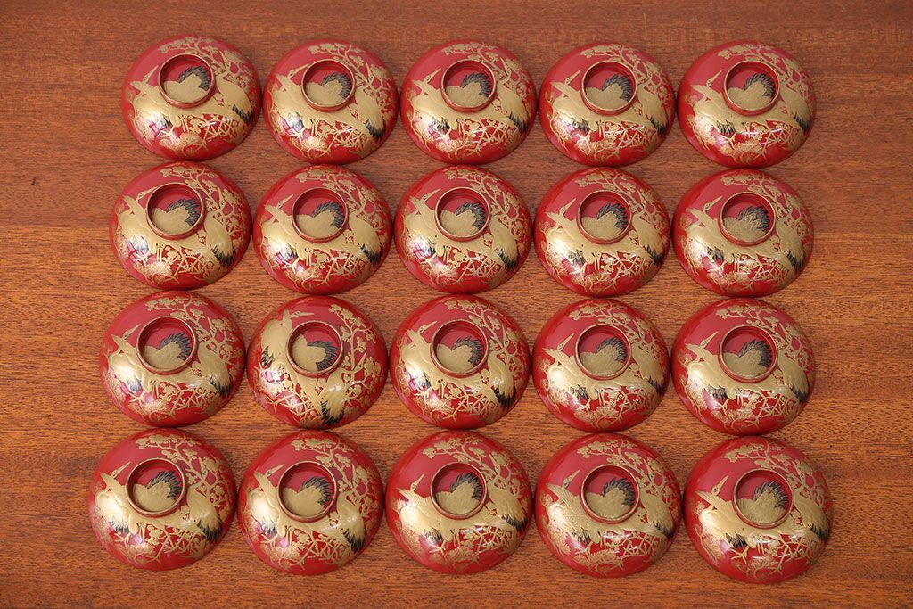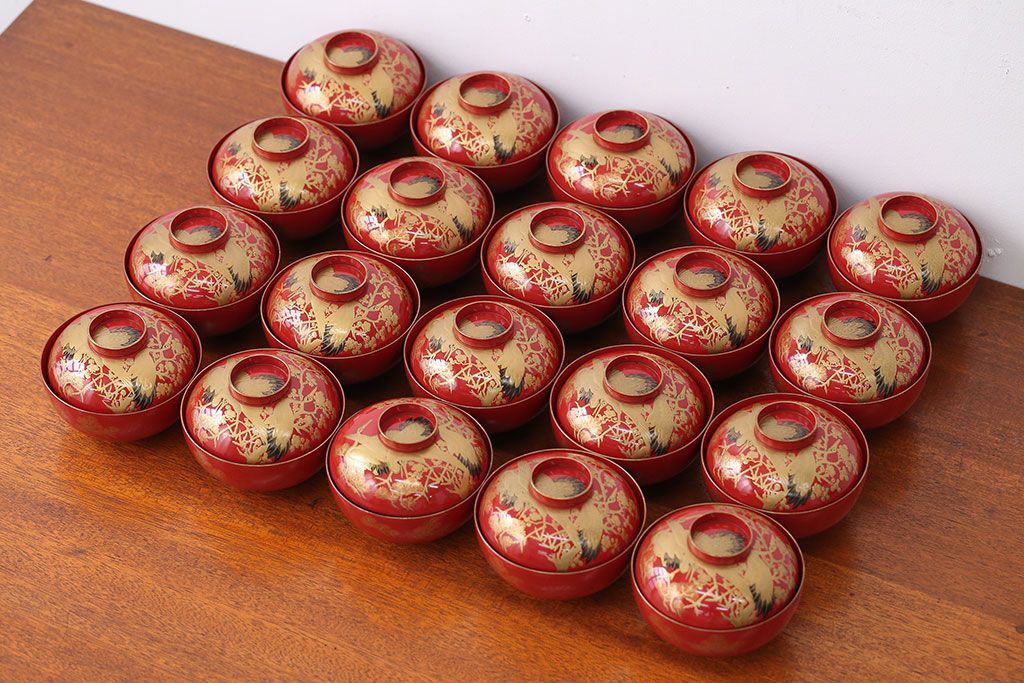 アンティーク雑貨 アンティーク 朱梅松鶴高蒔絵木製椀20客(漆器)
